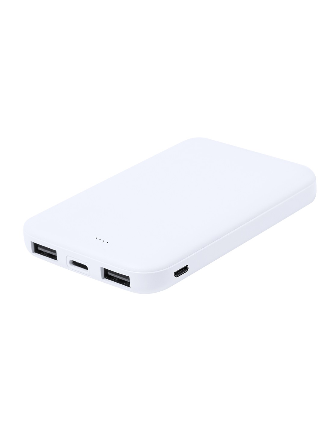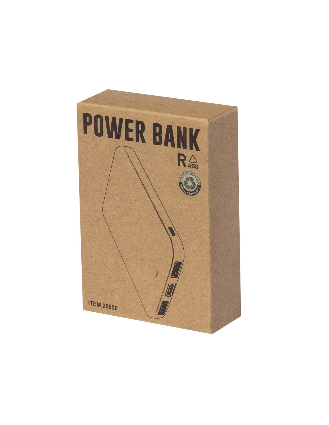 Batería auxiliar externa de tamaño ultra compacto, fabricada en RABS y con 5.000 mAh de capacidad de carga. Incluye salida USB dual para carga simultánea de 2 dispositivos, entrada Micro USB -cable incluido-, y conexión Tipo C de entrada y salida. Con indicador de estado de carga y presentada en atractiva caja de diseño eco. Con amplia superficie de marcaje y manual de instrucciones disponible en español e inglés.El RABS es un plástico altamente reciclable de gran resistencia y con multitud de aplicaciones que lo convierten en una solución eco-friendly. Con certificación RCS, que garantiza el origen reciclado del mismo.Las capacidades mostradas en todas nuestras baterías auxiliares externas son reales, incorporando todas ellas baterías de grado A y no recicladas, con una vida útil de al menos 500 ciclos de carga y según normativa CE. Además, están fabricadas conforme a los estándares RoHS y en cumplimiento con los siguientes requisitos de seguridad:Sistema de protección contra sobrecarga del power bank. Sistema de protección contra descarga completa que proporciona una mayor durabilidad del power bank. Sistema de bloqueo para evitar cortocircuitos. Sistema de transferencia de carga constante, acorde con la capacidad del dispositivo de destino.4000 mAh. Salida USB. Entrada Micro USB