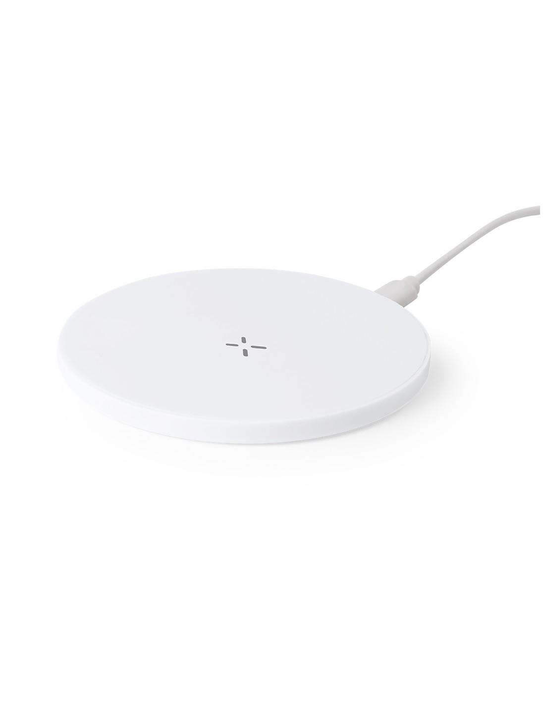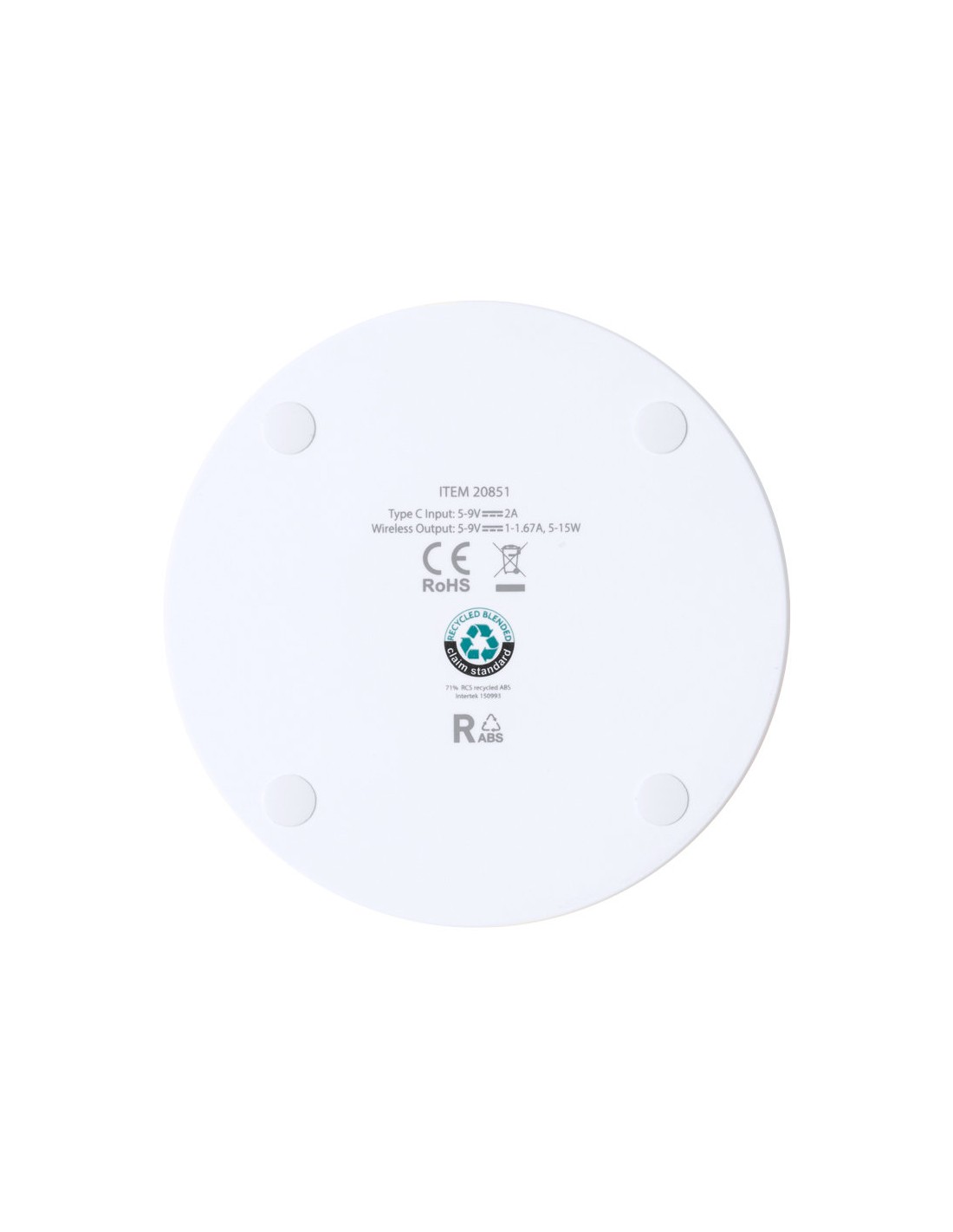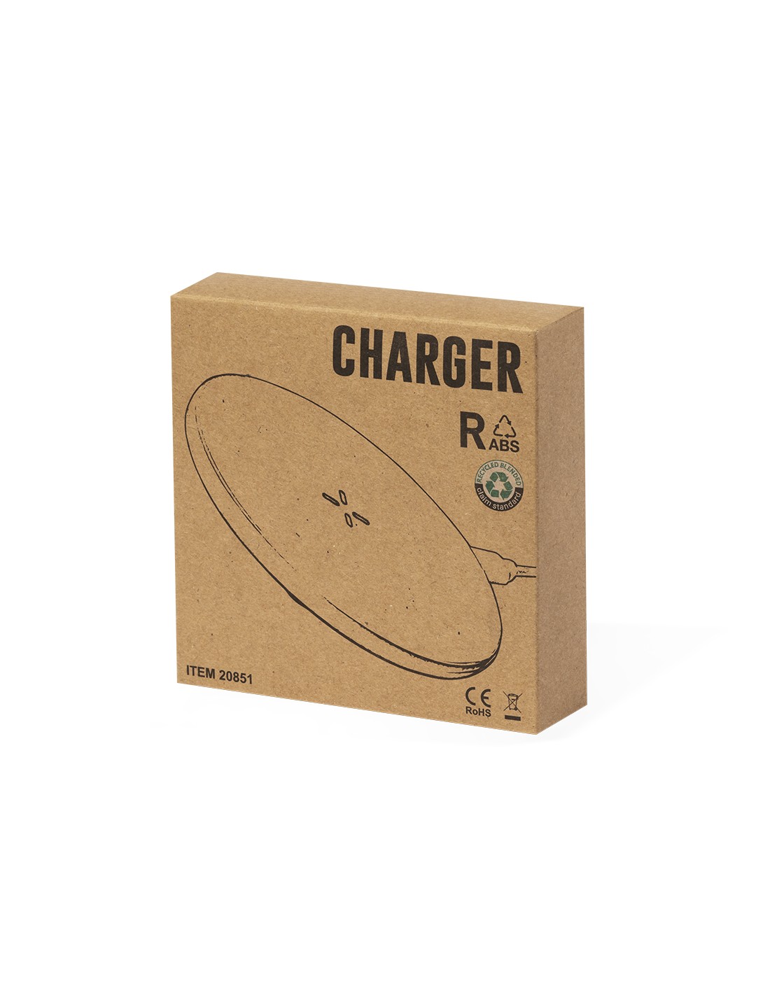 Cargador inalámbrico 15W de diseño circular fabricado en RABS. Compatible con dispositivos equipados con tecnología de carga inalámbrica Qi. Base antideslizante, con cable cargador Tipo C incluido. Presentado en caja individual de diseño kraft, con manual de instrucciones en español e inglés.El RABS es un plástico altamente reciclable de gran resistencia y con multitud de aplicaciones que lo convierten en una solución eco-friendly. Con certificación RCS, que garantiza el origen reciclado del mismo.Fabricado conforme a los estándares RoHS y en cumplimiento con los siguientes requisitos de seguridad:Sistema de protección contra sobrecalentamiento.Sistema de protección contra sobrecarga.Sistema de bloqueo para evitar cortocircuitos.