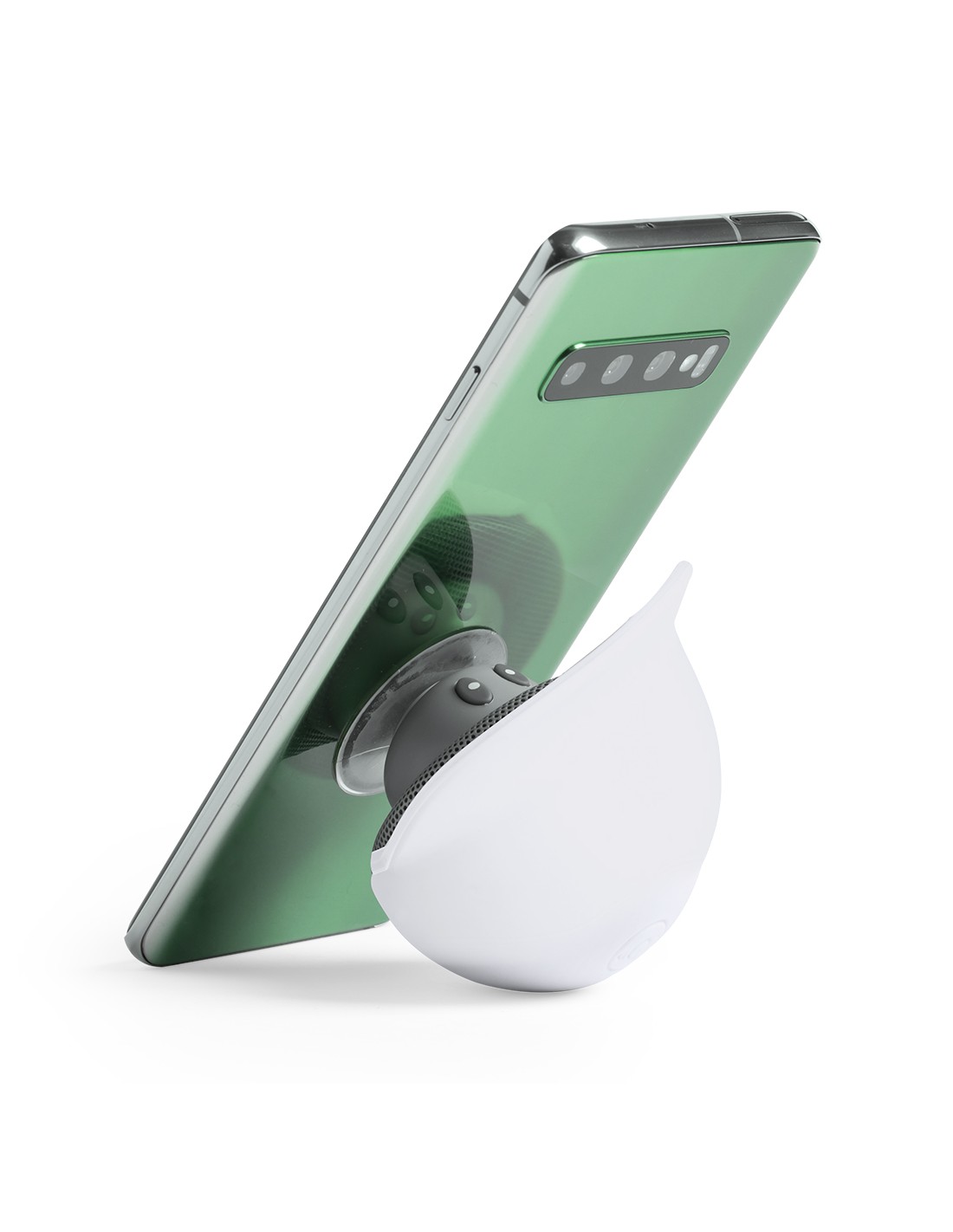 Altavoz de original diseño seta con gorra y función soporte para móvil. Conectividad Bluetooth 5.0, con 3W de potencia y función manos libres. Cuerpo con suave acabado de tacto goma y ventosa de fijación para función soporte. Cable Micro USB incluido y presentado en atractiva caja de diseño kraft. Disponible manual de instrucciones en español e inglés.