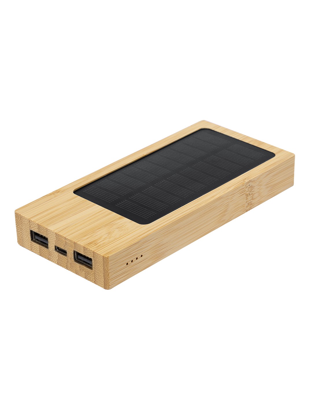 Batería auxiliar externa de recarga solar y 4.000 mAh de capacidad de carga. Fabricada en bambú, con conector de entrada/salida Tipo C y 2 salidas USB. Presentada en caja individual de diseño kraft. Disponible manual de instrucciones en español e inglés.Las capacidades mostradas en todas nuestras baterías auxiliares externas son reales, incorporando todas ellas baterías de grado A y no recicladas, con una vida útil de al menos 500 ciclos de carga y según normativa CE. Además, están fabricadas conforme a los estándares RoHS y en cumplimiento con los siguientes requisitos de seguridad:Sistema de protección contra sobrecarga del power bank.Sistema de protección contra descarga completa que proporciona una mayor durabilidad del power bank.Sistema de bloqueo para evitar cortocircuitos.Sistema de transferencia de carga constante, acorde con la capacidad del dispositivo de destino.