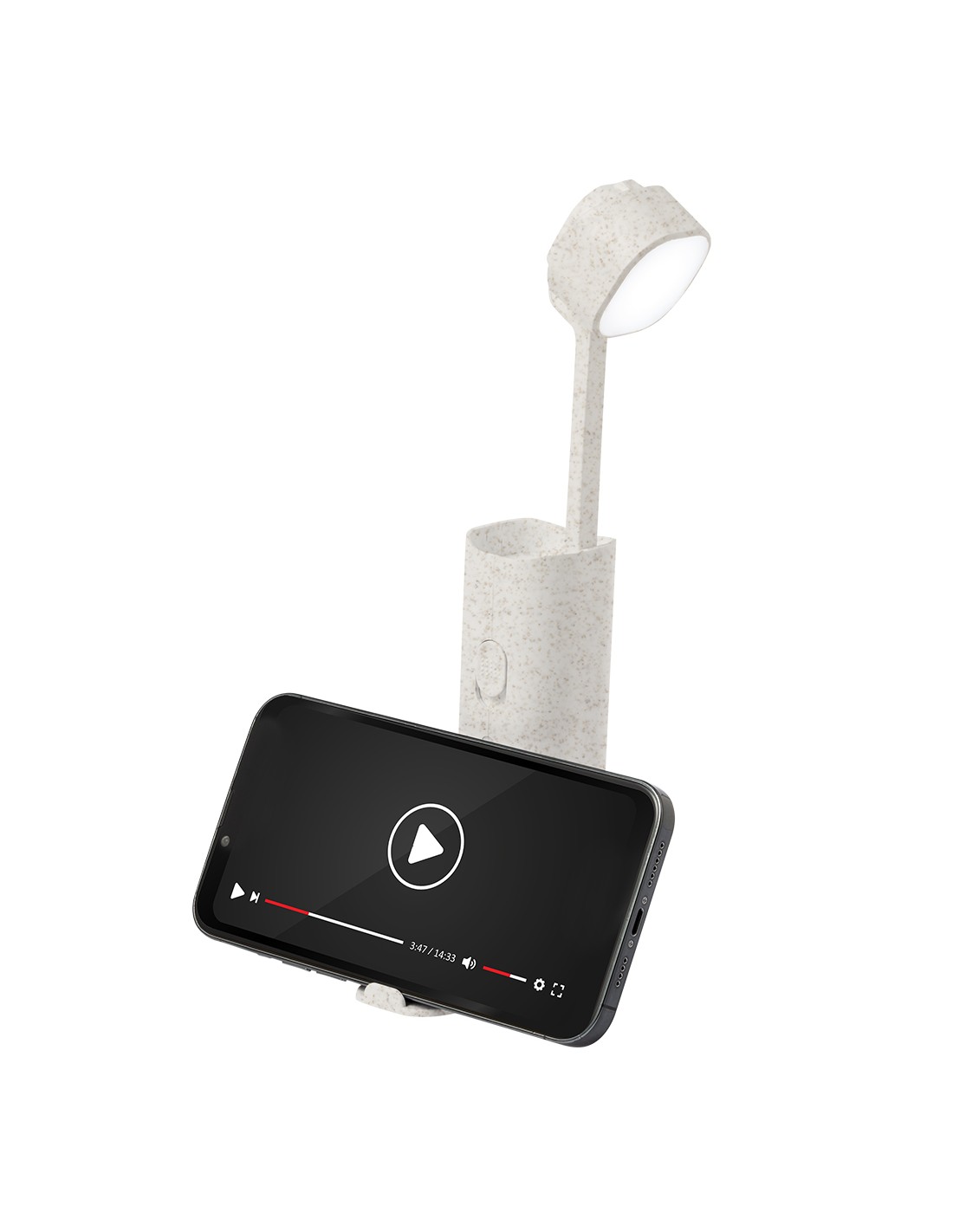 Lámpara multifunción fabricada en caña de trigo. Incluye 12 LEDs de intensidad regulable, es plegable y ajustable en altura. Incluye soporte para dispositivos móviles y tiene base antideslizante, con cable cargador Micro USB incluido. Disponible manual de instrucciones en español e inglés y presentada en caja de diseño kraft.La caña de trigo fomenta la utilización de materias primas naturales, reduciendo así las emisiones contaminantes.Fabricada conforme a los estándares RoHS y en cumplimiento con los siguientes requisitos de seguridad:Sistema de protección contra sobrecalentamiento.Sistema de protección contra sobrecarga.Sistema de bloqueo para evitar cortocircuitos.