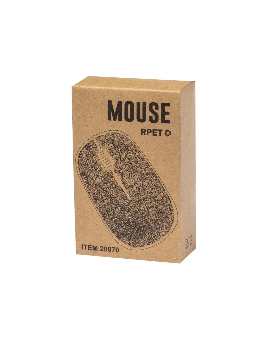 Ratón óptico inalámbrico con diseño ergonómico, con superficie de manejo en RPET. Botón DPI incluido y alimentación a pilas: 1xAA no incluida. Con sistema plug and play, sin necesidad de instalación. Presentado en atractiva caja de diseño kraft.El material RPET se elabora a partir de plástico reciclado, para así fomentar la reutilización de residuos plásticos y ayudar a la sostenibilidad del planeta.