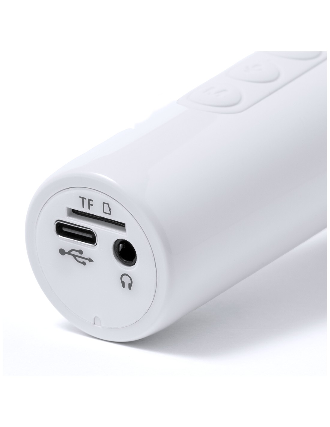 Descubre la libertad de la música con el altavoz micrófono portátil, con conexión Bluetooth y fabricado en resistente ABS. Con espuma protectora gris y luces LED multicolor que añaden un toque vibrante, este dispositivo es perfecto para animar cualquier ocasión. Botones integrados en el mango para controlar fácilmente todas las funciones que ofrece, efectos de eco, multitud de conexiones y ranura para tarjetas Micro SD de hasta 32 GB. Potencia de sonido de 5W y batería recargable de 1.200 mAh, con cable Tipo C (incluido) que asegura horas de entretenimiento. Presentado en caja de diseño kraft, con manual de instrucciones en español e inglés.
