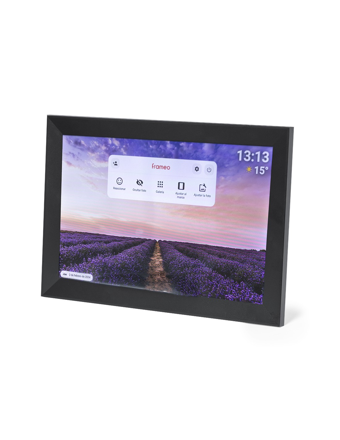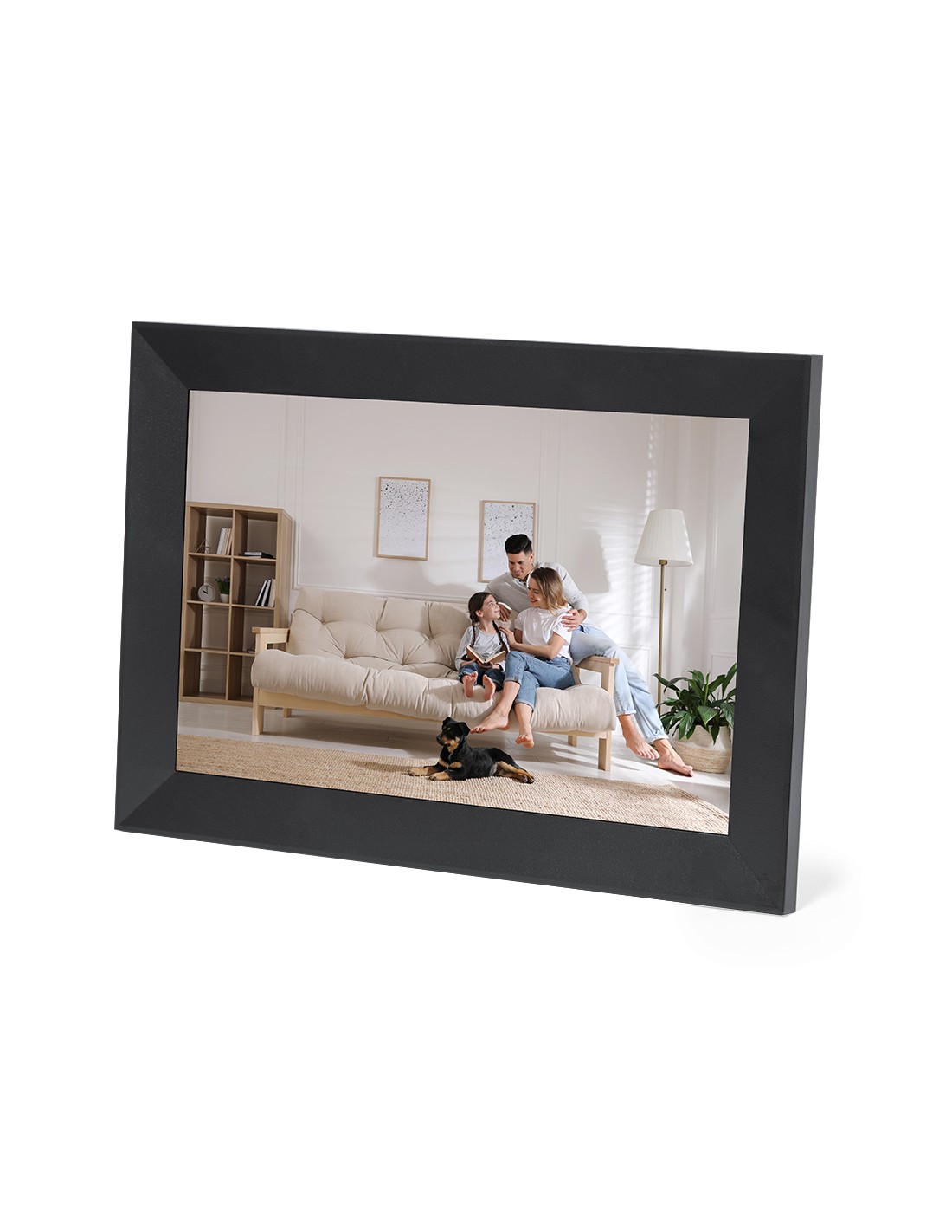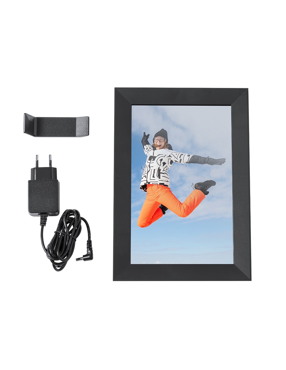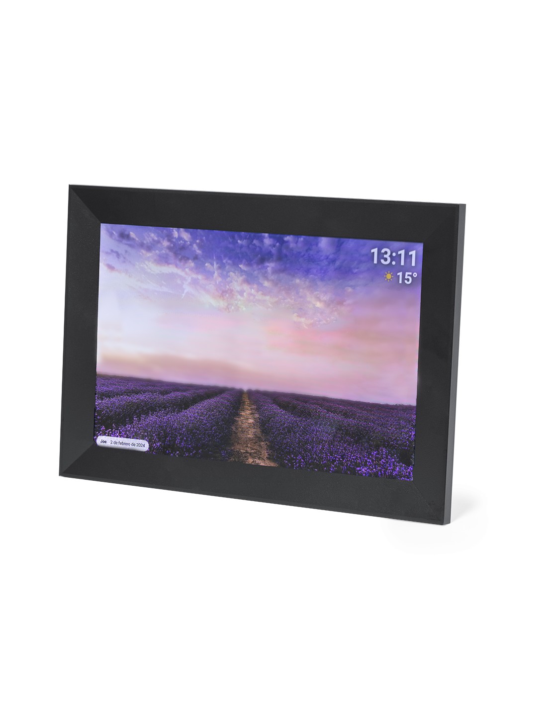 Marco de fotos digital de 10,1 pulgadas. Con pantalla táctil IPS de alta resolución de 1280x800 píxeles, conectividad WiFi, y equipado con funciones inteligentes como visualización del tiempo, alarma y reloj. Ademas incorpora un menú para explorar un mundo de posibilidades al ver videos, fotos y escuchar música, con opción de visualización en formato horizontal y vertical. Con soporte en la parte trasera y ranuras para colgar en la pared. Alimentación CA 220V-240V, con cargador incluido. Presentado en caja de diseño kraft y disponible manual de instrucciones en español e inglés.