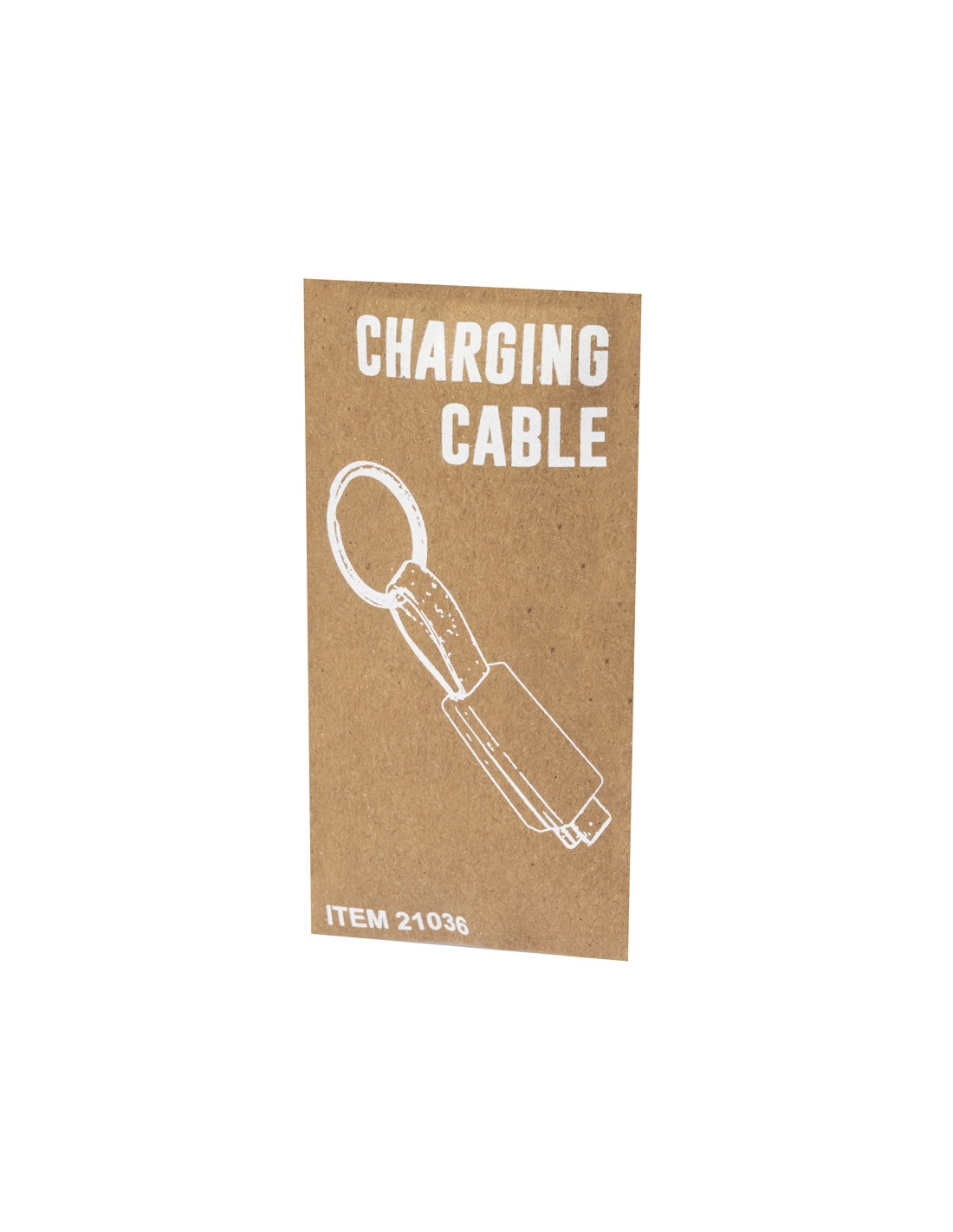 Cargador llavero USB Tipo C. Con 65W de potencia y apto para transferir datos. Presentado en bolsa individual de papel reciclado.