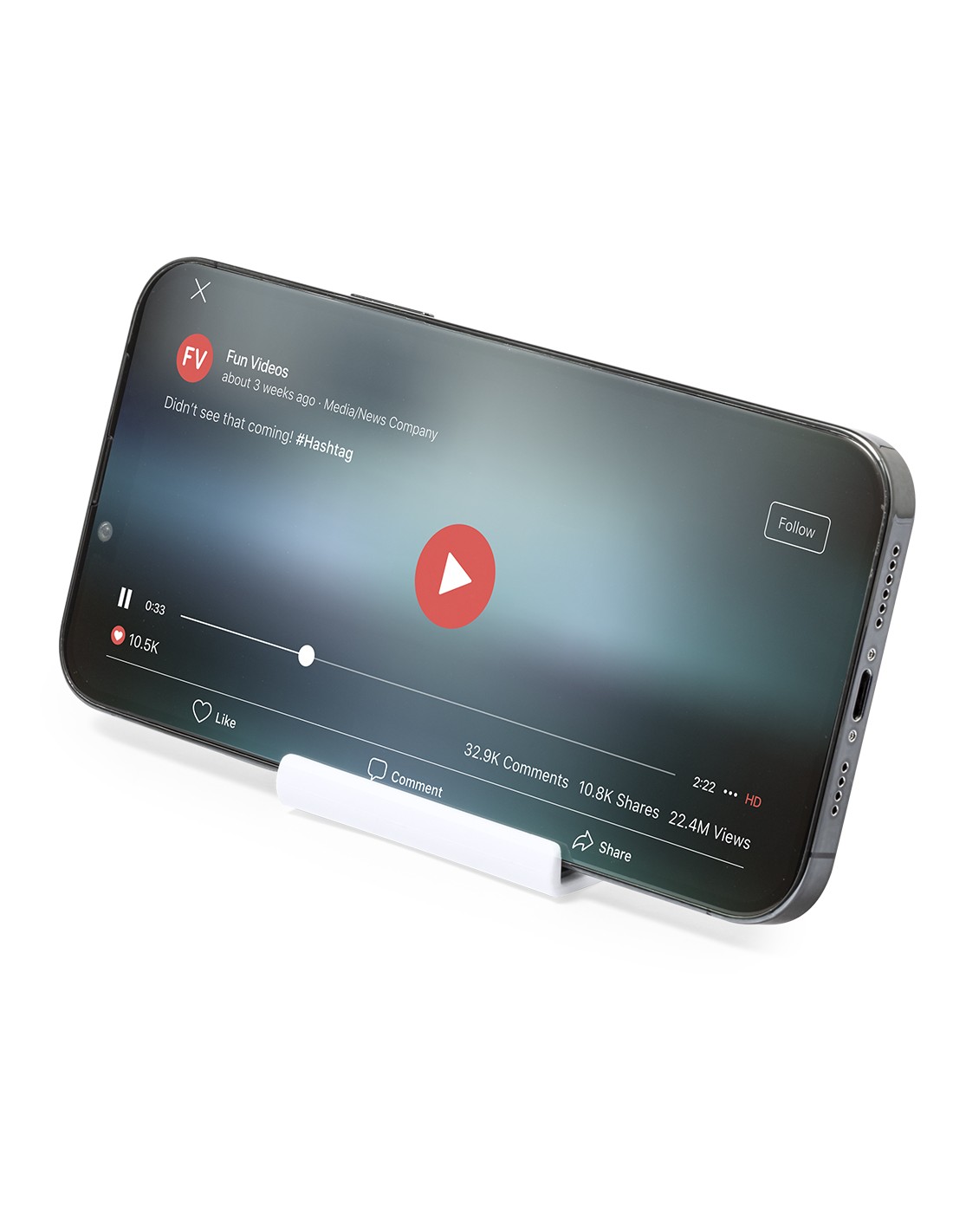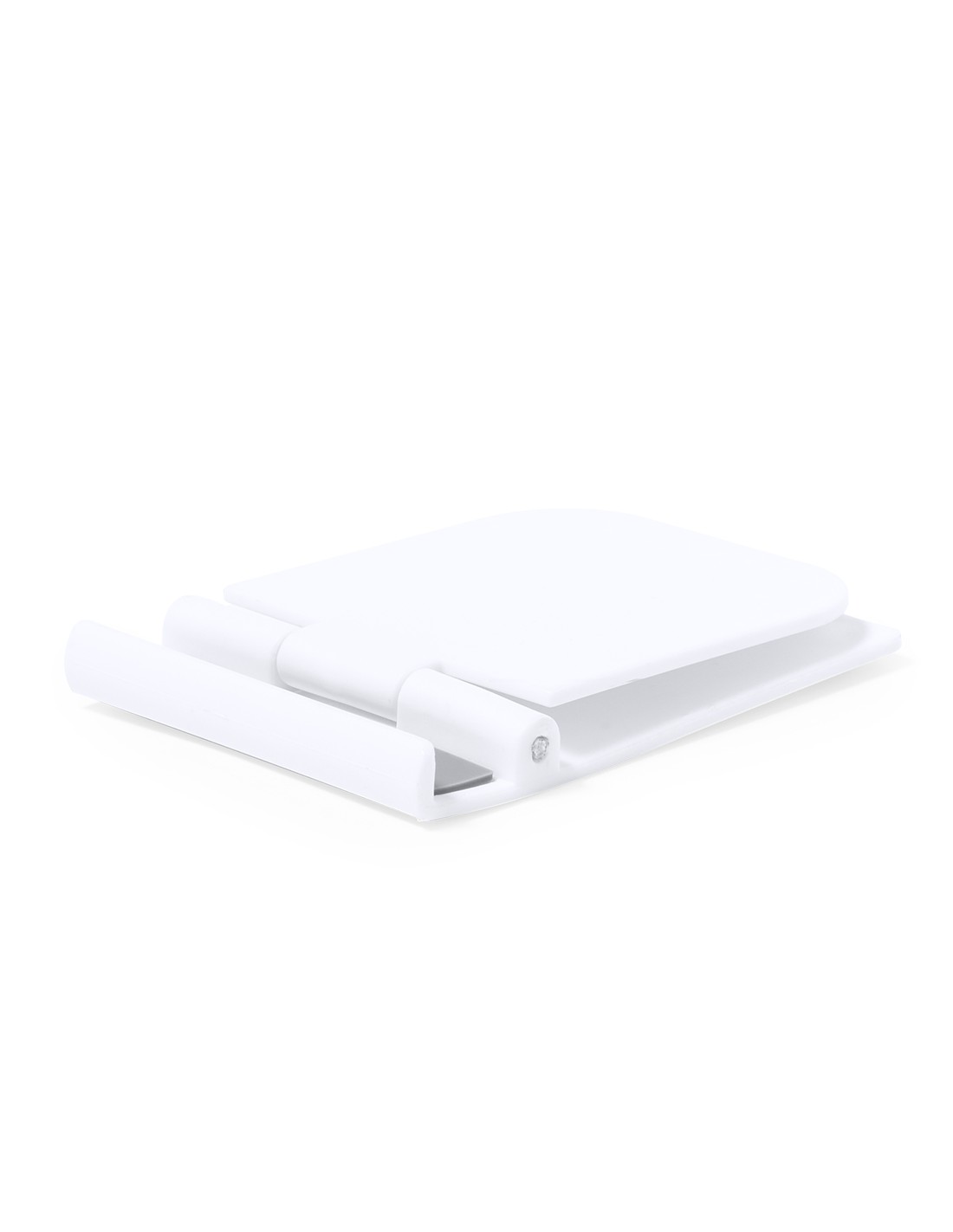 Soporte para smartphone y tablet fabricado en resistente ABS. De diseño compacto y plegable para poder llevarlo a cualquier lado. Con distintas posiciones de inclinación y almohadillas de sujeción. Presentado en bolsa individual reciclada.