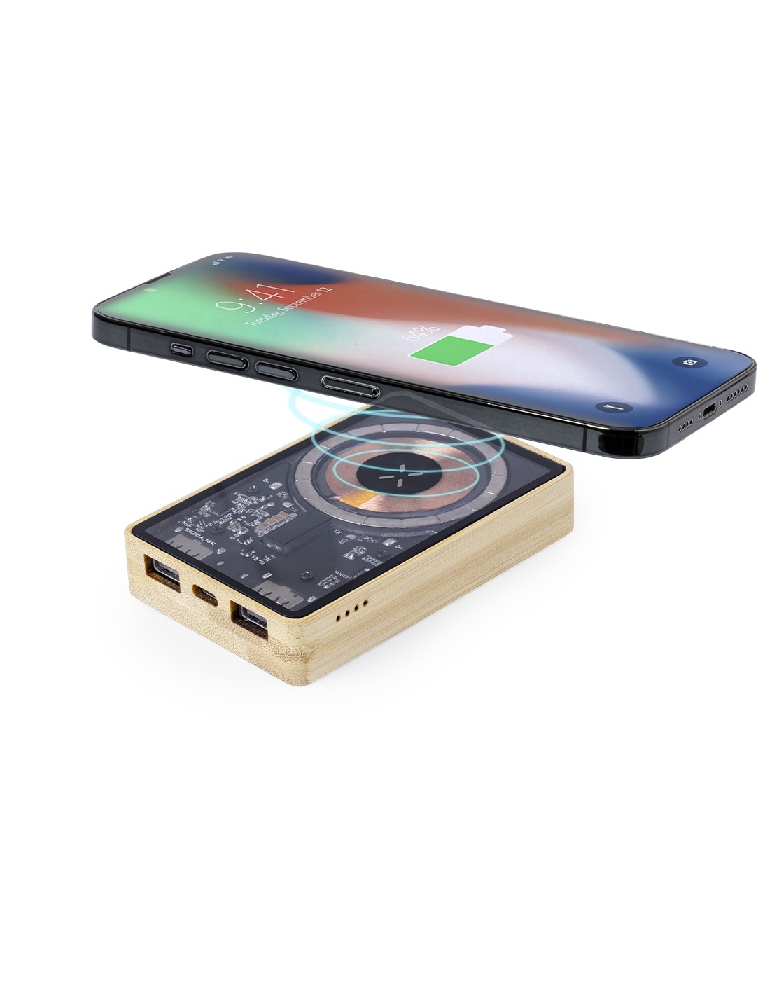 Batería auxiliar externa de original diseño y superficie transparente que permite ver los componentes internos del dispositivo. 5.000 mAh de capacidad de carga, con base en bambú y cargador inalámbrico integrado 15W. Conexiones de entrada/salida Tipo C + salida USB. Fijación magnética Magsafe y compatible con dispositivos equipados con tecnología de carga inalámbrica Qi. Cable de carga incluido, con manual de instrucciones en español e inglés. Presentada en caja individual de diseño eco y en cartón kraft.Entrada/Salida Tipo C: 5-12V DC 3-1.67A, 20WSalida USB: 5-12V DC 3-1.5A, 18WLas capacidades mostradas en todas nuestras baterías auxiliares externas son reales, incorporando todas ellas baterías de grado A y no recicladas, con una vida útil de al menos 500 ciclos de carga y según normativa CE. Además, están fabricadas conforme a los estándares RoHS y en cumplimiento con los siguientes requisitos de seguridad:Sistema de protección contra sobrecarga del power bank.Sistema de protección contra descarga completa que proporciona una mayor durabilidad del power bank.Sistema de bloqueo para evitar cortocircuitos.Sistema de transferencia de carga constante, acorde con la capacidad del dispositivo de destino.Materiales como el bambú fomentan la utilización de materias primas naturales, reduciendo las emisiones contaminantes. Proviene de una planta de gran resistencia y versatilidad, con crecimiento y regeneración rápidos, siendo una excelente alternativa al uso de madera tradicional.