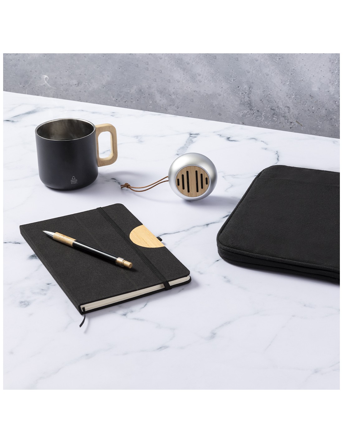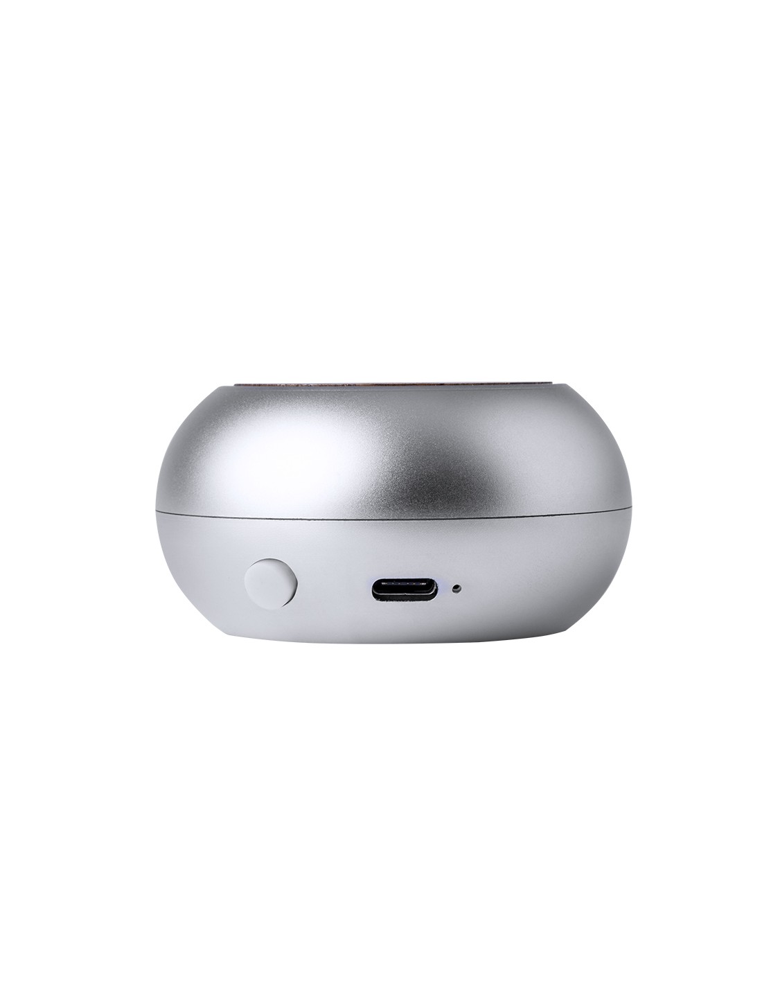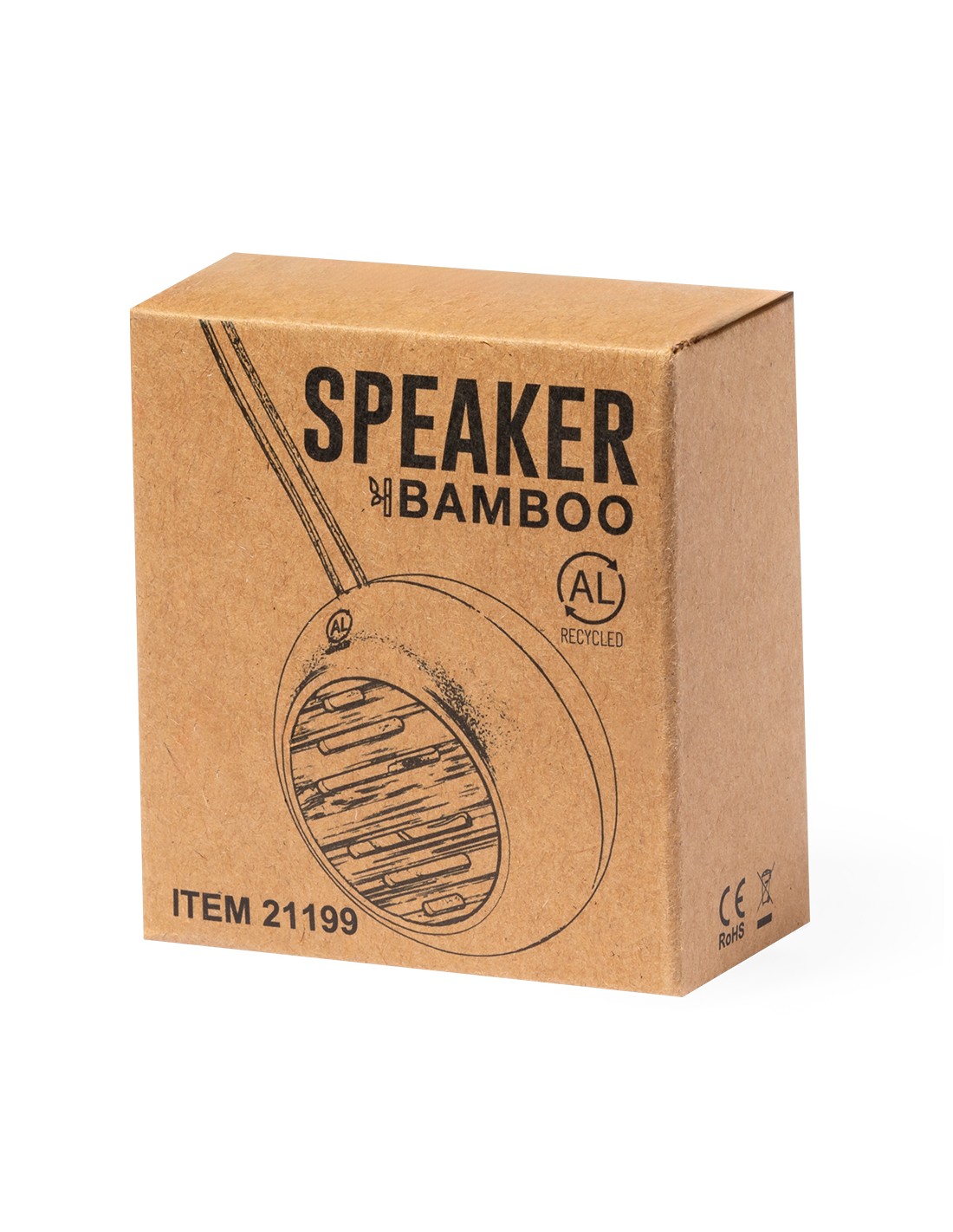 Original altavoz Bluetooth de tamaño compacto y 3W de potencia. Fabricado en materiales eco, combinado un cuerpo en resistente Aluminio Reciclado y una rejilla en bambú. Batería de litio de 300mAh, recargable mediante cable Tipo C (incluido). Con botón ON/OFF y luz LED de estado de carga. Con logotipo Aluminio Reciclado y cordón para un fácil transporte. Presentado en caja individual de diseño kraft, con manual de instrucciones en español e inglés.El Aluminio Reciclado es un material con posibilidades de reciclaje casi infinitas, sin perder sus propiedades originales y consumiendo menos energía en este proceso.Certificación GRS (Global Recycled Standard / Estándar de Reciclaje Global), que garantiza el origen reciclado del material usado para fabricar el producto.Materiales como el bambú fomentan la utilización de materias primas naturales, reduciendo las emisiones contaminantes. Proviene de una planta de gran resistencia y versatilidad, con crecimiento y regeneración rápidos, siendo una excelente alternativa al uso de madera tradicional.Fabricado conforme a los estándares RoHS y en cumplimiento con los siguientes requisitos de seguridad:Sistema de protección contra sobrecalentamiento.Sistema de protección contra sobrecarga.Sistema de bloqueo para evitar cortocircuitos.