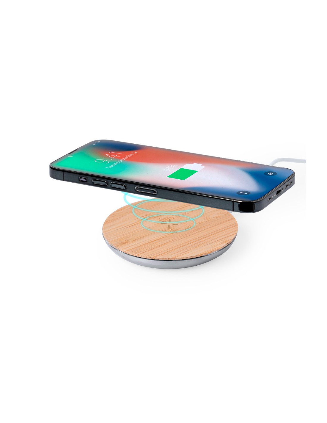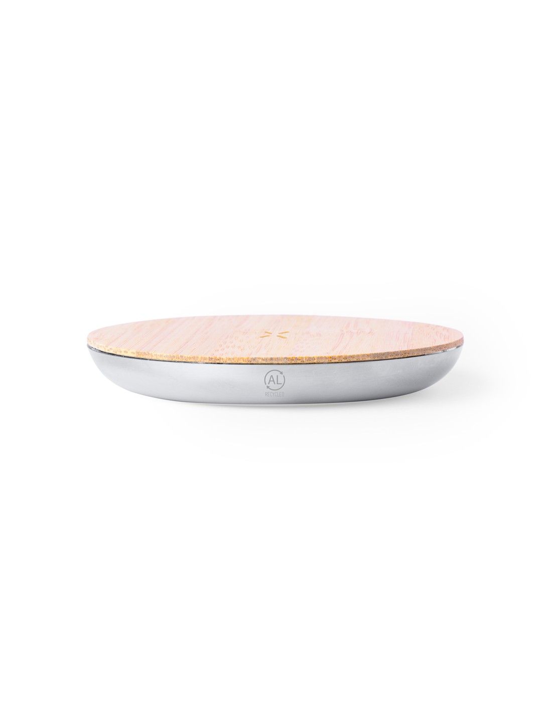 Cargador inalámbrico 15W de diseño circular, con cuerpo fabricado en Aluminio Reciclado y base de carga en bambú. Compatible con dispositivos equipados con tecnología de carga inalámbrica Qi, con cable de carga Tipo C incluido e indicador LED de estado de carga. Base antideslizante y presentado en caja individual de diseño kraft, con manual de instrucciones en español e inglés.Materiales como el bambú fomentan la utilización de materias primas naturales, reduciendo las emisiones contaminantes. Proviene de una planta de gran resistencia y versatilidad, con crecimiento y regeneración rápidos, siendo una excelente alternativa al uso de madera tradicional.El Aluminio Reciclado es un material con posibilidades de reciclaje casi infinitas, sin perder sus propiedades originales y consumiendo menos energía en este proceso.Certificación GRS (Global Recycled Standard / Estándar de Reciclaje Global), que garantiza el origen reciclado del material usado para fabricar el producto.Fabricado conforme a los estándares RoHS y en cumplimiento con los siguientes requisitos de seguridad:Sistema de protección contra sobrecalentamiento.Sistema de protección contra sobrecarga.Sistema de bloqueo para evitar cortocircuitos.