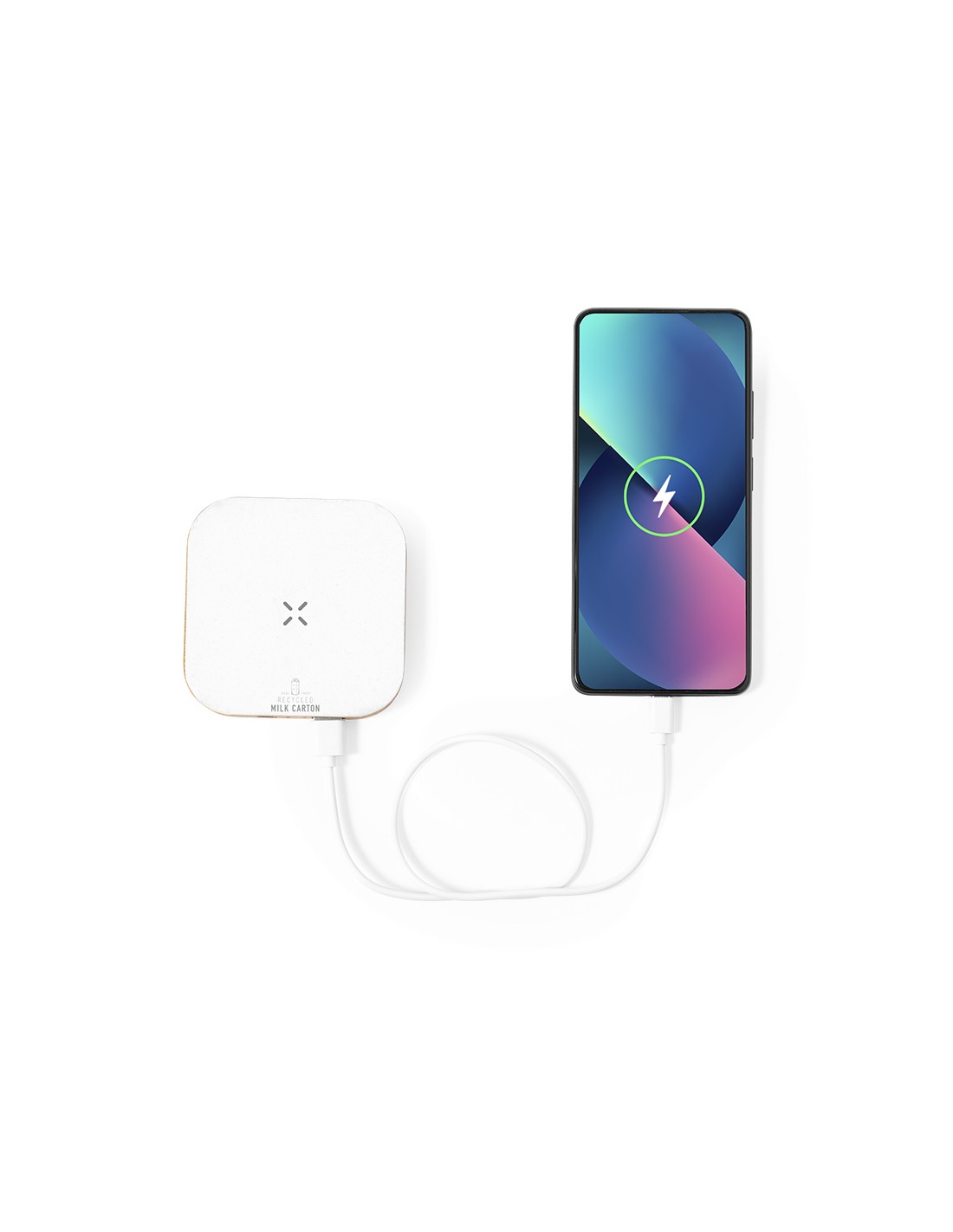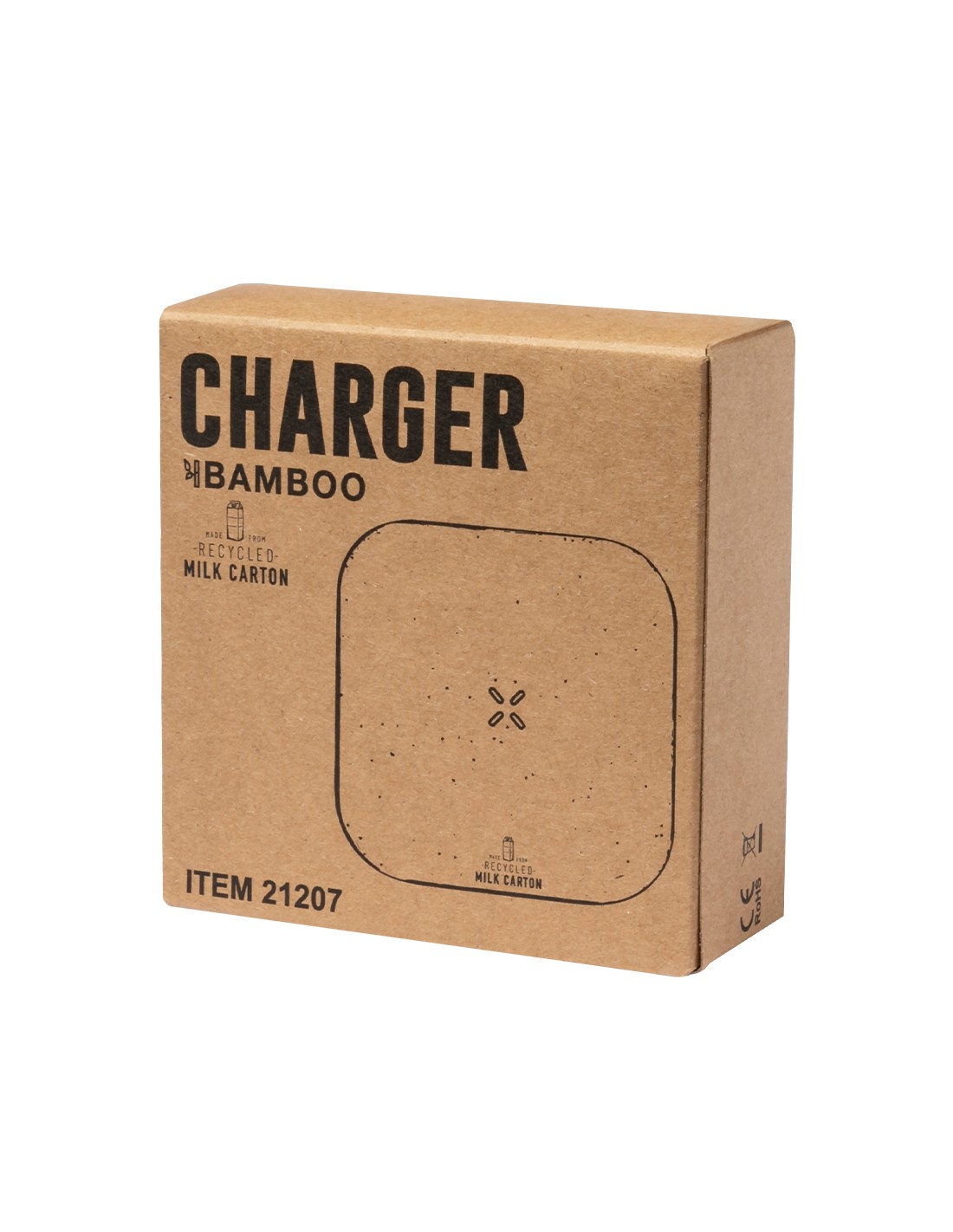 Cargador inalámbrico 15W y forma cuadrada. Con superficie de carga en material reciclado a partir de cartones de leche y base fabricada en bambú, compatible con dispositivos equipados con tecnología de carga inalámbrica Qi. Cable cargador Tipo C incluido, con logotipo cartones de leche reciclados en base de carga. Base de bambú antideslizante y presentado en caja individual de diseño kraft. Con manual de instrucciones en español e inglés.Los cartones de leche se componen en su mayor parte de cartón y aluminio. Durante su proceso de reciclado, se separan los distintos materiales del envase para su reutilización y nuevo uso, contribuyendo así a recorrer el camino infinito de la economía circular. Este material se caracteriza por su alto grado de reciclabilidad, así como por su ligereza y resistencia.Materiales como el bambú fomentan la utilización de materias primas naturales, reduciendo las emisiones contaminantes. Proviene de una planta de gran resistencia y versatilidad, con crecimiento y regeneración rápidos, siendo una excelente alternativa al uso de madera tradicional.Fabricado conforme a los estándares RoHS y en cumplimiento con los siguientes requisitos de seguridad:Sistema de protección contra sobrecalentamiento.Sistema de protección contra sobrecarga.Sistema de bloqueo para evitar cortocircuitos.