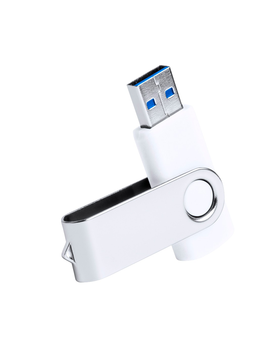 Memoria USB 3.0 de 16GB de capacidad. Con clip metálico y cuerpo de suave acabado en color blanco. Presentada en estuche individual.