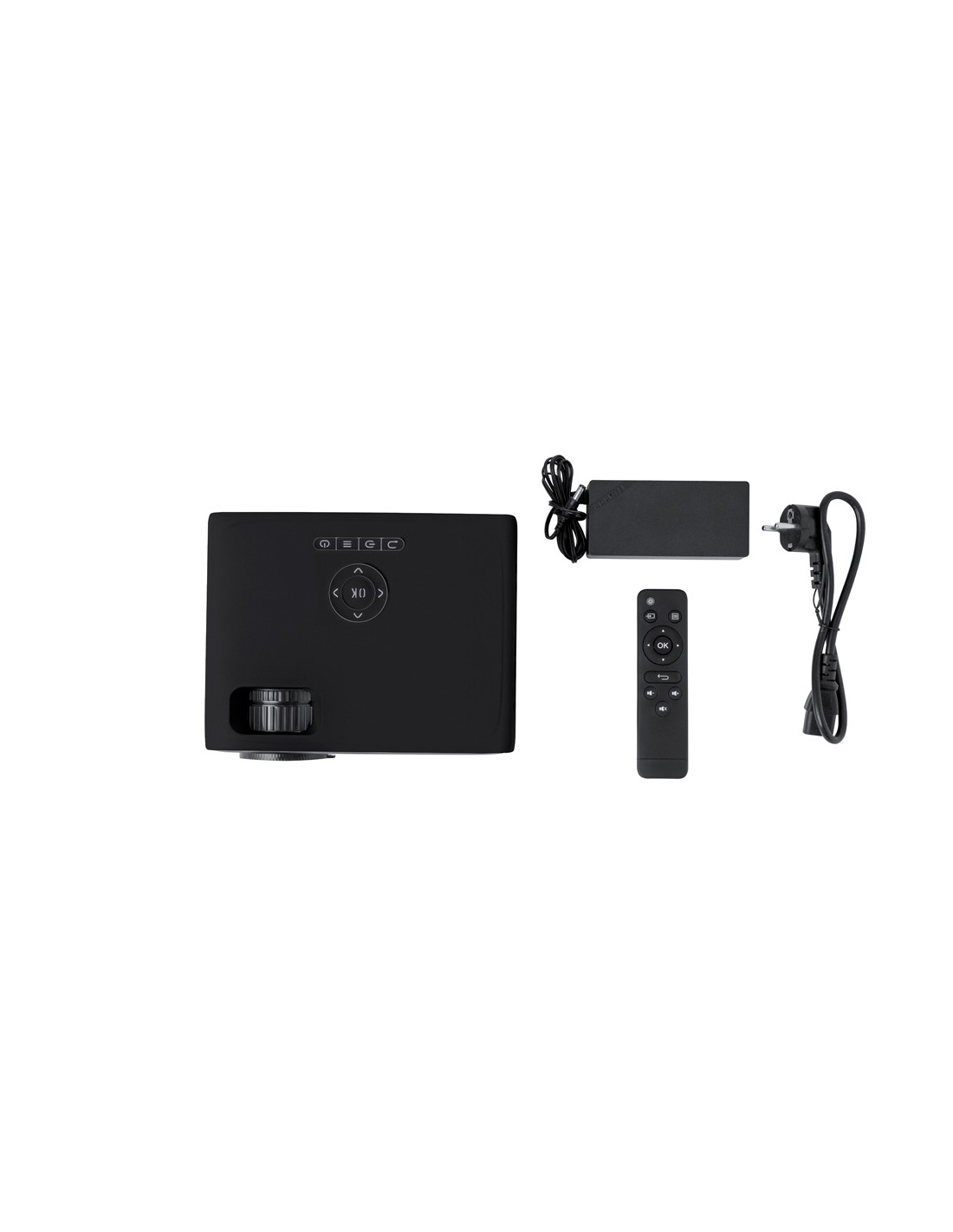 Proyector con conectividad bluetooth y WiFi que proporciona una fantástica experiencia audiovisual. Fabricado en resistente ABS de color negro, con regulador de enfoque y ángulo para un óptimo visionado. Saca una potencia de 7.000 lúmenes, con resolución 720p, e incorpora un potente altavoz de 5W. Además, cuenta con multitud de conexiones: 3xHDMI (1 conector macho + 2 conectores hembra), conexión USB, salida de audio jack de 3,5 mm y entrada de audio jack de 3,5 mm. Con ranura para tarjetas de memoria Micro SD y mando a distancia para un cómodo y fácil manejo del dispositivo. Incluye cable de alimentación CA 220V-240V y viene presentado en caja de diseño kraft.
