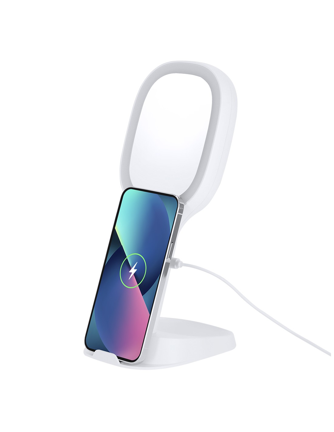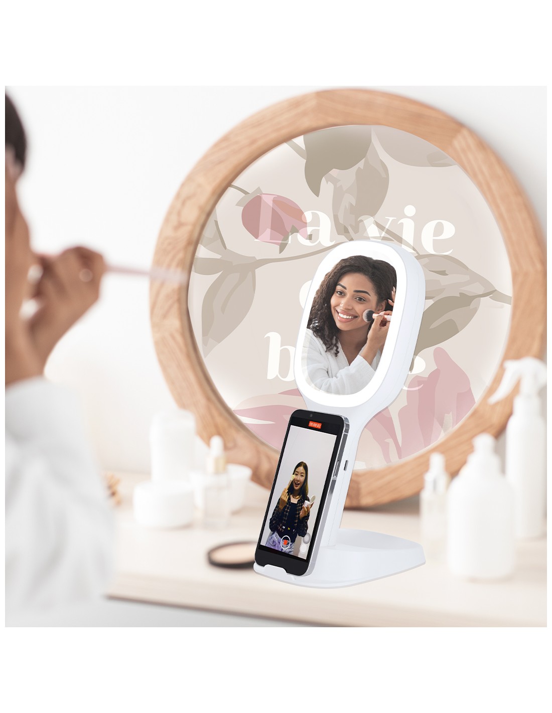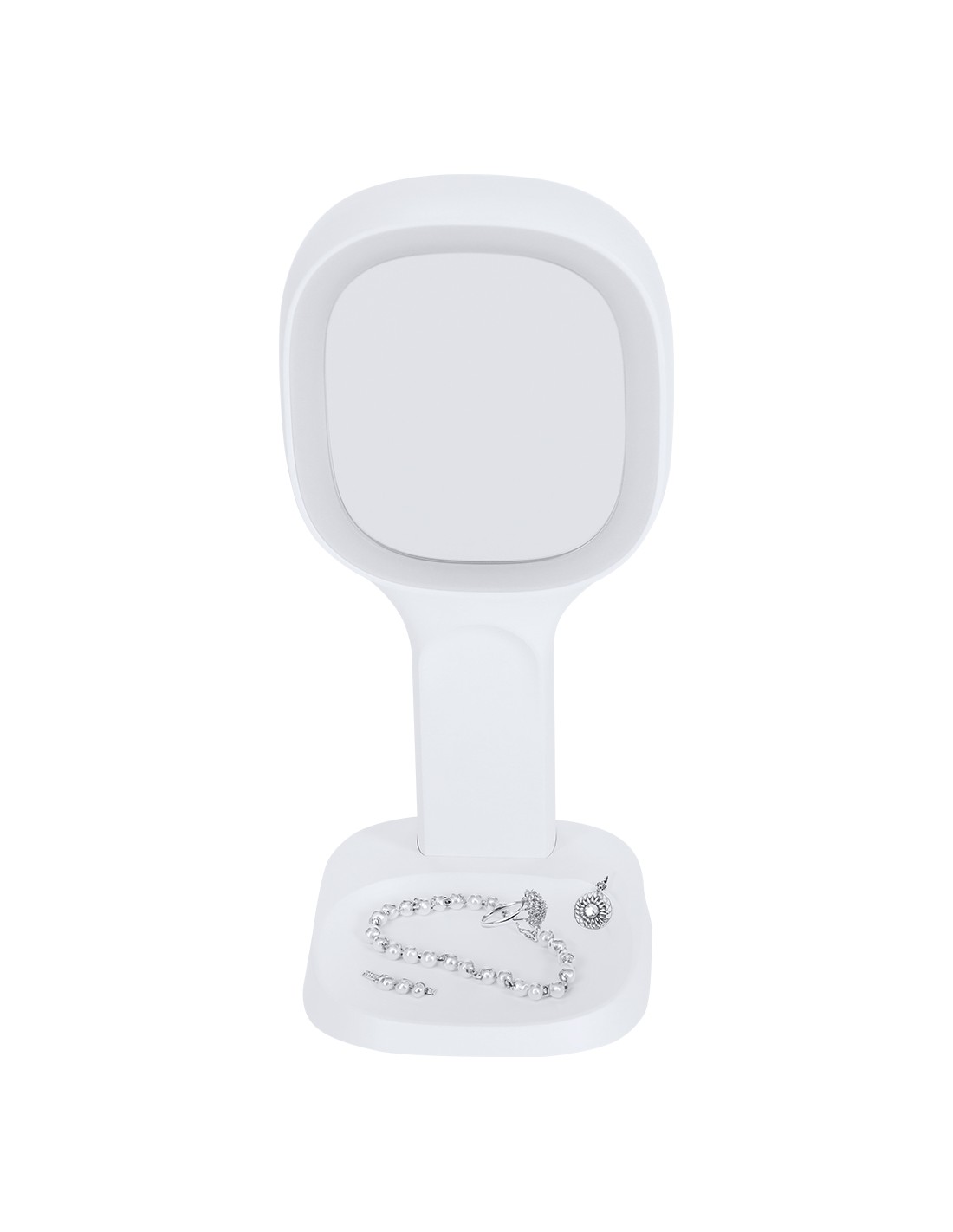 Espejo multifunción extraíble con versátiles funciones:- Espejo de aumento 1x por una cara y 5x por la otra.- Cargador inalámbrico de 15W.- Soporte para smartphone, permitiendo el uso del dispositivo mientras utilizas el espejo.- Luz con 3 intensidades: blanca, intermedia y cálida. Con 44 luces LEDs.- Compartimento para objetos pequeños.Fabricado conforme a los estándares RoHS y en cumplimiento con los siguientes requisitos de seguridad:Sistema de protección contra sobrecalentamiento. Sistema de protección contra sobrecarga. Sistema de bloqueo para evitar cortocircuitos.