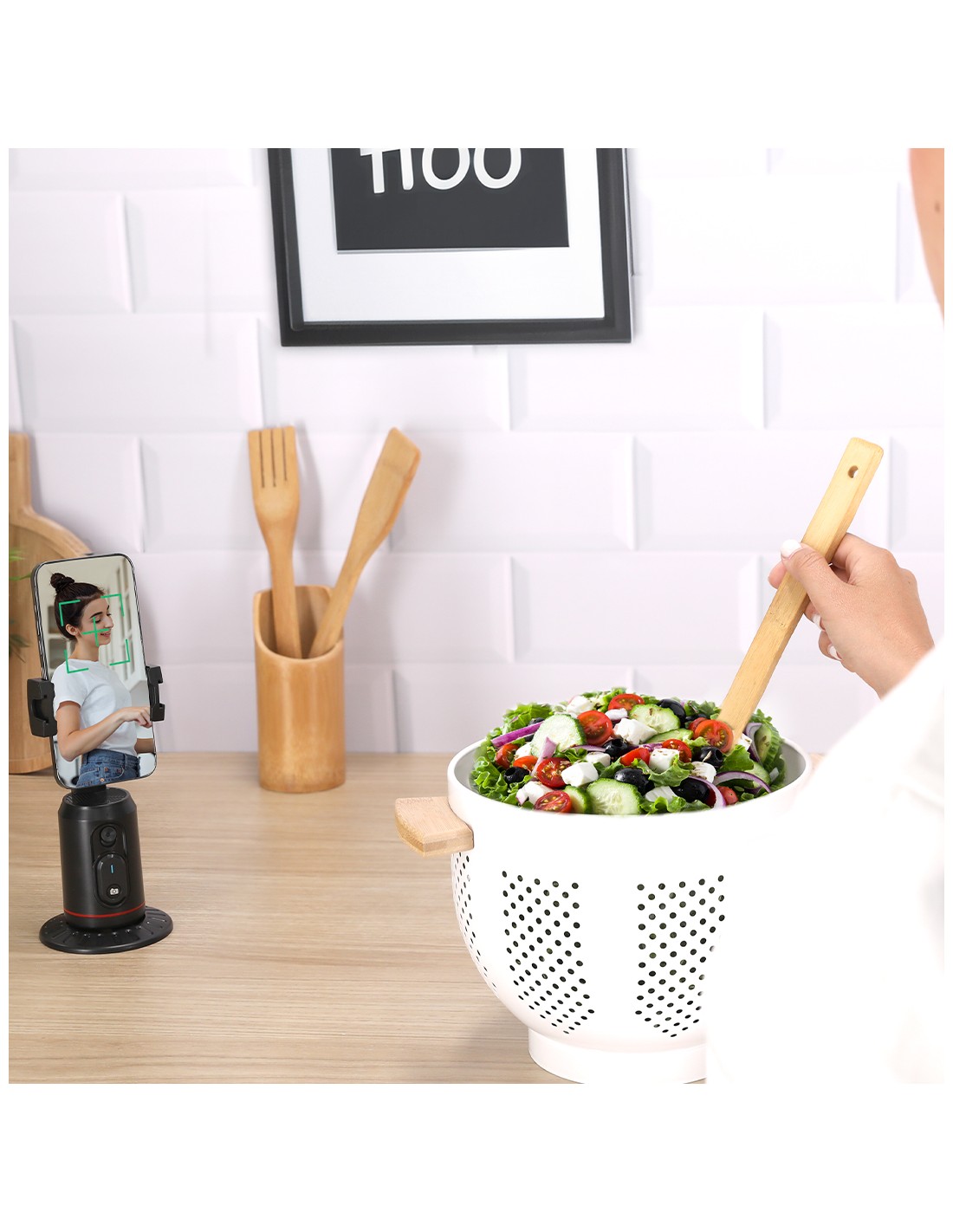 Soporte de seguimiento automático con base y trípode. Incluye:- Lente óptica de alta calidad con inteligencia artificial que posibilita un seguimiento avanzado 360º y doble ángulo de reconocimiento. Ideal para grabar tanto de pie como sentado, asegurando un acompañamiento constante sin importar el movimiento.- Controles gestuales intuitivos para una grabación impecable, iniciando el seguimiento, pausando la grabación o cancelándola con unos simple gestos de mano, que posibilitan una experiencia de grabación sin interrupciones.- Compatibilidad universal y funcionamiento sin aplicaciones para streaming y vlogs, ya que se integra en las plataformas más populares, ofreciendo una experiencia plug-and-play para todos los usuarios.- Disparador extraíble de conexión Bluetooth integrado en la carcasa y batería de litio de 1200 mAh, de gran autonomía. Montaje versátil con rosca 1/4”, compatible con una amplia gama de accesorios y trípodes. - Base antideslizante para uso de sobremesa.- Trípode telescópico de diseño compacto. 360º con rosca 1/4”, de mecanismo extensible y con base desplegable antideslizante, ajustable en altura para las diversas necesidades de grabación, asegurando que los vídeos se capturen desde el ángulo perfecto. Incluye disparador de conexión Bluetooth integrado en el mango, extraíble y recargable. Con soporte universal para smartphone, telescópico y ajustable. Base y disparadores recargables mediante cable USB Tipo C .Base y trípode con presentación en estuches individuales de diseño kraft.Fabricado conforme a los estándares RoHS y en cumplimiento con los siguientes requisitos de seguridad:Sistema de protección contra sobrecalentamiento.Sistema de protección contra sobrecarga.Sistema de bloqueo para evitar cortocircuitos.