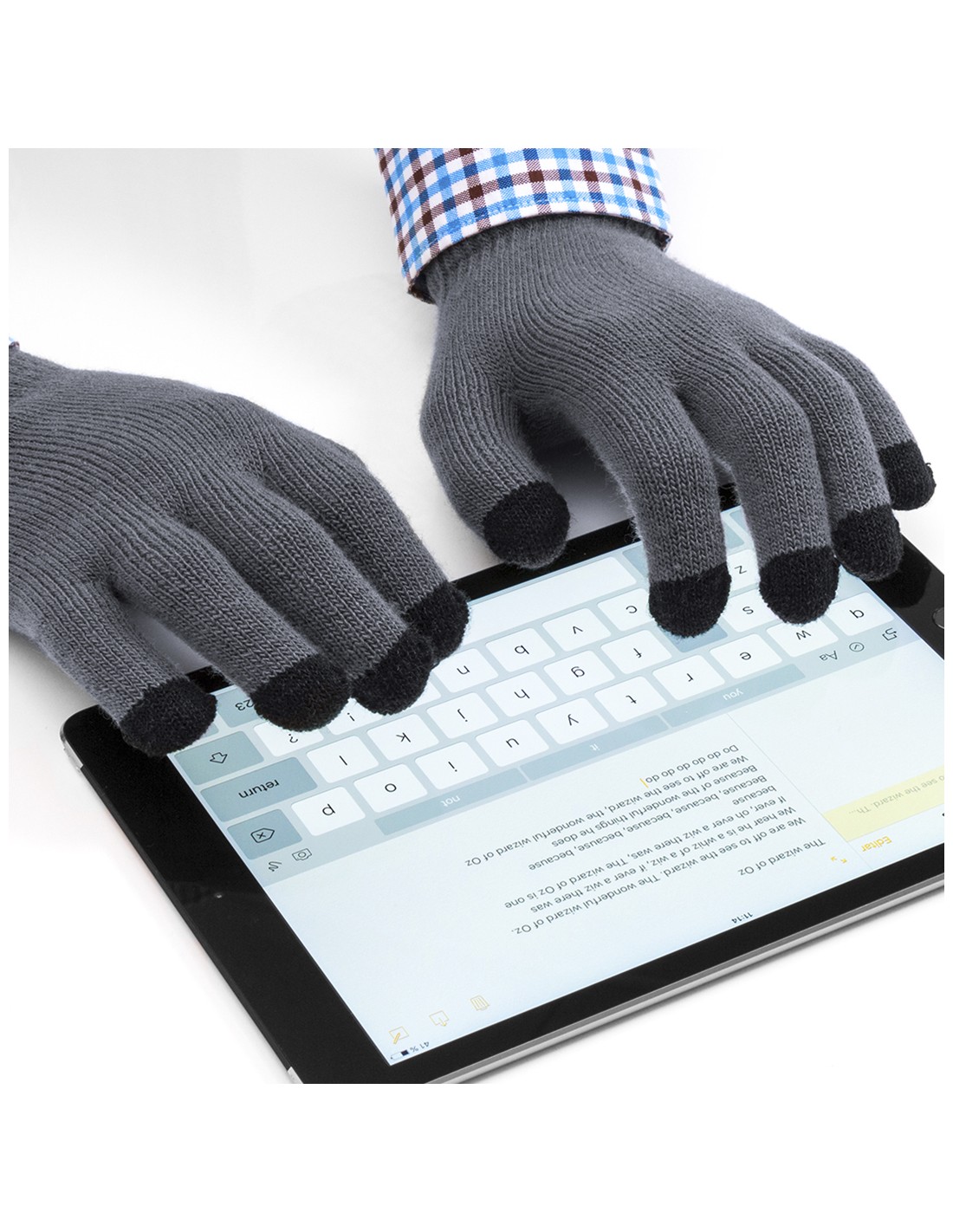 Práctico par de guantes para dispositivos con pantalla táctil de cálido y suave acabalado acrílico. Integran puntero en todos los dedos para experiencia táctil completa. Talla única