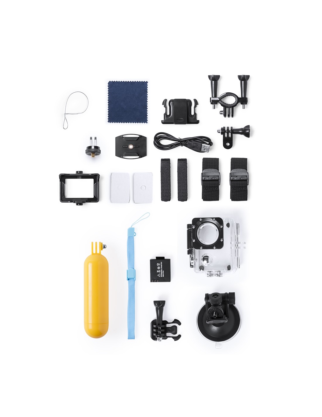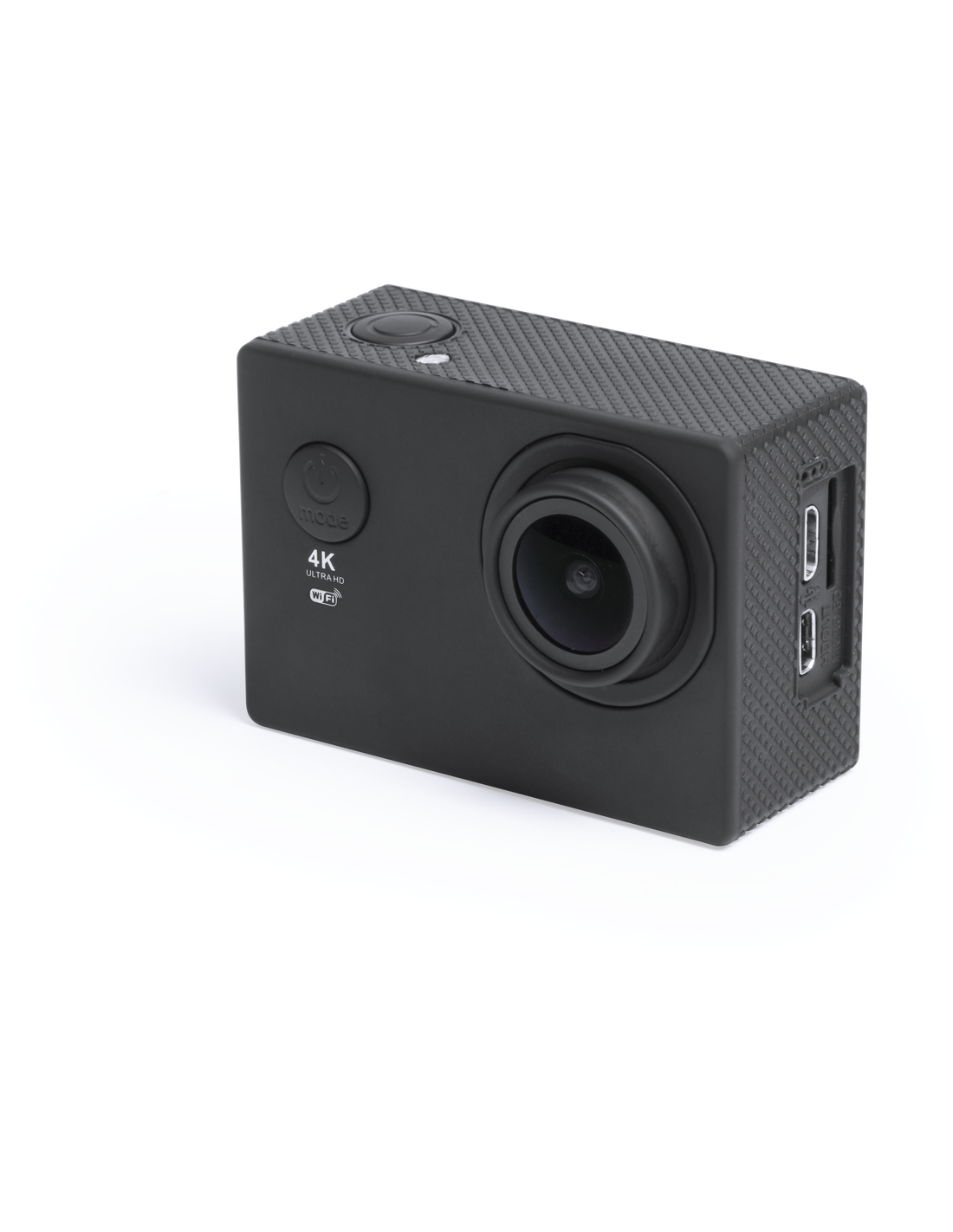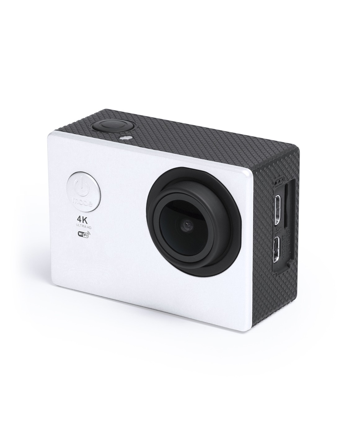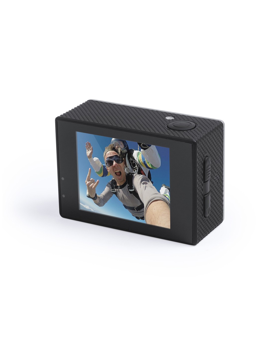 Cámara deportiva de alta calidad de captura de vídeo HD 4K, de diseño compacto y resistente, especialmente diseñada para uso intensivo. Incluye carcasa sumergible hasta 30m de profundidad y multitud de accesorios para ajuste en casco, manillar o cinturón, así como correas ajustables para cabeza y torso o un adaptador giratorio de 360º. La versatilidad y resistencia de esta cámara deportiva la convierten en el gadget perfecto para capturar, con una calidad excepcional, cualquier actividad deportiva. Con función cámara de fotos Full HD 1080p, ranura para tarjetas micro SD de hasta 64 GB de capacidad, pantalla LCD de 2 pulgadas, sistema multilenguaje, y recargable mediante cable mini USB -incluido-. Presentada en atractiva caja de diseño.