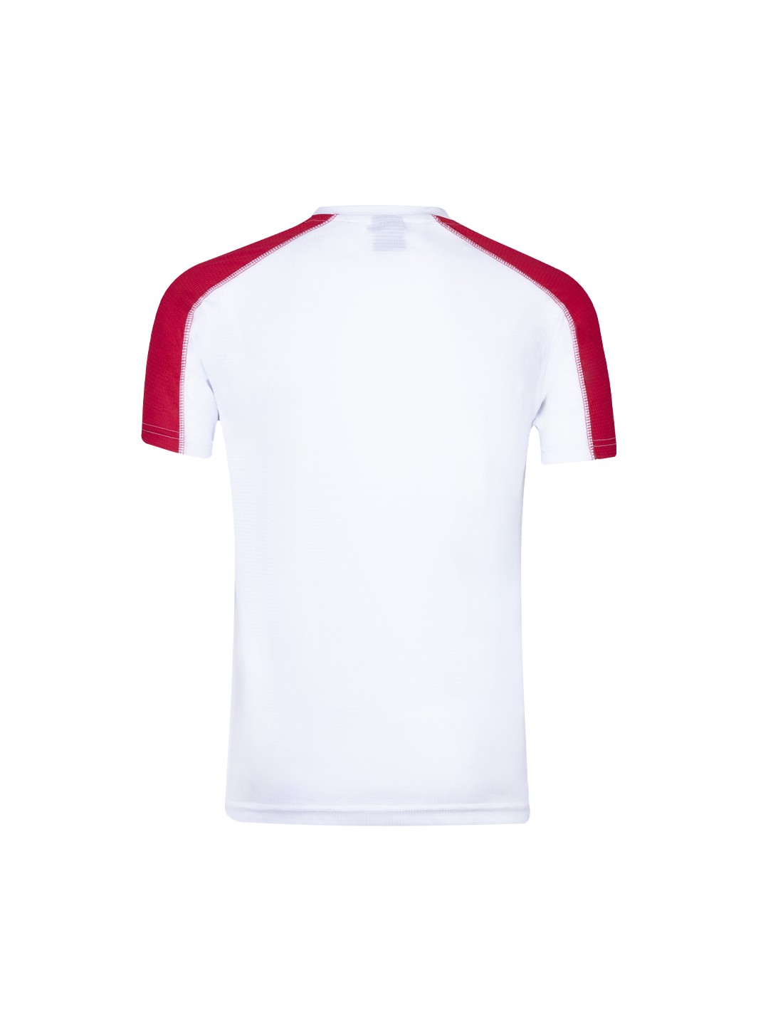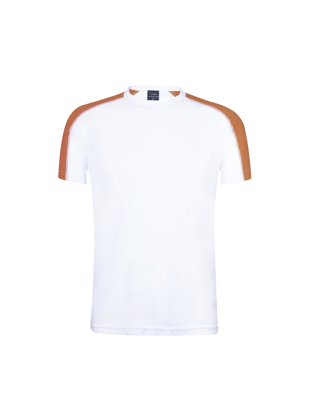 Camiseta técnica para adulto en material dynamic, altamente transpirable y confeccionada en tela 100% poliéster de 135g/m2. Original diseño en color blanco, con franja de color en las mangas. Disponible en variados colores y en tallas S, M, L, XL, XXL.