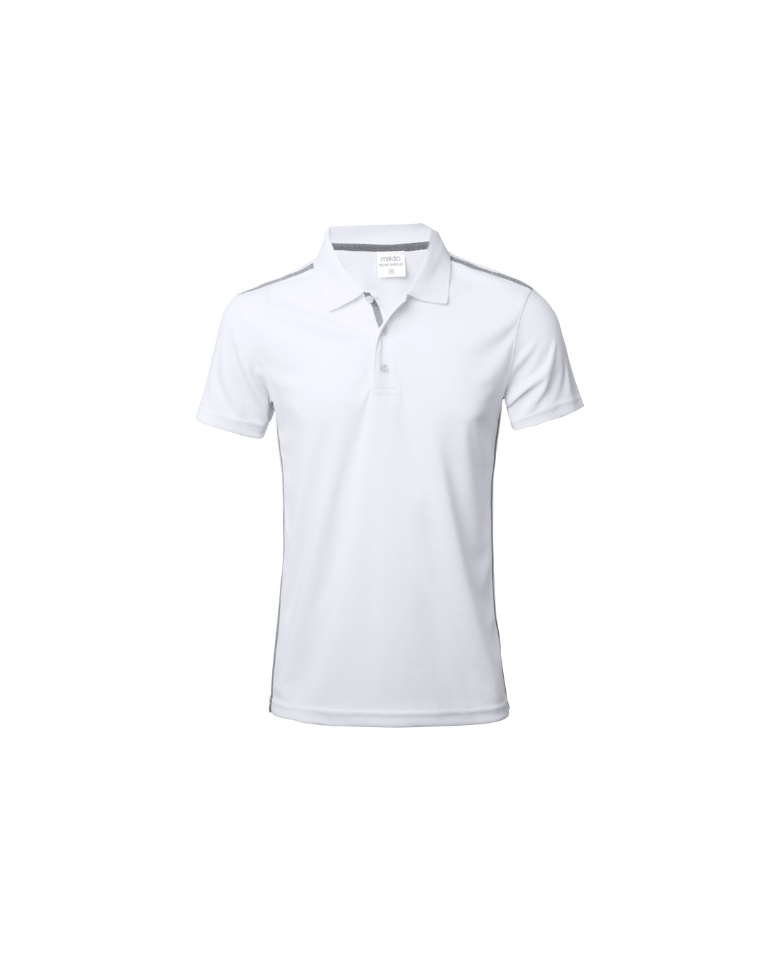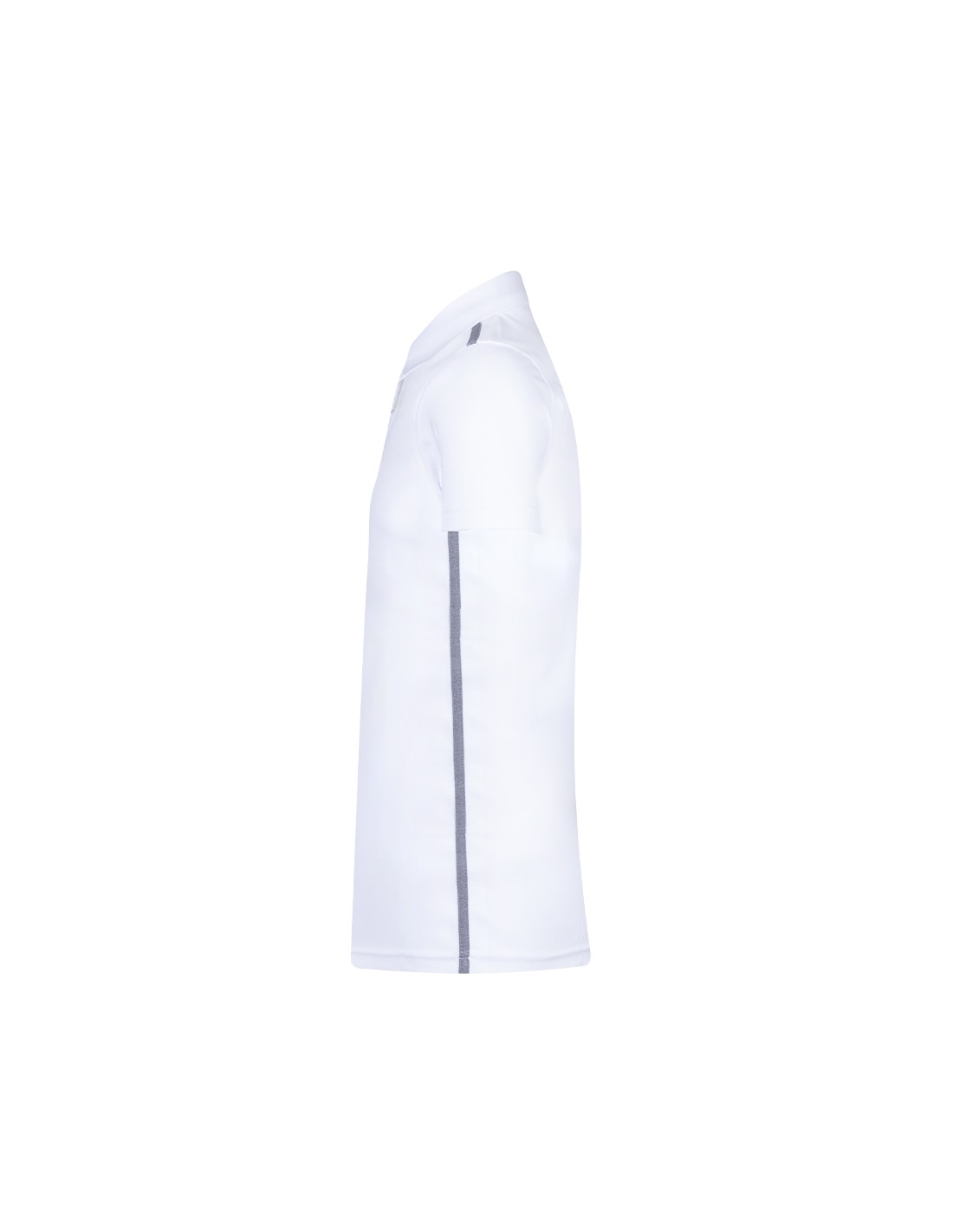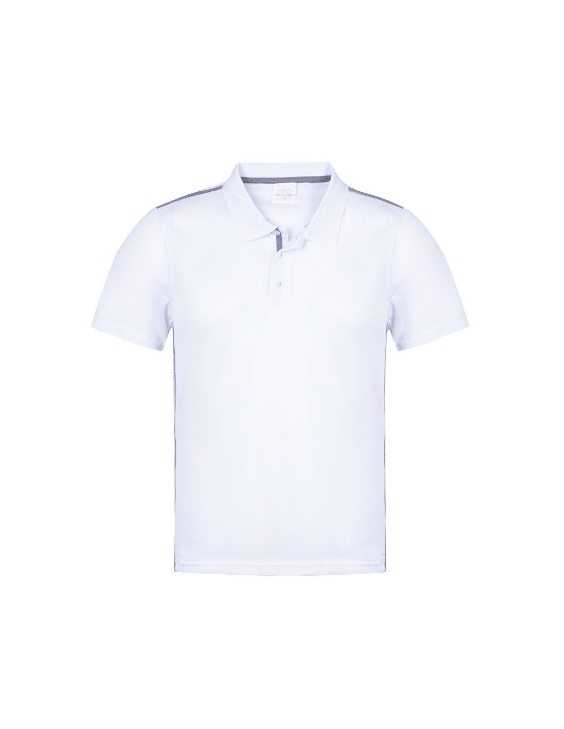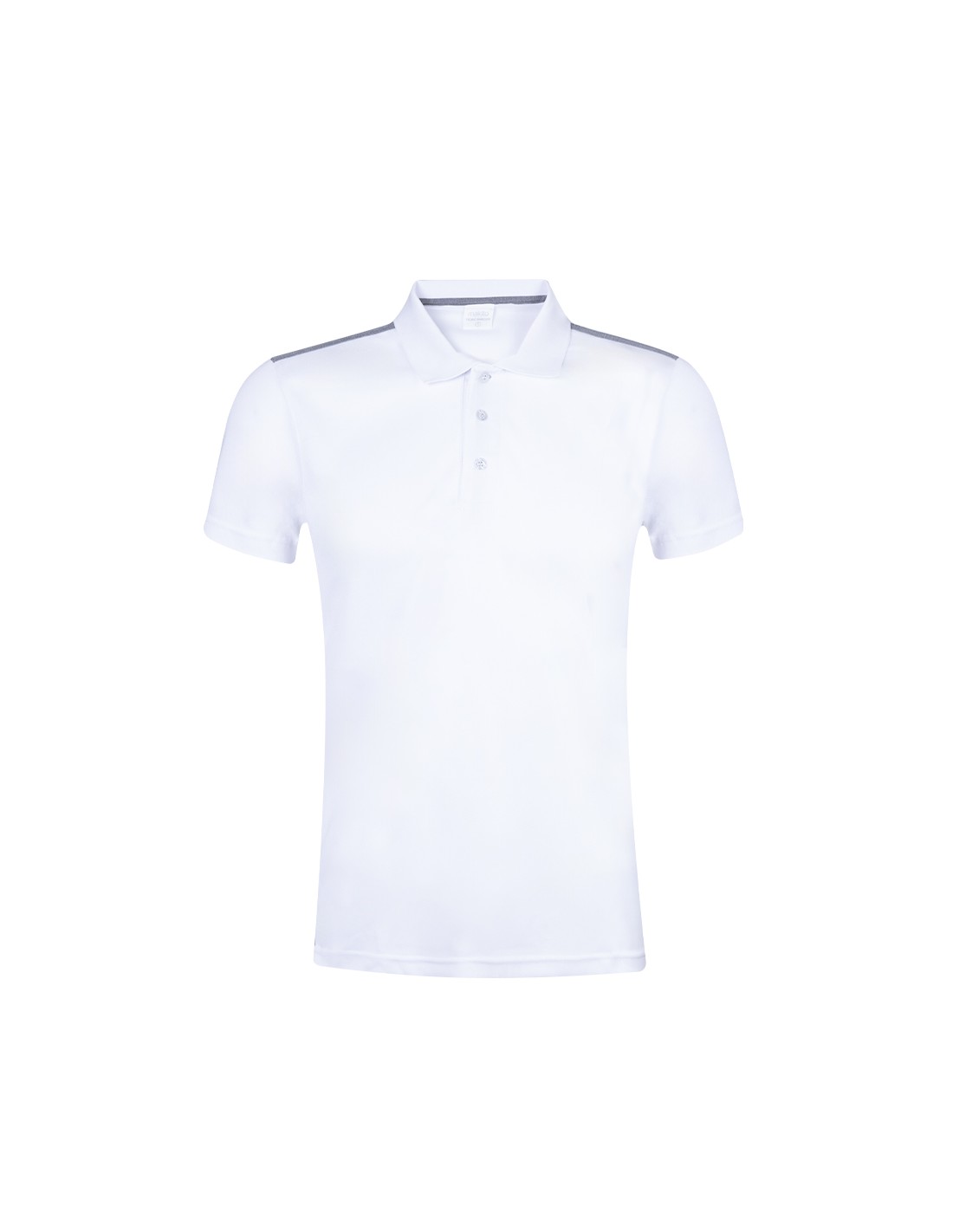 Polo técnico para adulto en poliéster transpirable de 180g/m2. De elegante diseño bicolor, en color blanco con contraste de detalles en gris. Disponible en tallas S, M, L, XL, XXL. Color blanco especialmente fabricado para marcaje en sublimación.