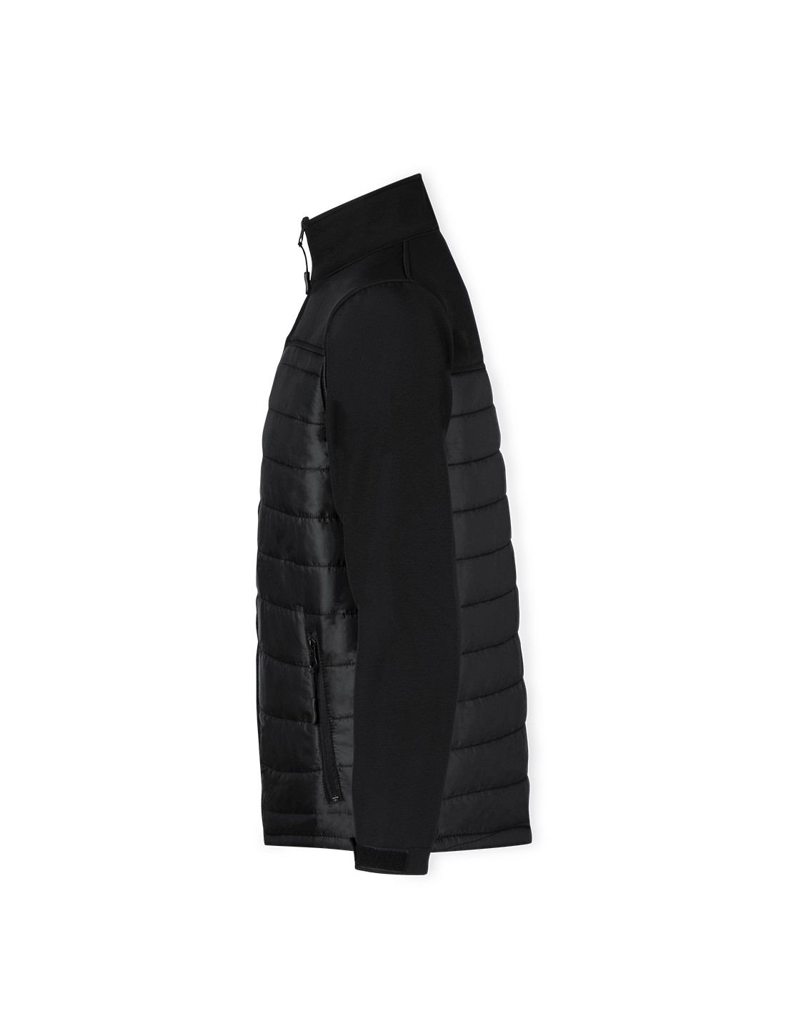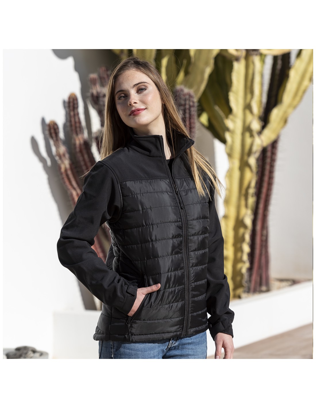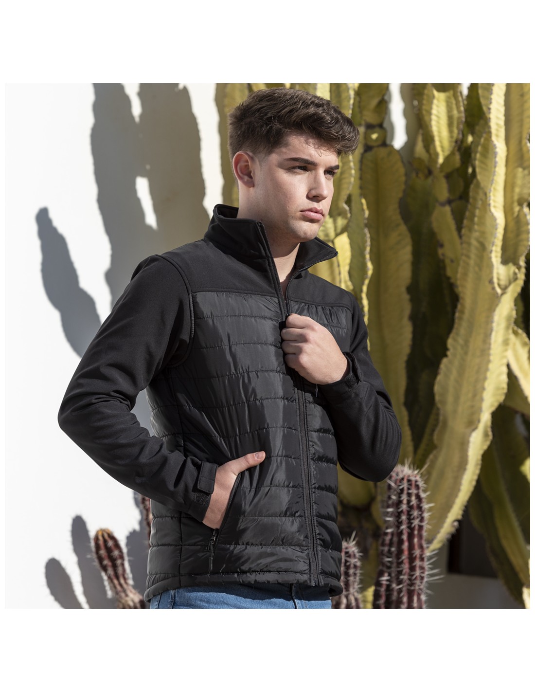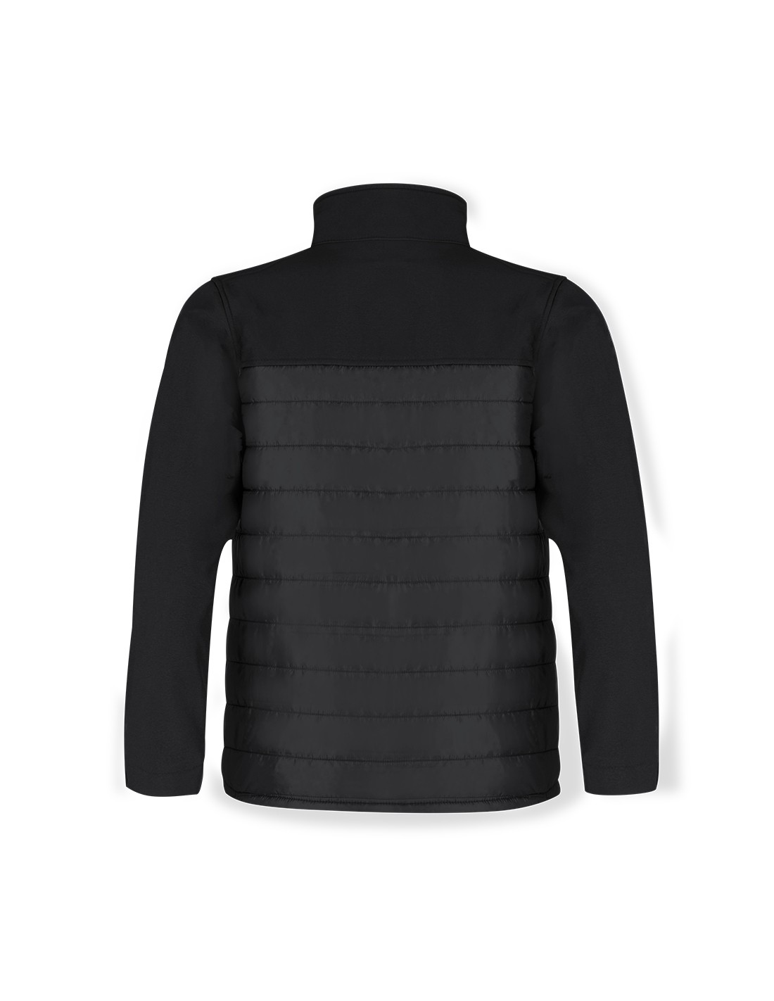 Chaqueta impermeable y transpirable en combinación de materiales soft shell y poliéster. De elegante construcción en color negro, con cierre de cremallera y bolsillos laterales de cremallera con tiradores para fácil apertura. Puños ajustables y disponible en tallas S, M, L, XL, XXL.