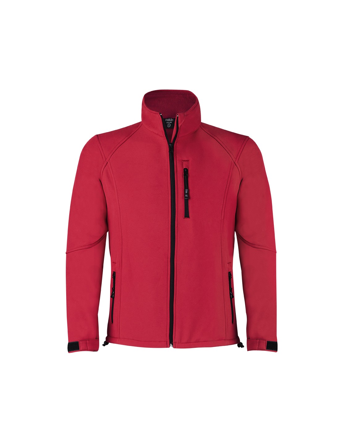 Chaqueta impermeable y transpirable en combinación de materiales soft shell y elastano de 300g/m2. De corte moderno, con cremallera central, bolsillos laterales y práctico bolsillo en pecho con cierres de cremallera y tiradores en elegante color negro, de cuello elevado. Mangas con cómodos puños ajustables en color a juego. Exterior en soft shell resistente al viento y al agua. Disponible en tallas S, M, L, XL, XXL.