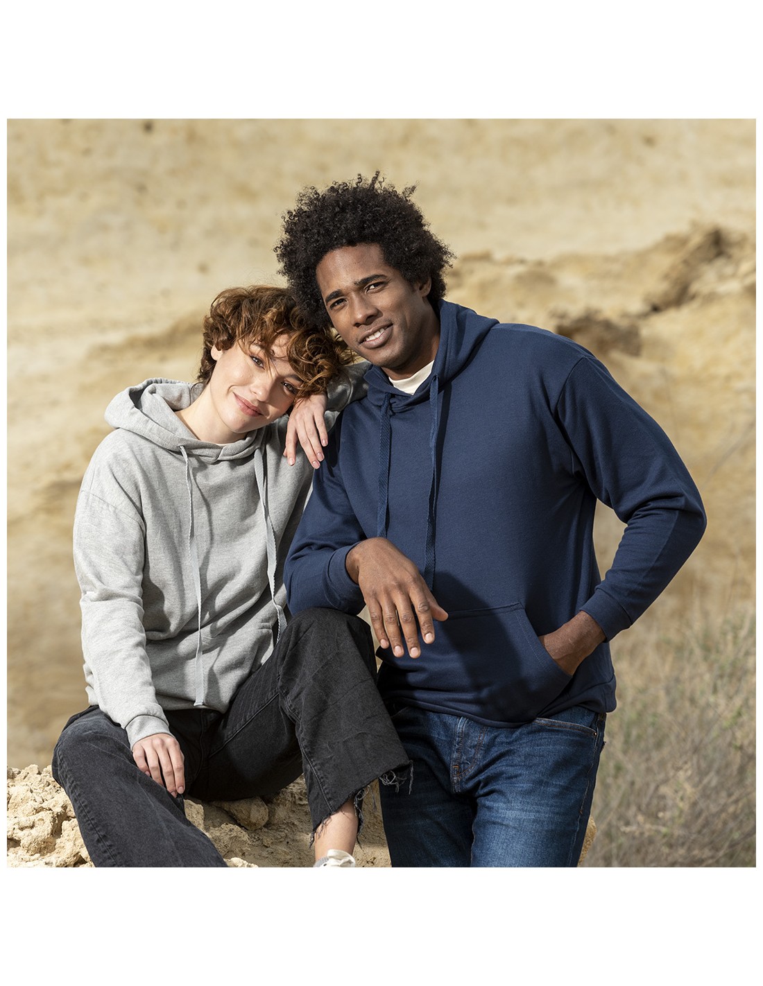 Sudadera para adulto unisex con capucha. Fabricada en combinación de materiales algodón orgánico peinado y poliéster RPET de 280gsm. Bolsillo canguro y capucha forrada de punto liso, con cordones a juego. Cuello, puños y cintura de punto canalé 2x1, hombros con costura. Con etiqueta distintiva eco. Disponible en variada gama de colores. Tallas XS, S, M, L, XL, XXL, 3XL.