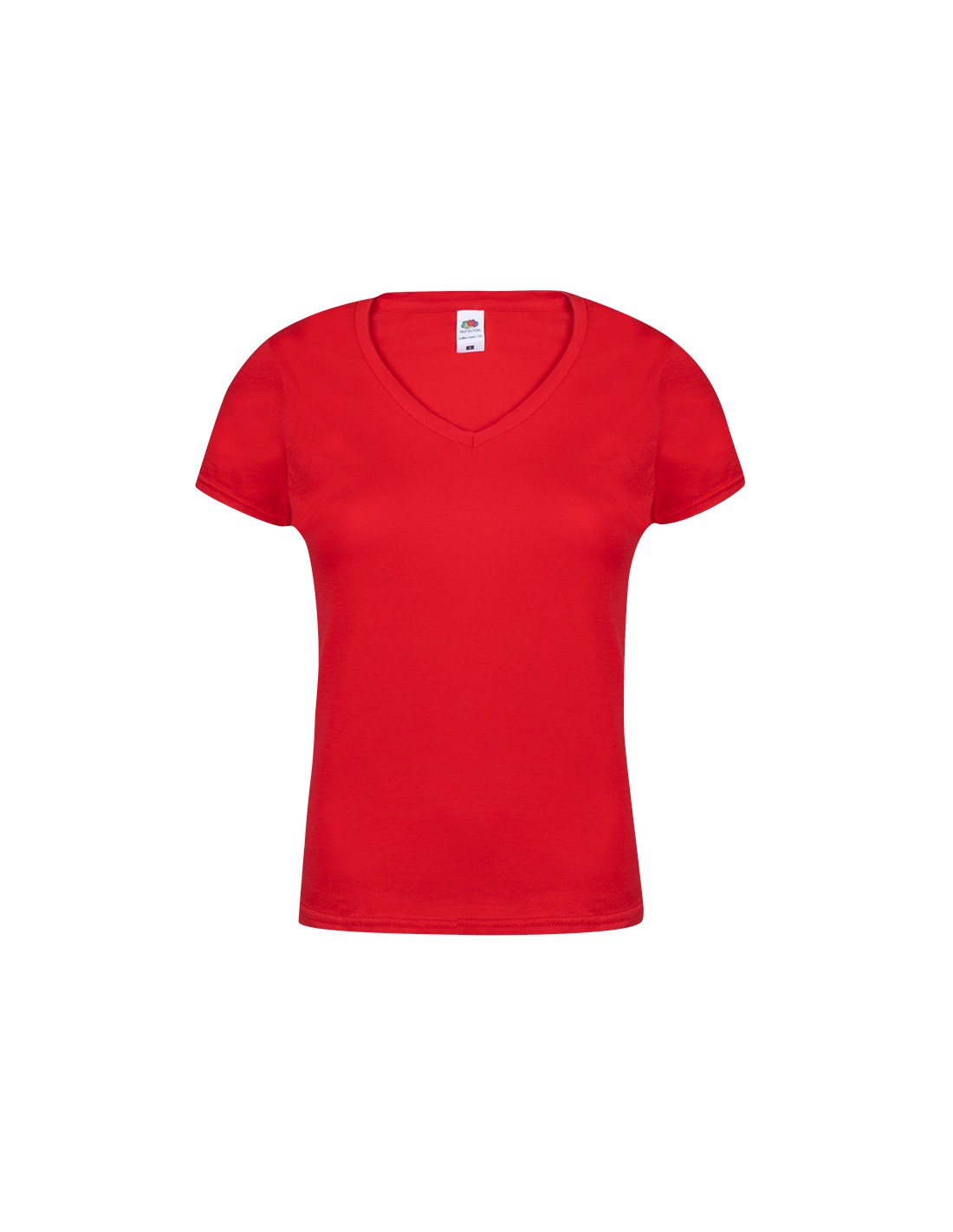 Camiseta para mujer color Iconic V-Neck de Fruit Of The Loom. Fabricada en material 100% algodón peinado Ring Spun de 150g/m2 hilado en anillo. De tacto suave y corte entallado, con costuras laterales diseñadas para un ajuste perfecto. Con cuello en pico estrecho de canalé 1x1 y tapeta a juego. Etiqueta fácilmente removible y disponible en variada gama de colores. Tallas XS, S, M, L, XL, XXL.