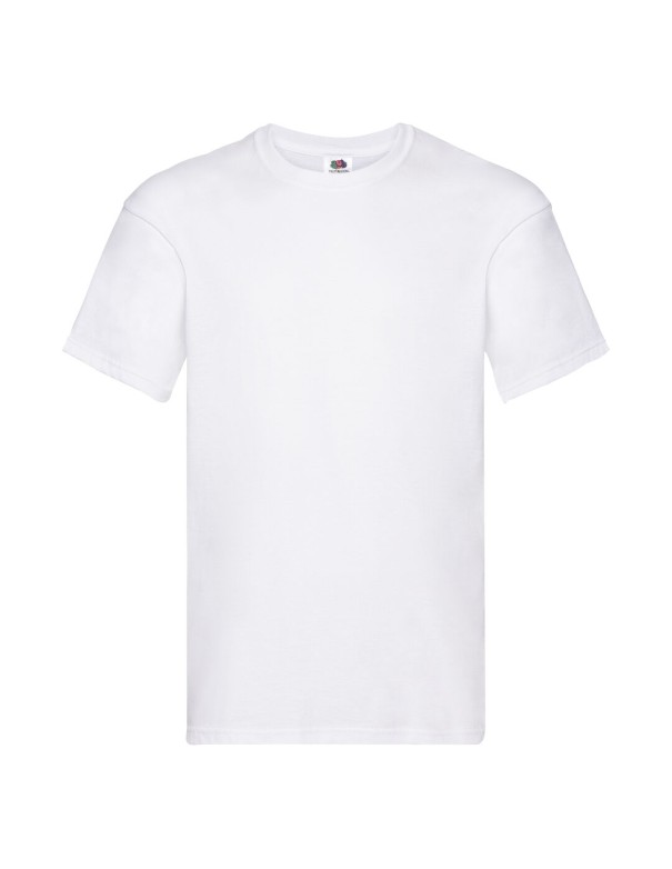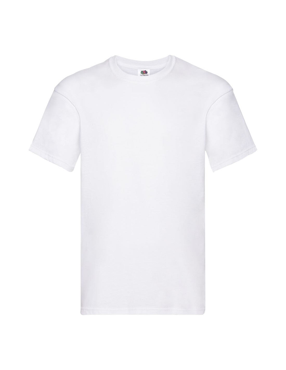 Camiseta para adulto blanca Original T de Fruit Of The Loom. Fabricada en material 100% algodón de 140g/m2. De tacto suave, con cuello redondo ribeteado y tapeta a juego. Con malla más cerrada para optimizar la calidad de impresión y disponible en tallas S, M, L, XL, XXL.
