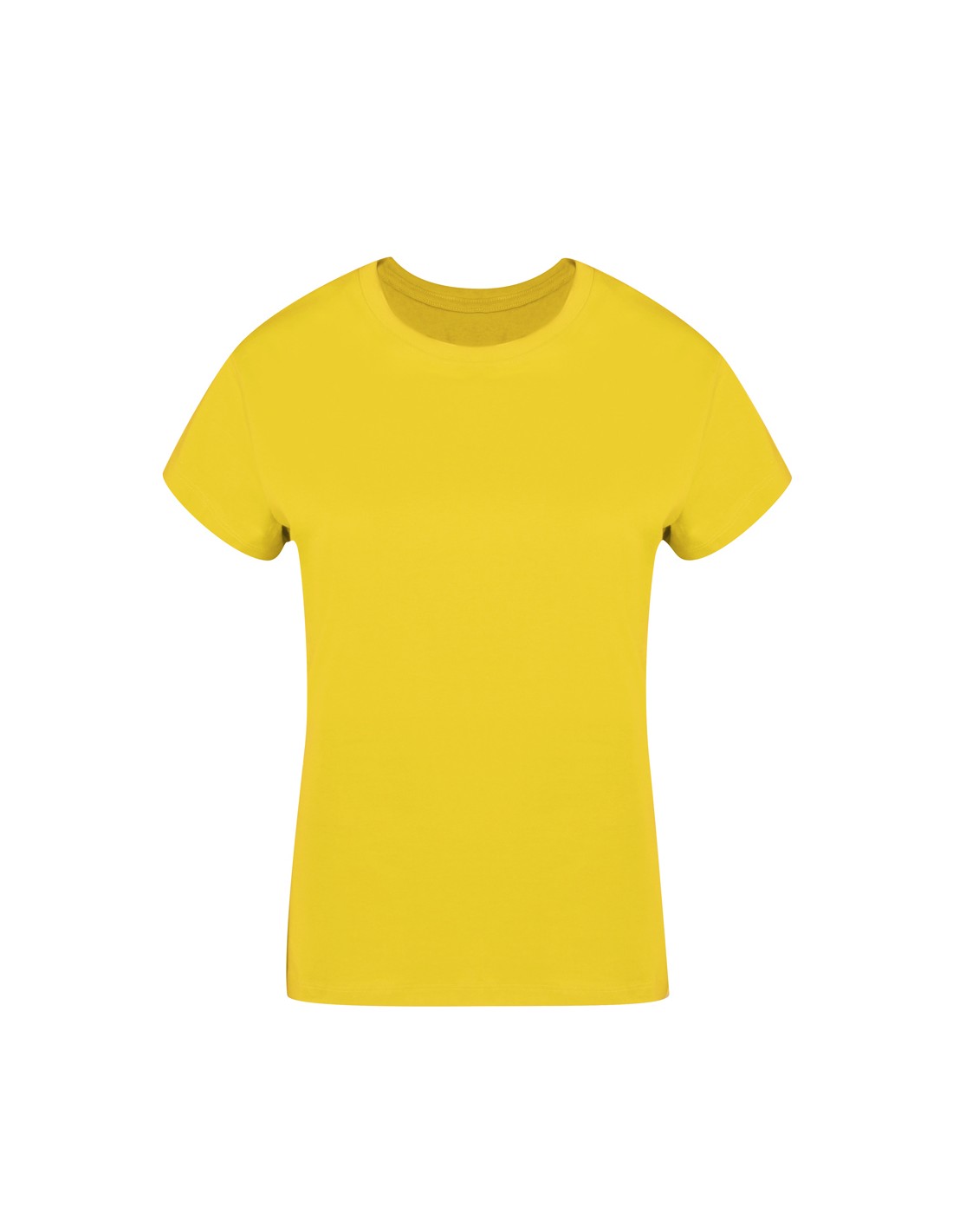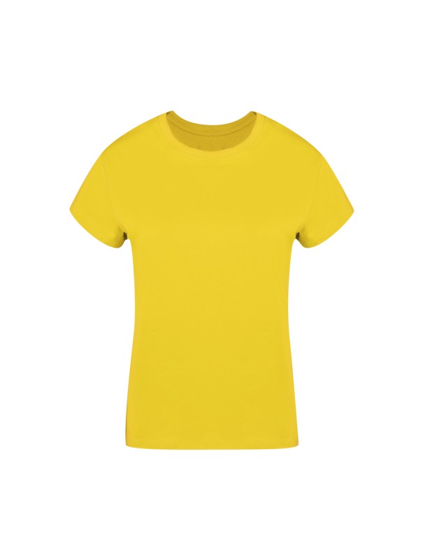 Camiseta de mujer. Confeccionada en 100% algodón peinado Ring Spun y estilo Single Jersey de 160g/m2. Tacto suave y corte moderno, con cosido lateral. Cuello redondo estrecho en canalé 2x2. Doble costura en dobladillo y mangas, para una mayor durabilidad y resistencia al uso intensivo. Disponible en amplia gama de colores de moda y en tallas S, M, L, XL y XXL.