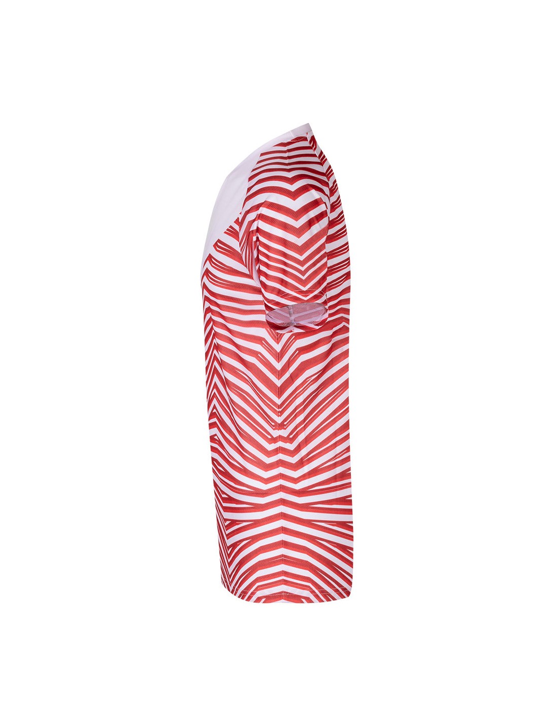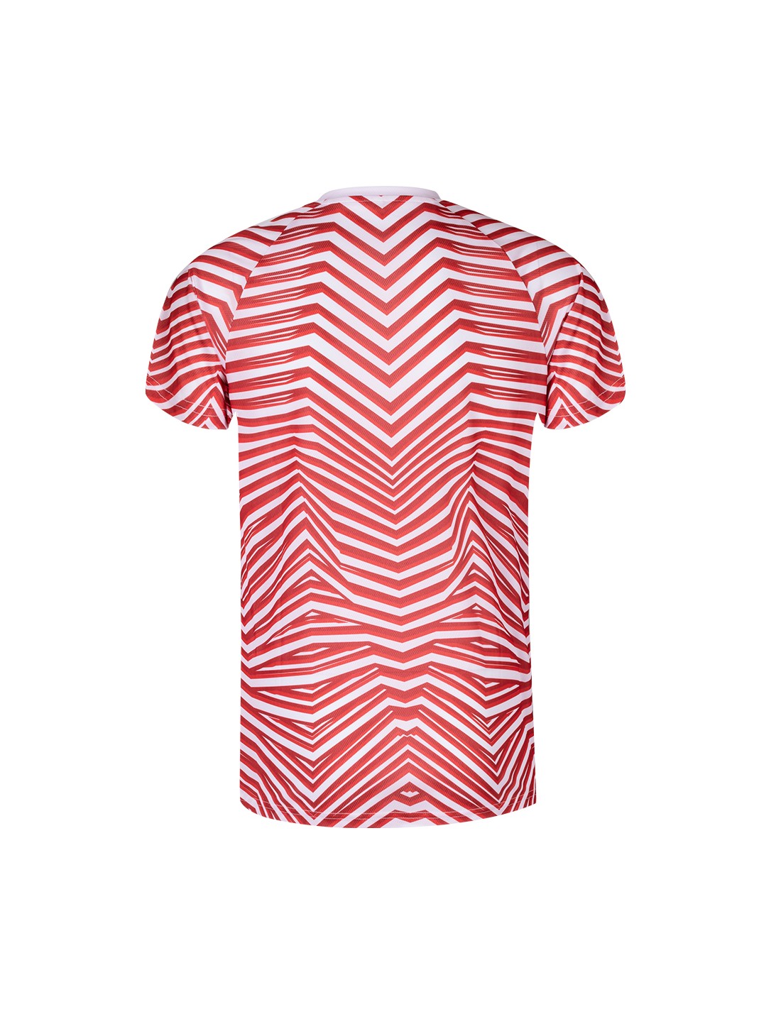 Camiseta técnica para adulto en poliéster de 135g/m2, transpirable y de suave tacto. Con innovador estampado a rayas y una zona lisa en el pecho para personalización. Con manga ranglán y cuello redondo. Disponible en variada gama de colores y en tallas XS, S, M, L, XL, XXL.