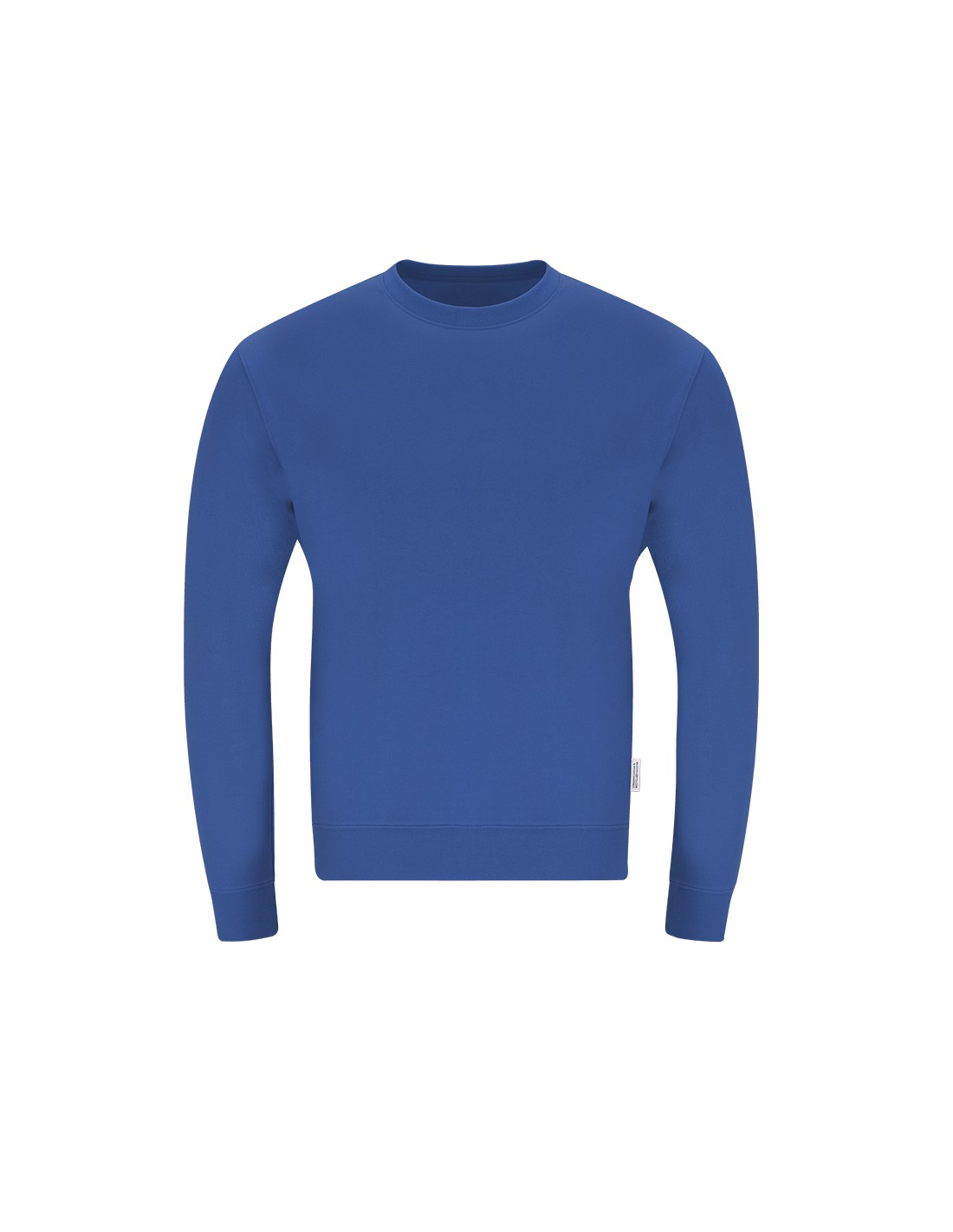 Sudadera Unisex de Algodón Orgánico y Poliéster Reciclado, en suave felpa perchada de 280 g/m2. Con cuello, puños y cintura de punto canalé de elastano. Cubrecosturas en el interior del cuello, con etiqueta distintiva eco.