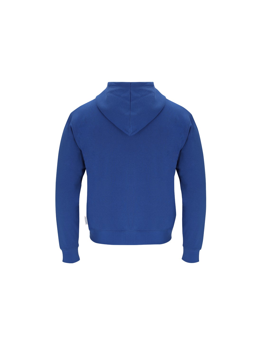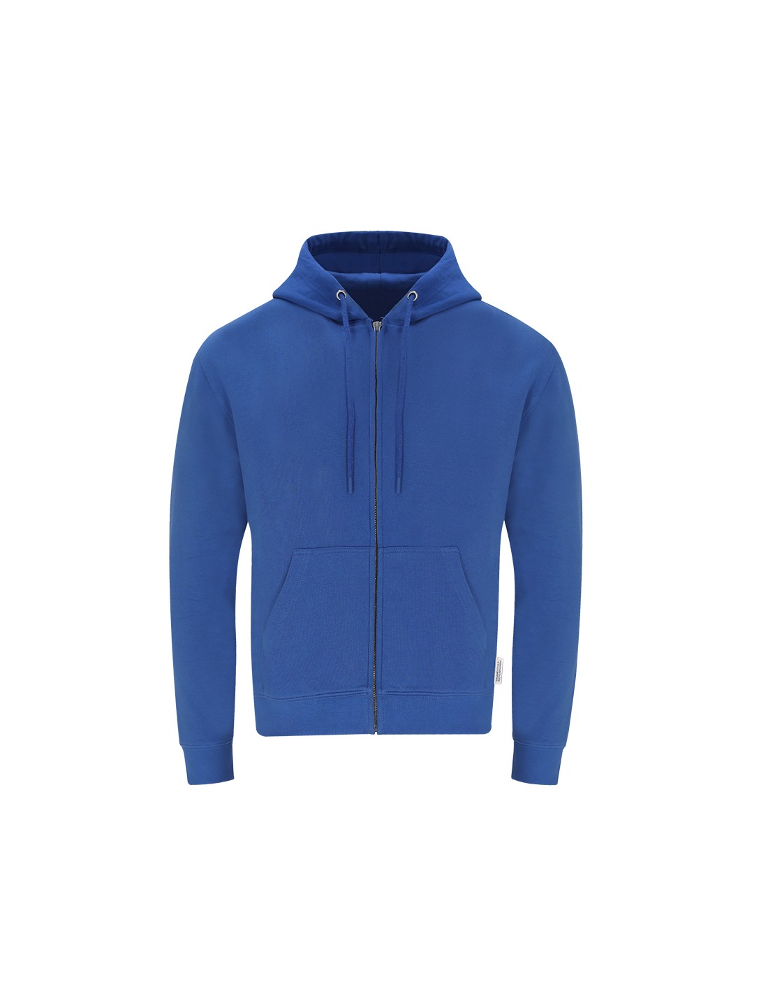 Sudadera Unisex con capucha y cremallera de Algodón Orgánico y Poliéster Reciclado, en suave felpa perchada de 280 g/m2. Con capucha forrada de doble capa, cordones redondos ajustables -con topes a juego- y ojales metálicos. Puños y cintura de punto canalé de elastano y bolsillo frontal tipo canguro. Apertura de cremallera oculta metálica, con cubrecosturas reforzado en cuello. Incluye etiqueta distintiva eco.