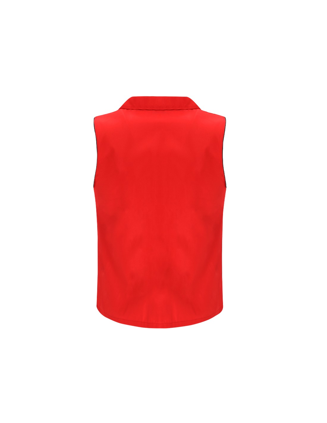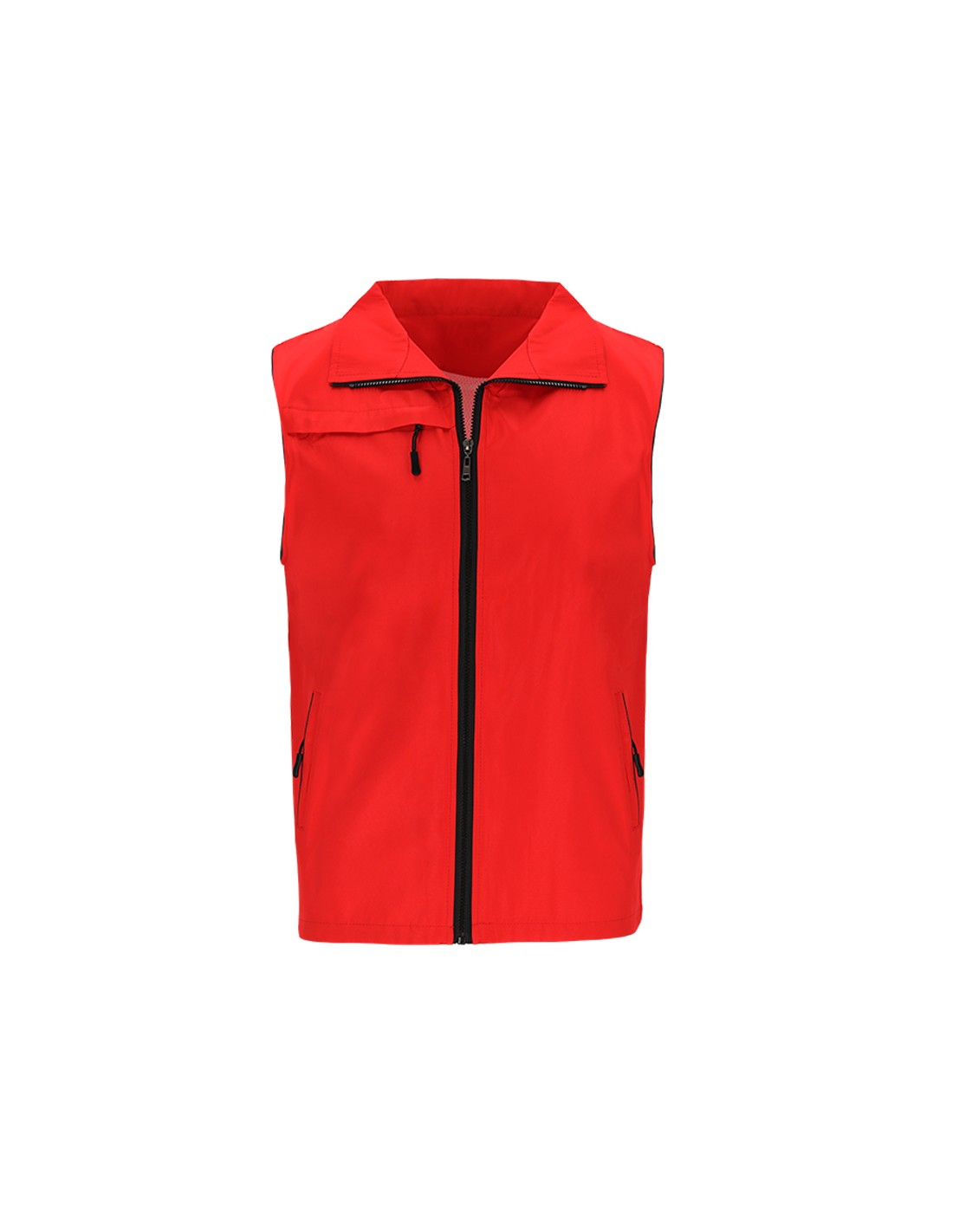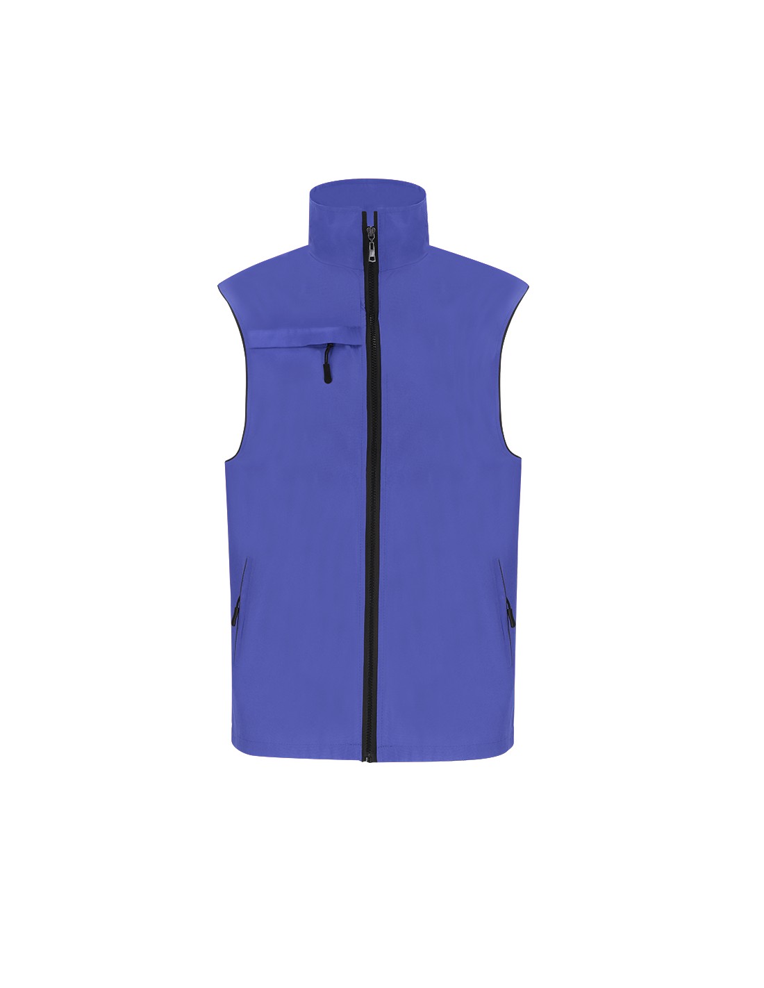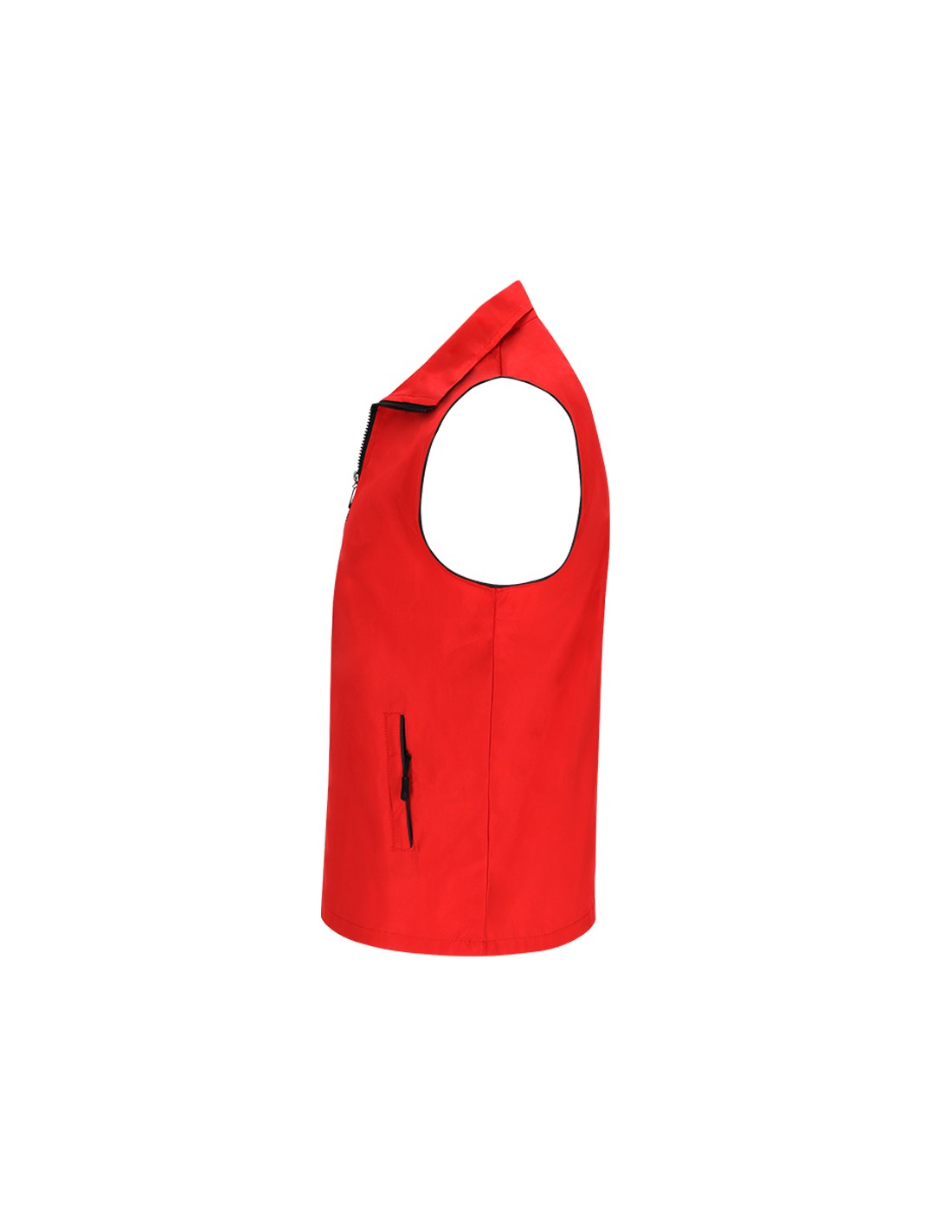 Chaleco Unisex de tejido ligero y transpirable con interior confeccionado en tejido de malla blanco. Con cremallera frontal negra y tirador plateado. Incluye un bolsillo exterior en el pecho derecho y dos bolsillos laterales con cremalleras y tiradores en color negro. Cuenta con media luna en el interior del cuello.
