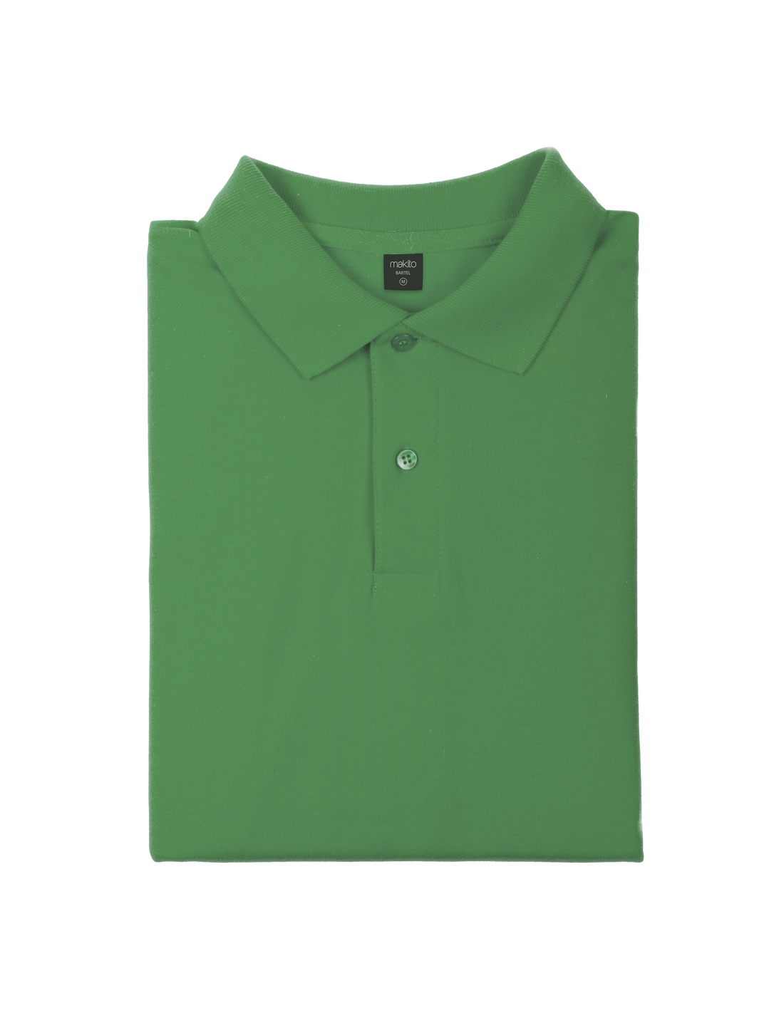 Polo de piqué en material 100% algodón. Con dos botones de cierre a juego y disponible en variada gama de vivos colores. Tallas S, M, L, XL, XXL