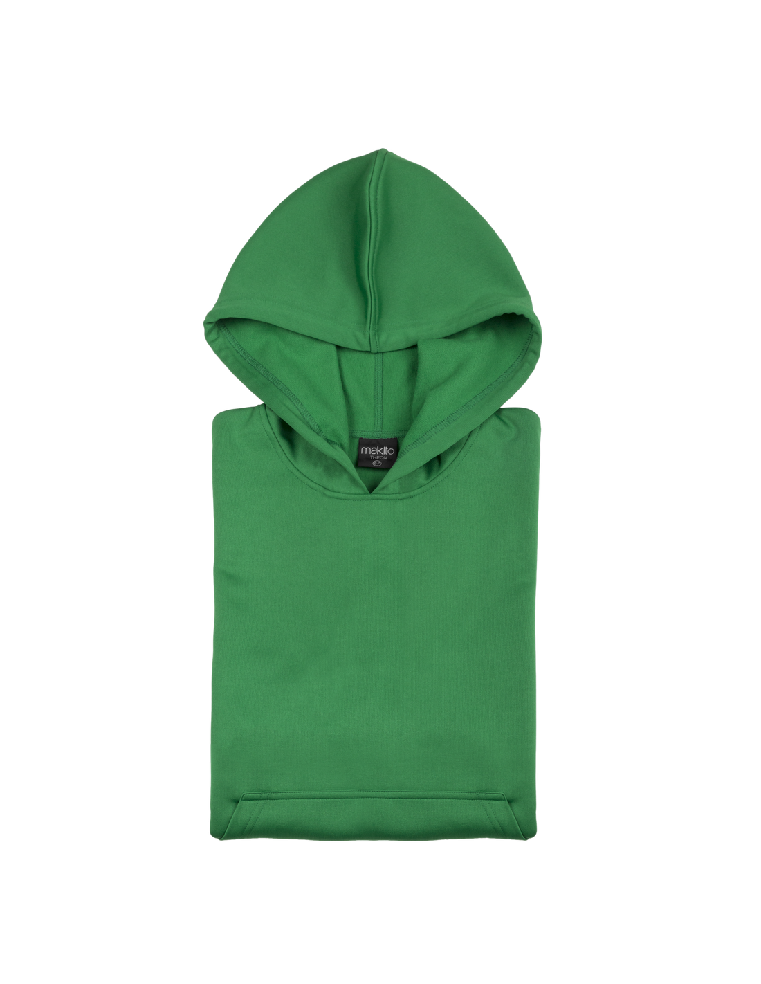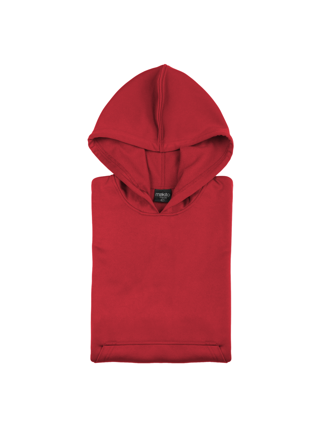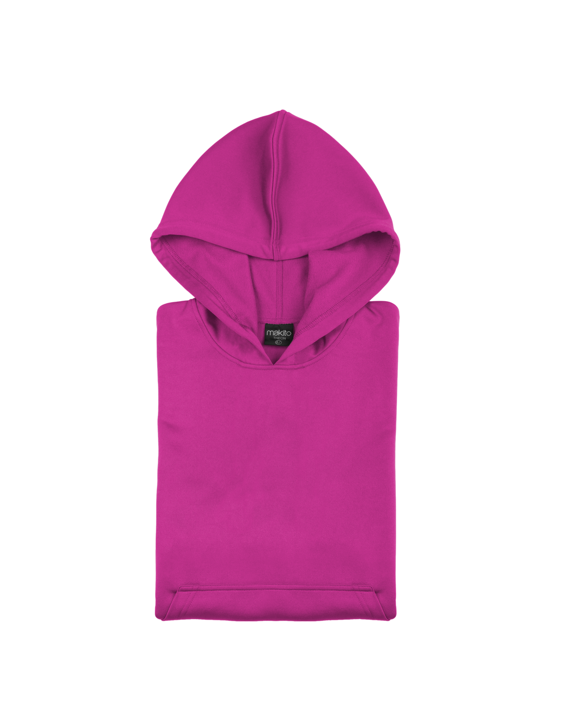 Sudadera técnica para niño unisex. Con capucha, cintas de ajuste, bolsillo tapete frontal y en material 100% poliéster de 265g/m2. Disponible en variada gama de vivos colores. Tallas 4-5, 6-8, 10-12.