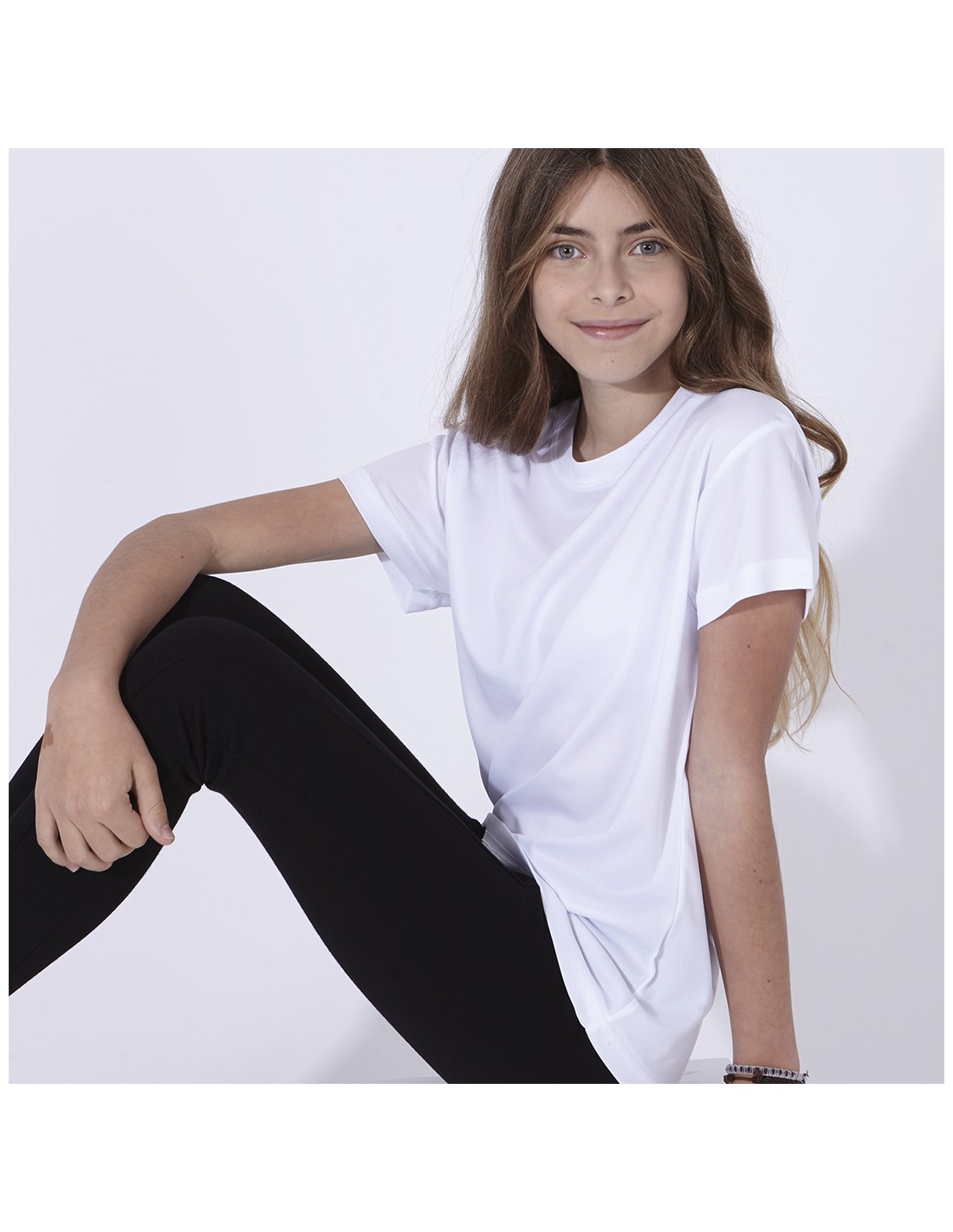 Camiseta para niño en material 100% poliéster transpirable de 140g/m2 con textura de algodón. Especialmente diseñada para marcaje en sublimación y disponible en tallas 4-5, 6-8, 10-12.