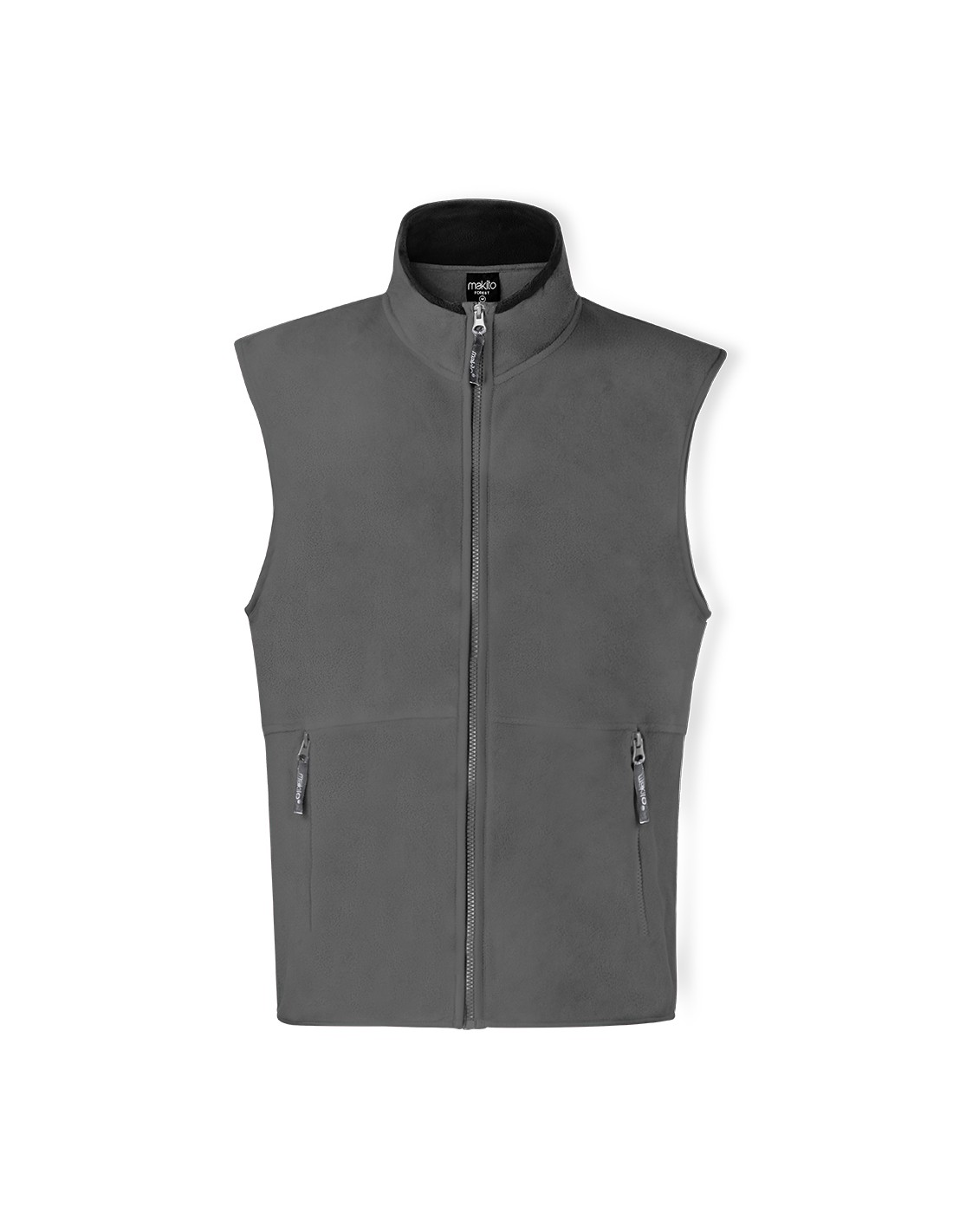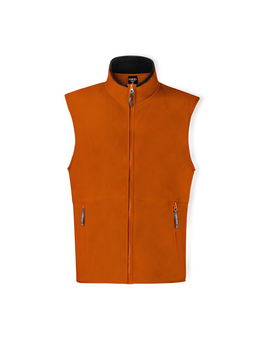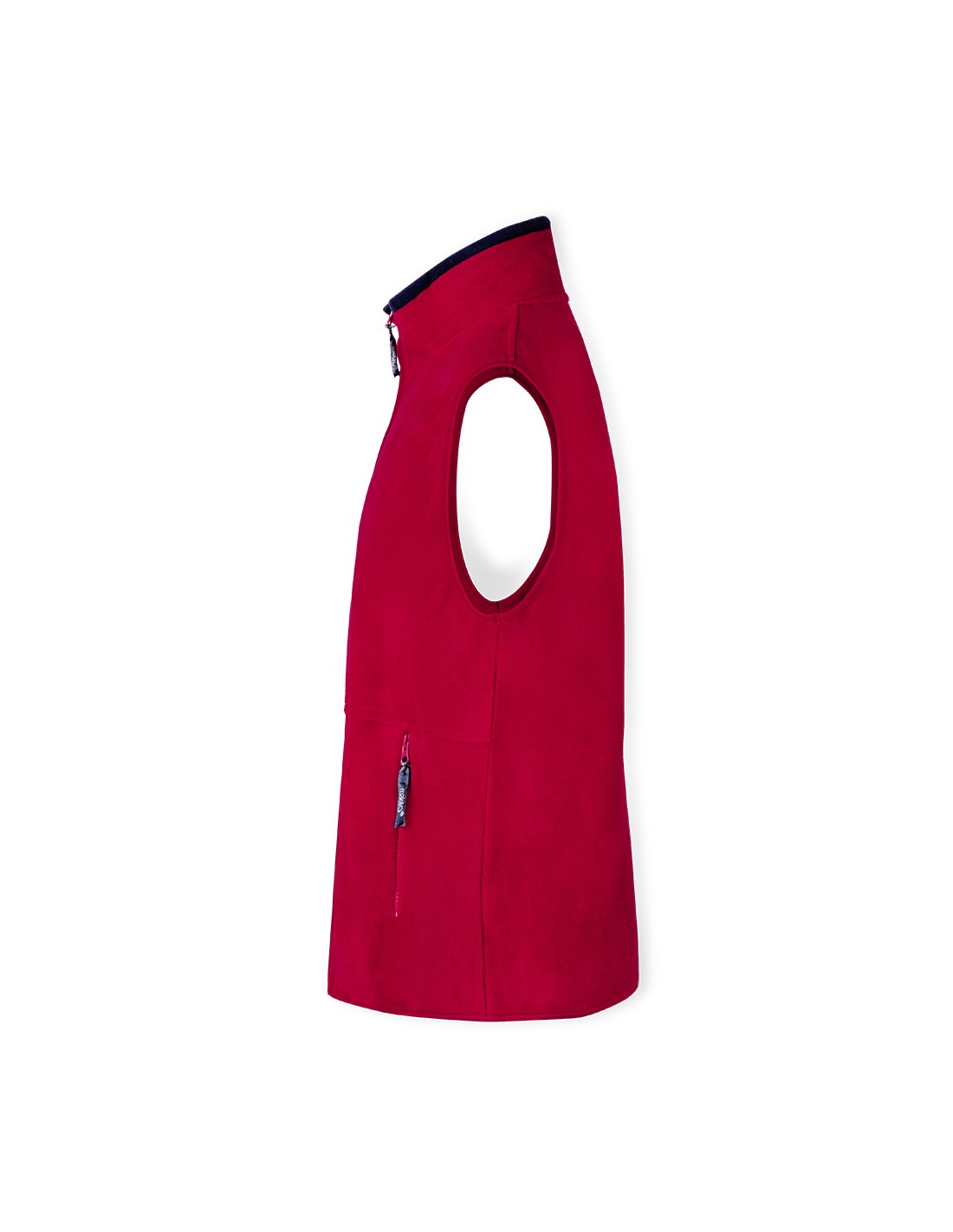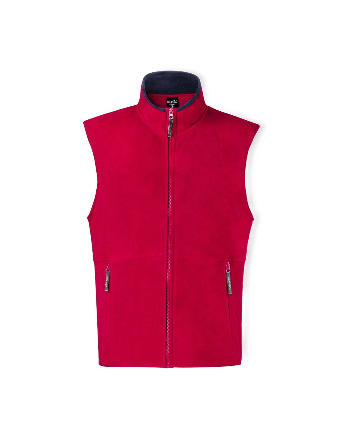Chaleco en cálido y suave polar fleece de 280g/m2 con tratamiento anti-pilling. Con cuello de interior en color, cierre de cremallera con cinta en tirador, bolsillos laterales de cremallera y cintura elástica. Disponible en tallas M, L, XL, XXL.