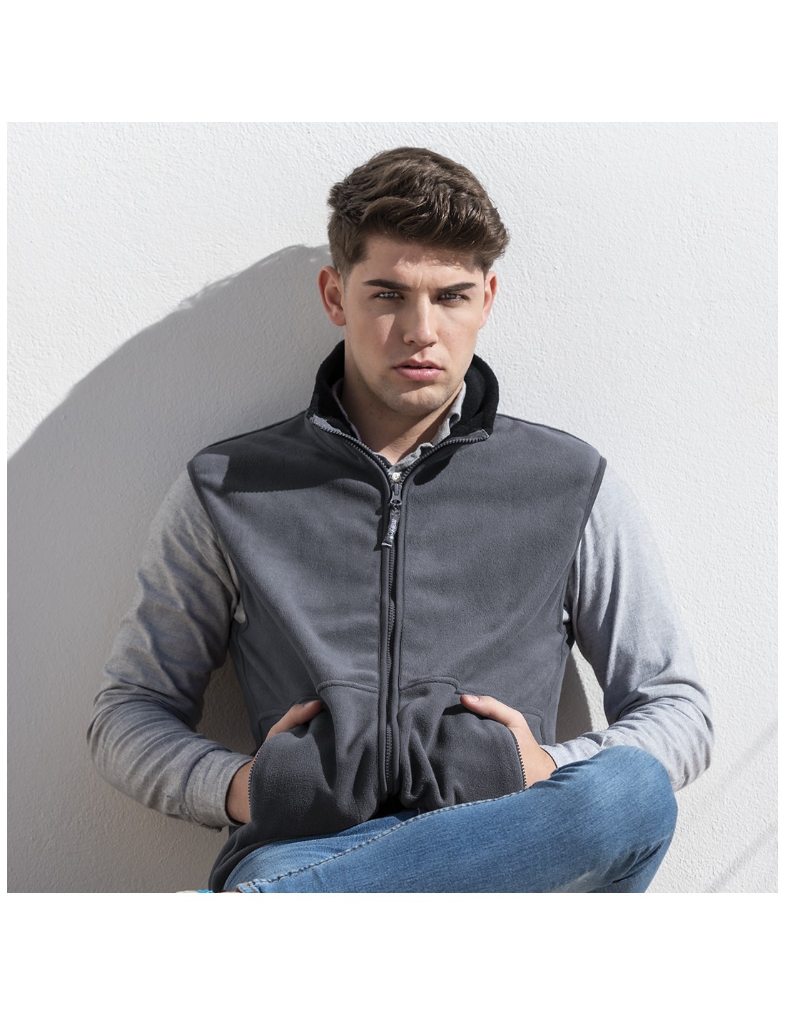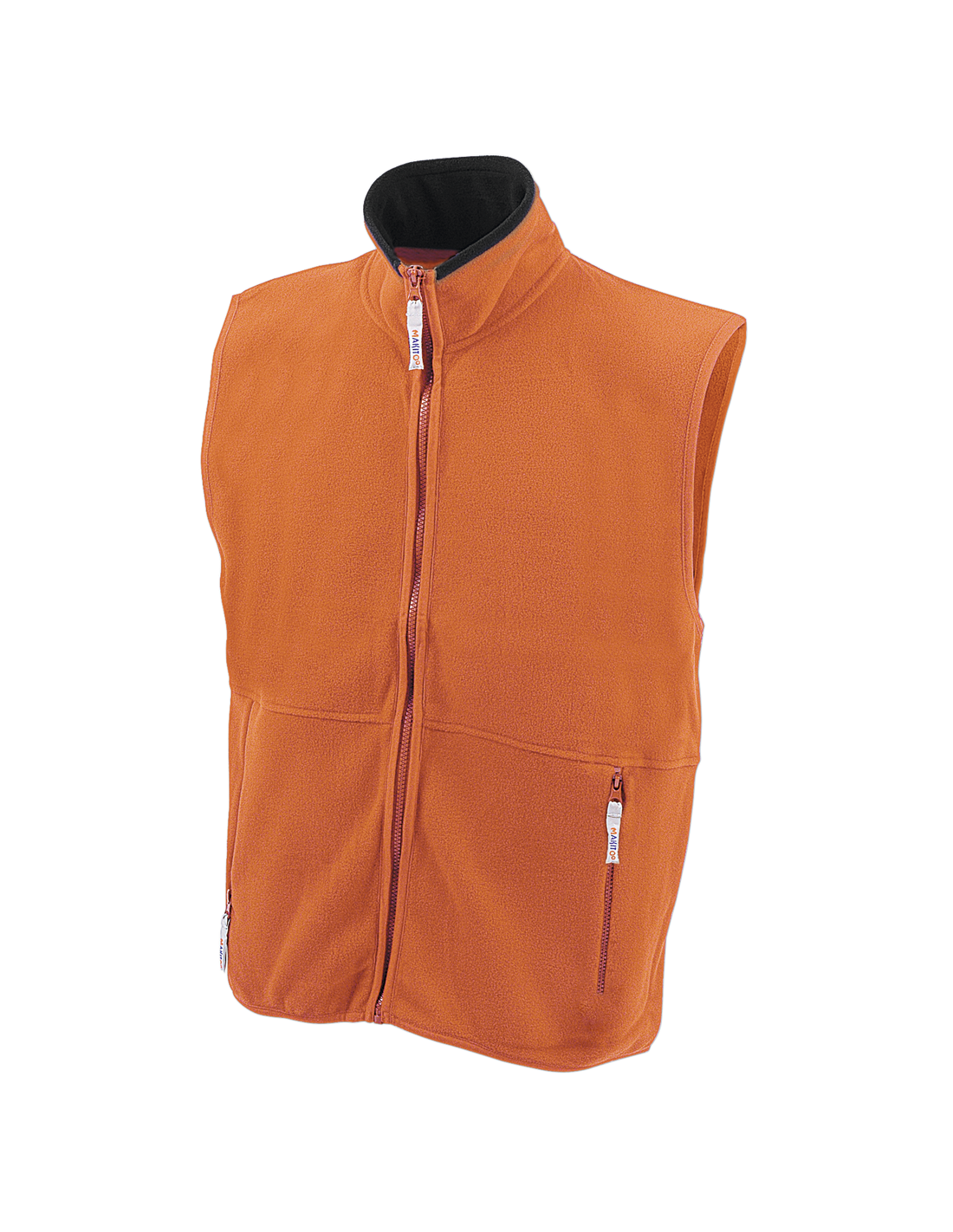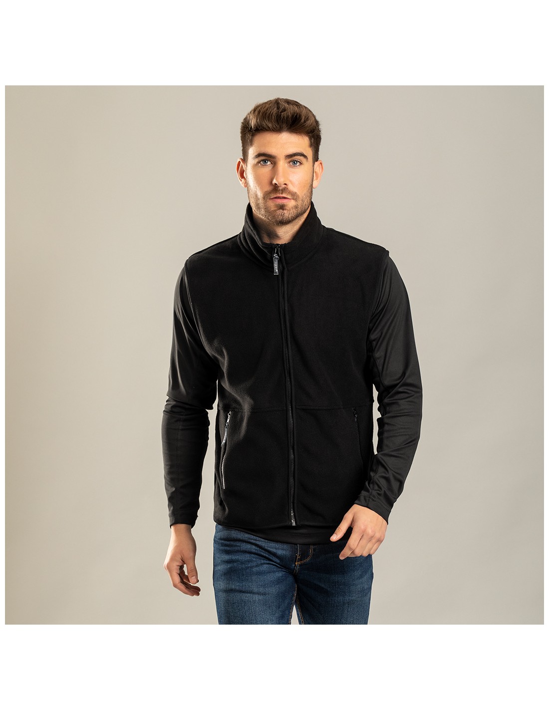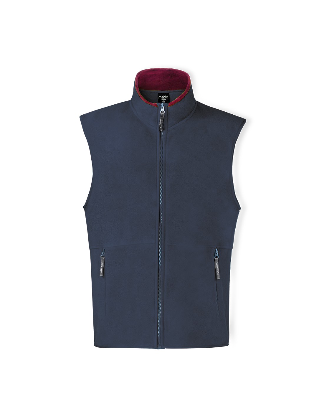 Chaleco en cálido y suave polar fleece de 280g/m2 con tratamiento anti-pilling. Con cuello de interior en color, cierre de cremallera con cinta en tirador, bolsillos laterales de cremallera y cintura elástica. Disponible en tallas M, L, XL, XXL.