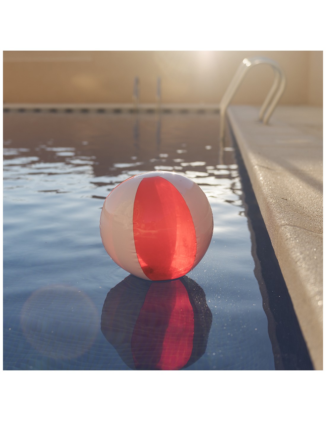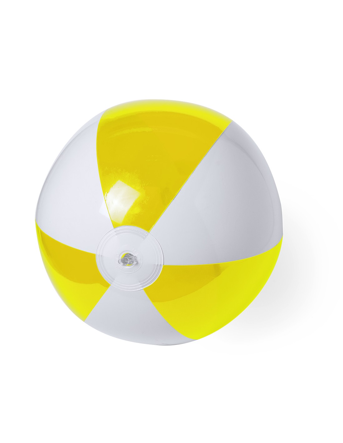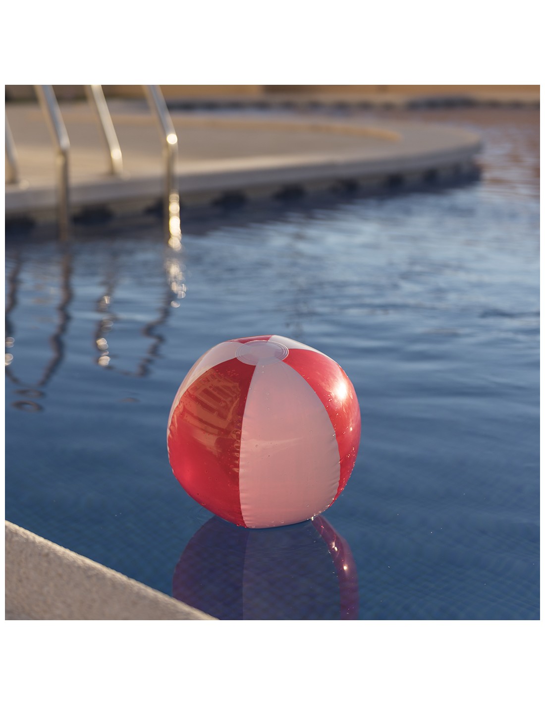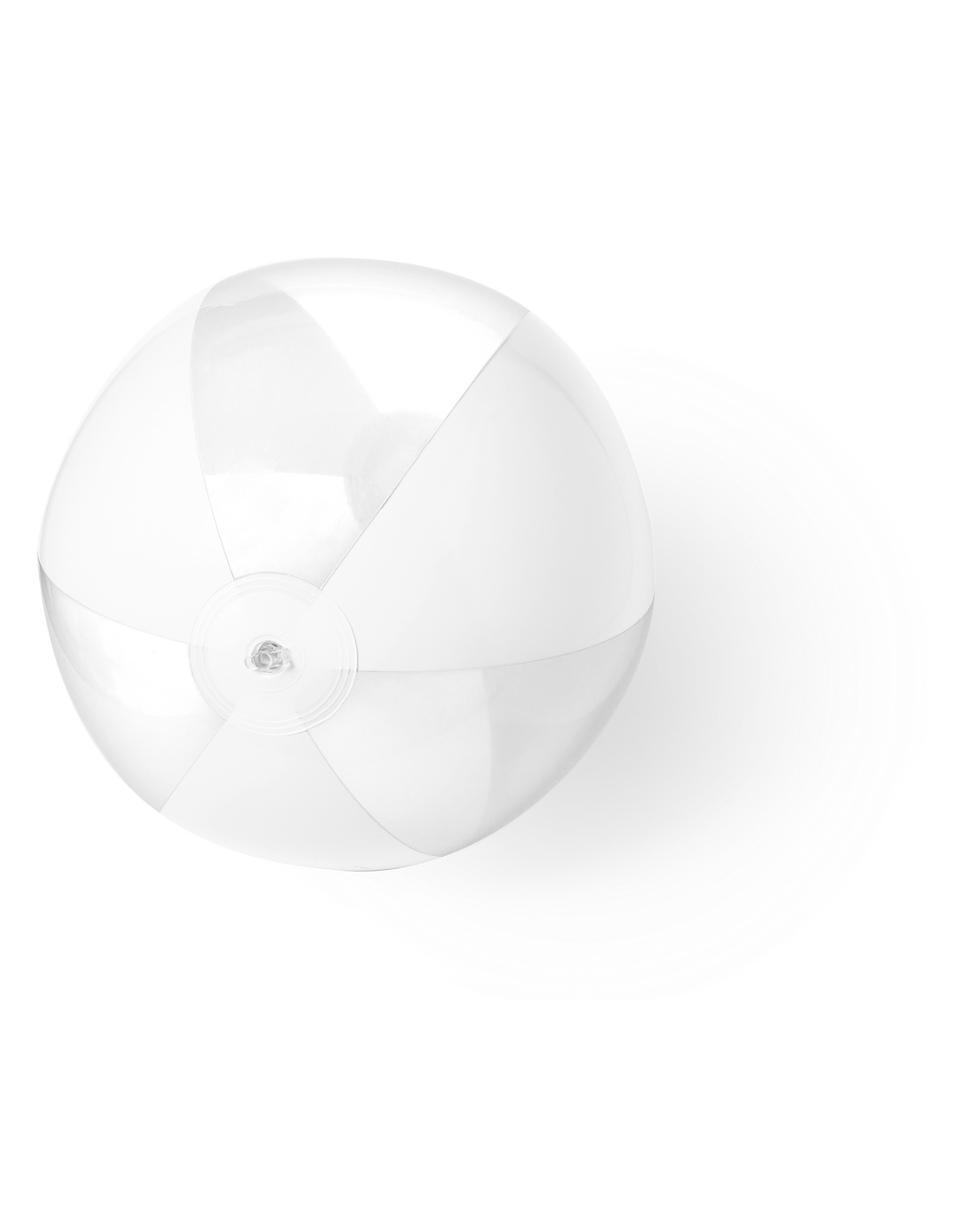 Balón inflable de PVC con diseño bicolor en combinación de paneles blancos y transparentes en vivos colores.