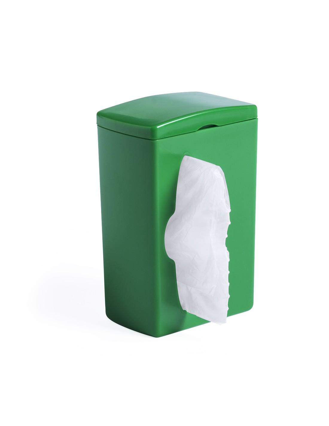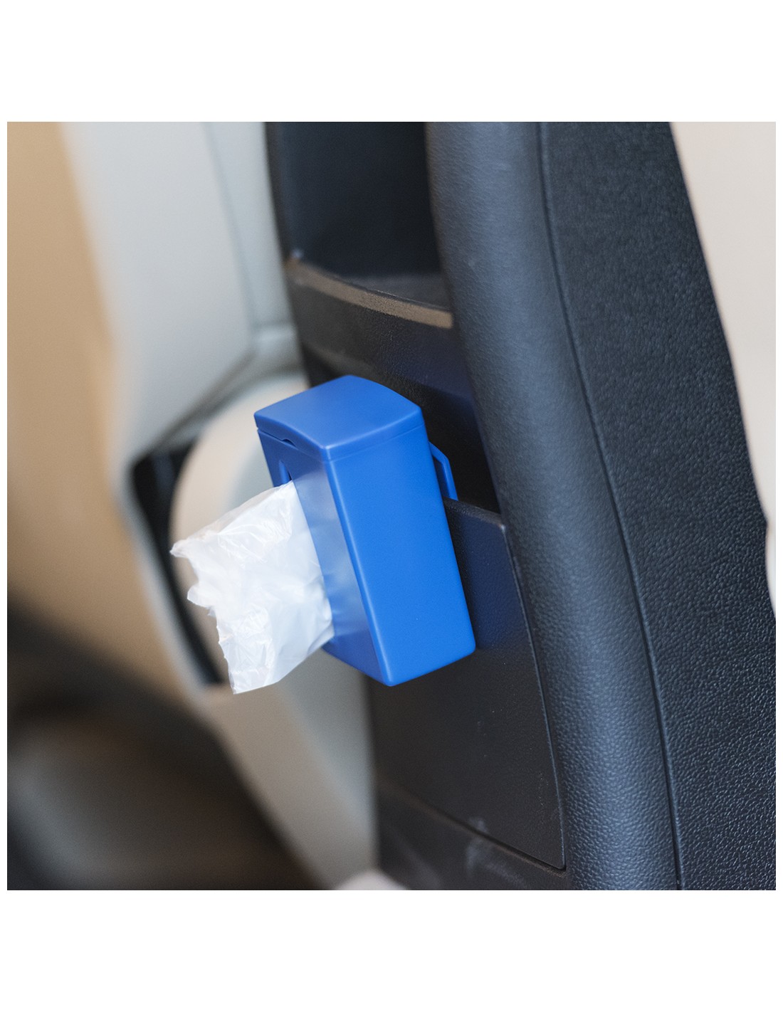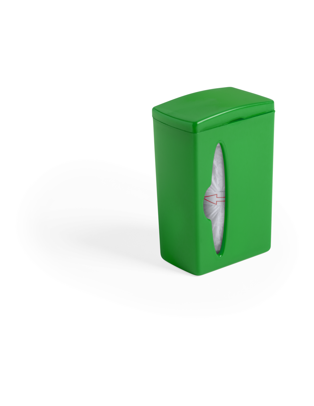 Dispensador de bolsas con resistente cuerpo en vivos colores y clip para ajuste. Incluye 15 bolsas.