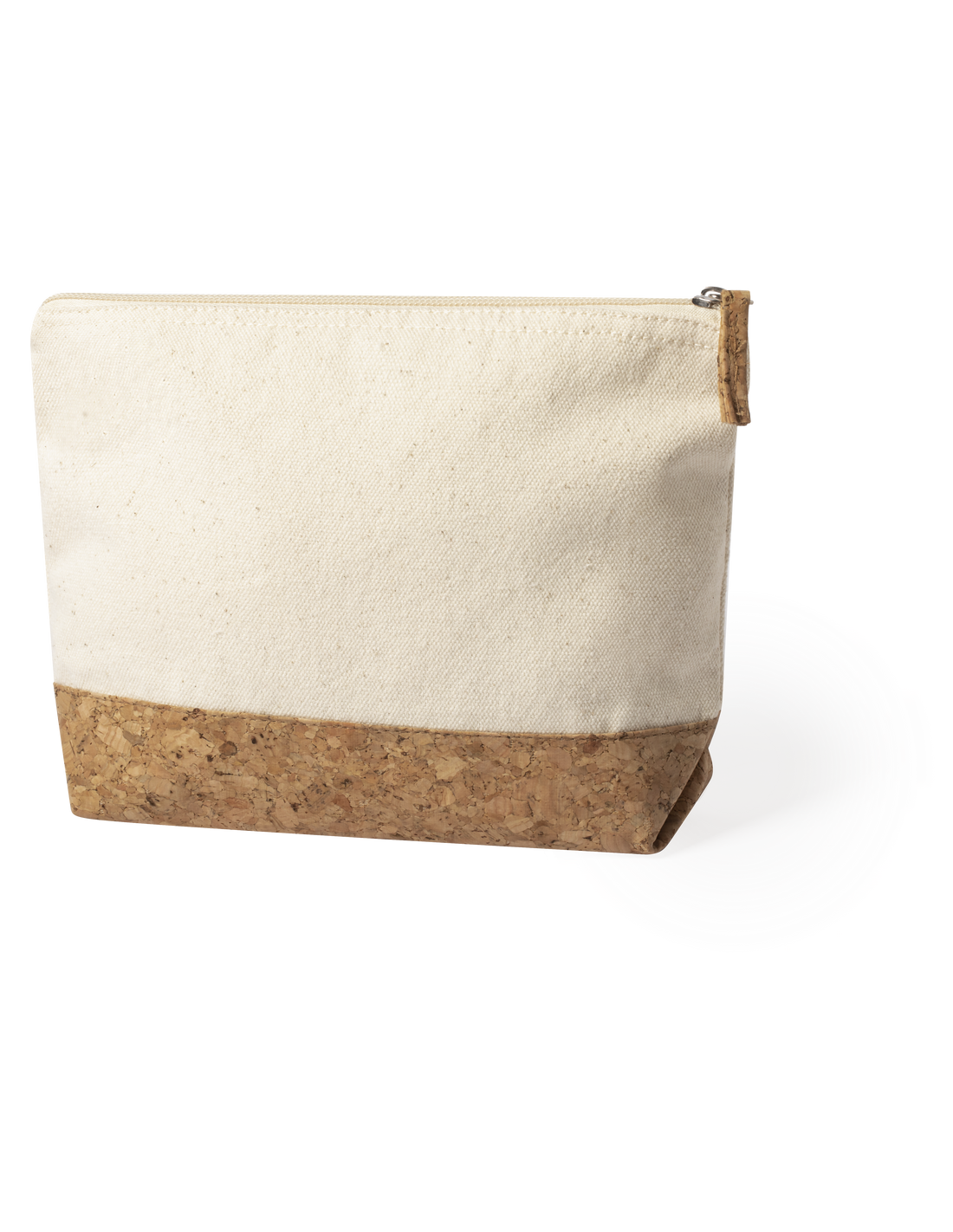 Neceser de línea nature en combinación de corcho natural y algodón crudo. Con cierre de cremallera y tirador en corcho a juego.