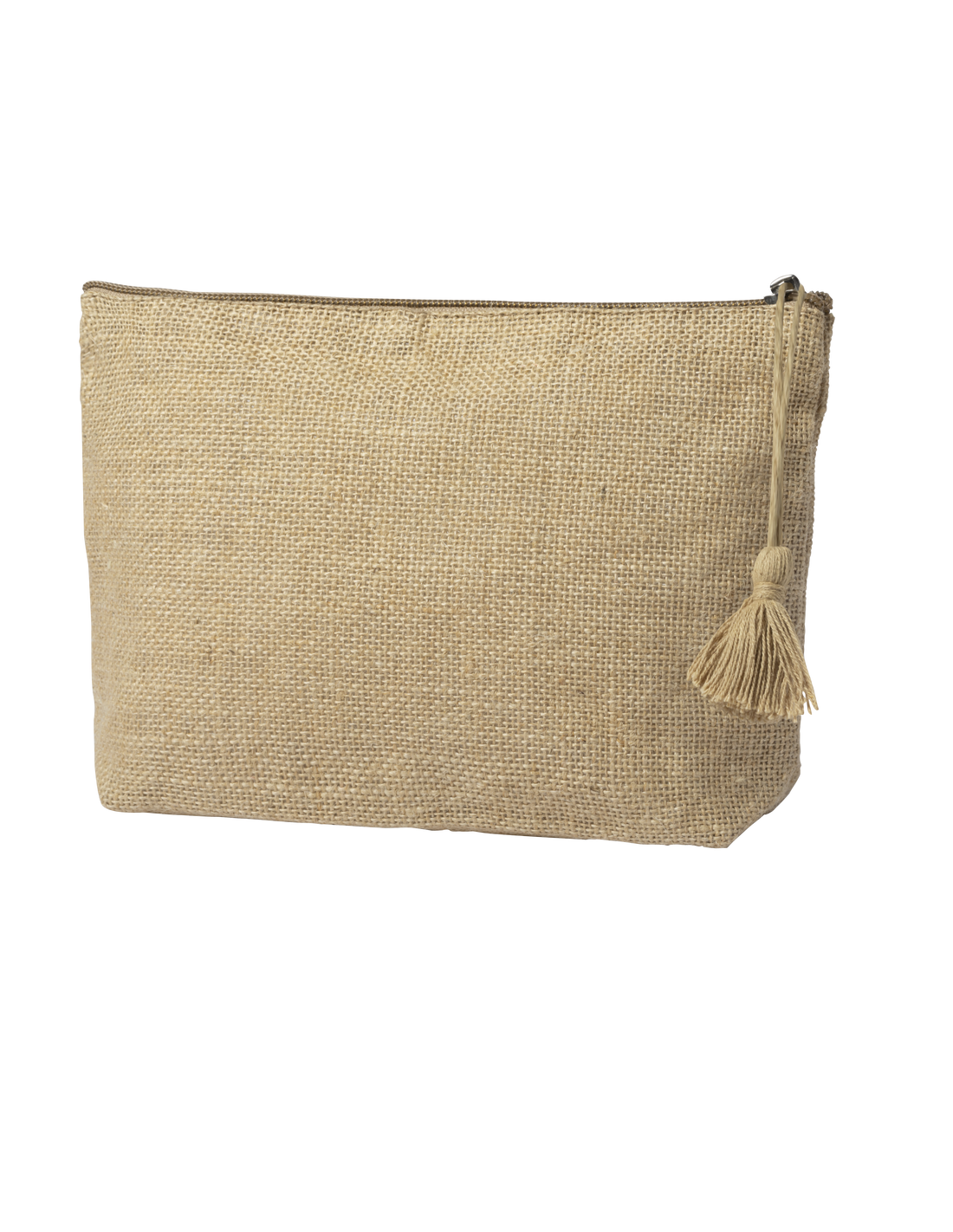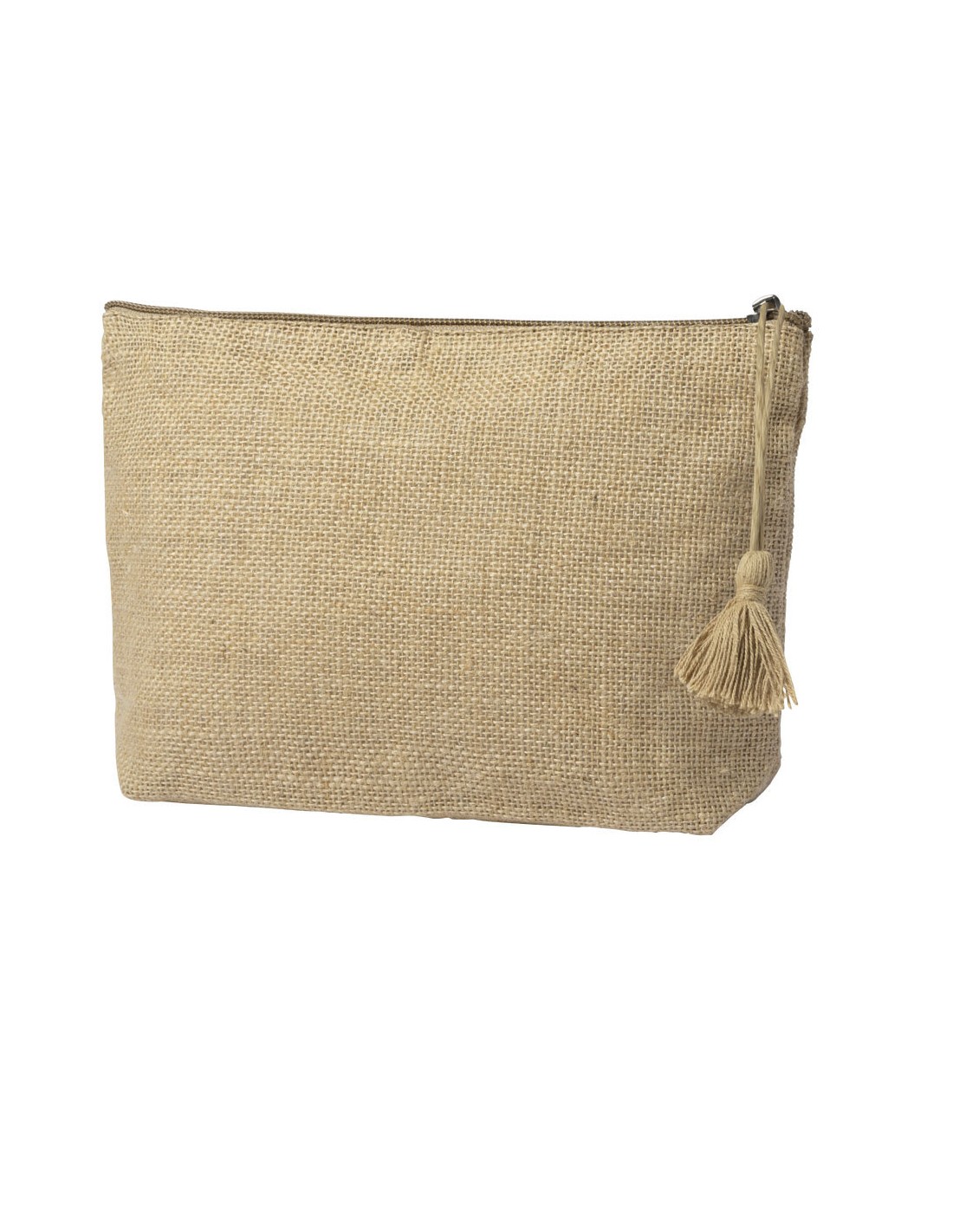 Neceser de línea nature en yute laminado, con cierre de cremallera y tirador súper cuqui en algodón.