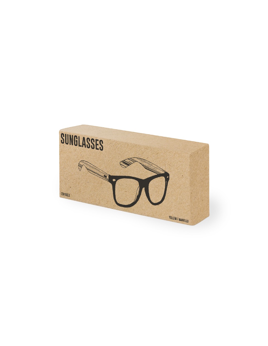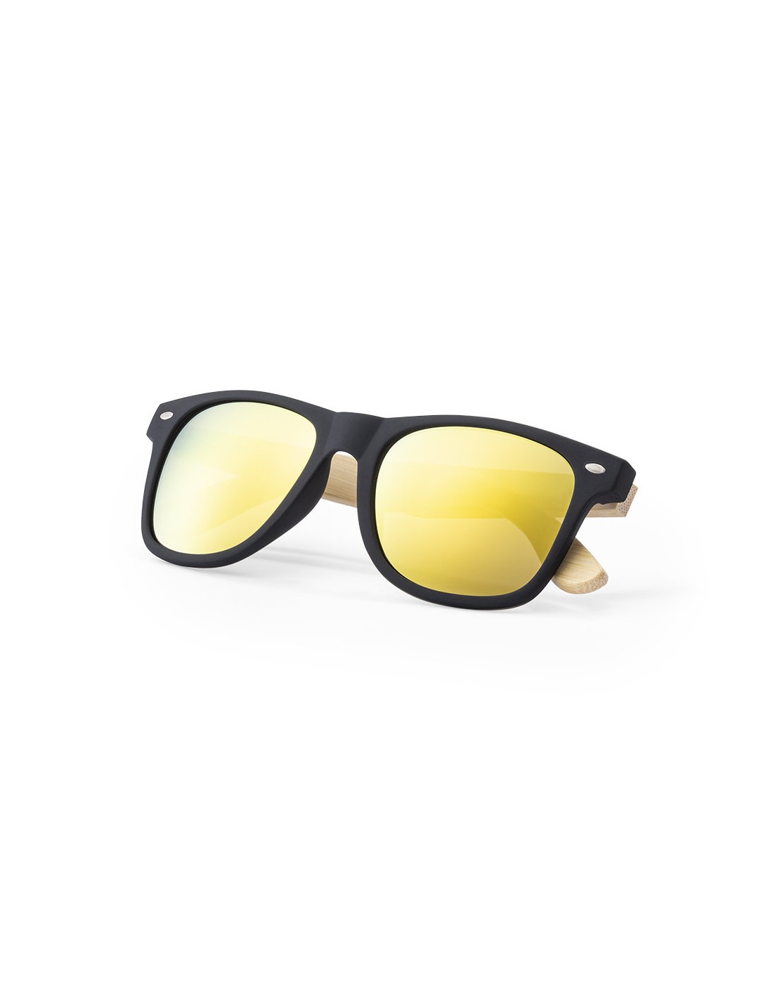 Gafas de sol de línea nature con protección UV400. Montura negra en resistente material PC y patillas en bambú. Lentes AC (acetato de celulosa) de acabado espejo, disponibles en variada gama de colores. Presentada en atractiva caja de diseño eco.