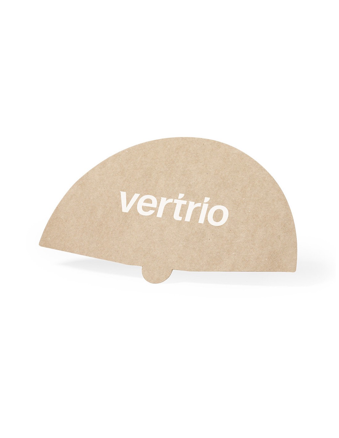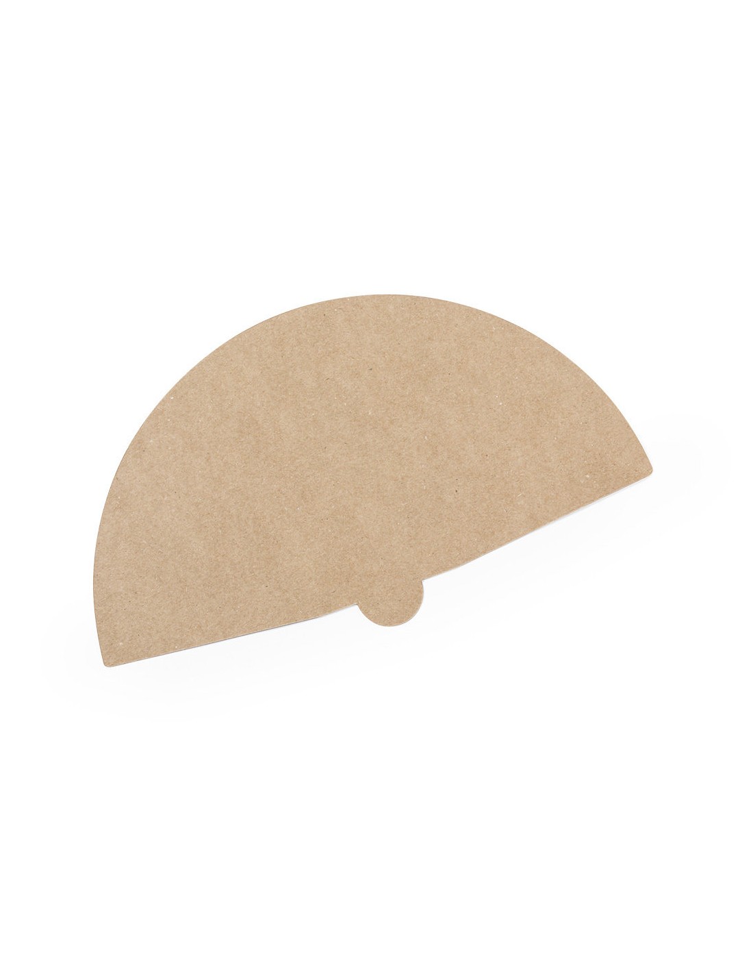 Abanico de línea nature fabricado en resistente cartón reciclado de 430g/m2, con amplia superficie de marcaje y en tono natural.