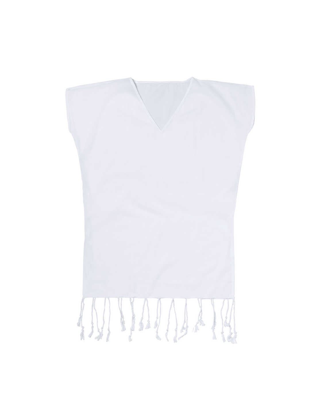 Kaftán de suave tacto y terminación con flecos. Talla única para adulto y fabricado en material 100% algodón.