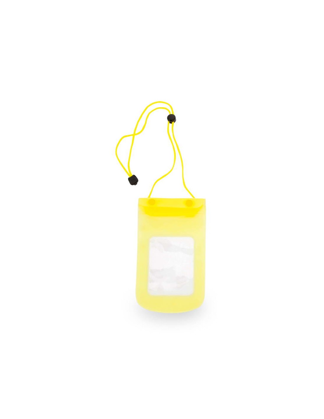 Práctico portatodo impermeable en PVC de acabado translúcido con ventana frontal transparente. Con función táctil y cierre estanco. Solapa con cierre de corchete a juego y cinta de transporte a juego con accesorio de ajuste.