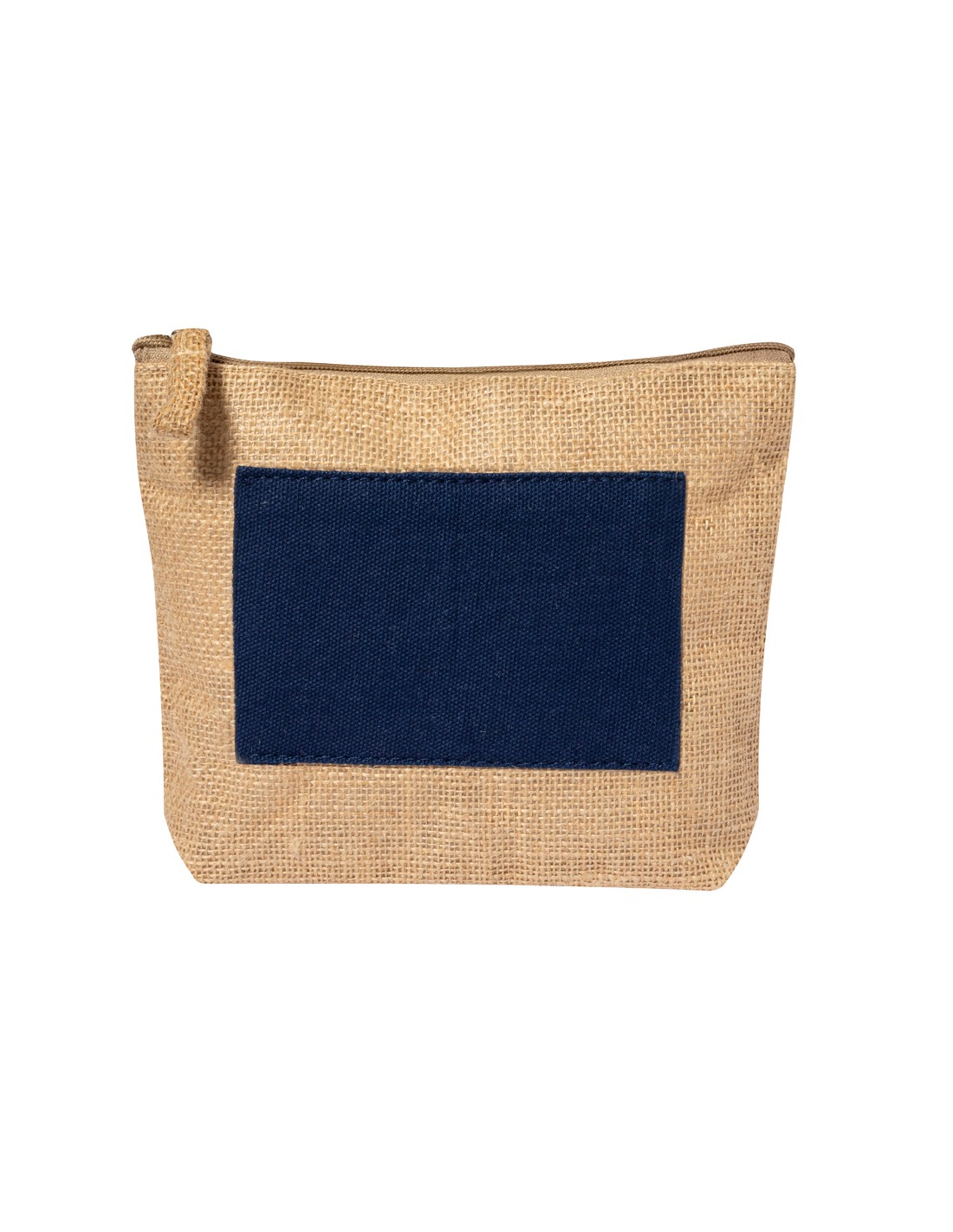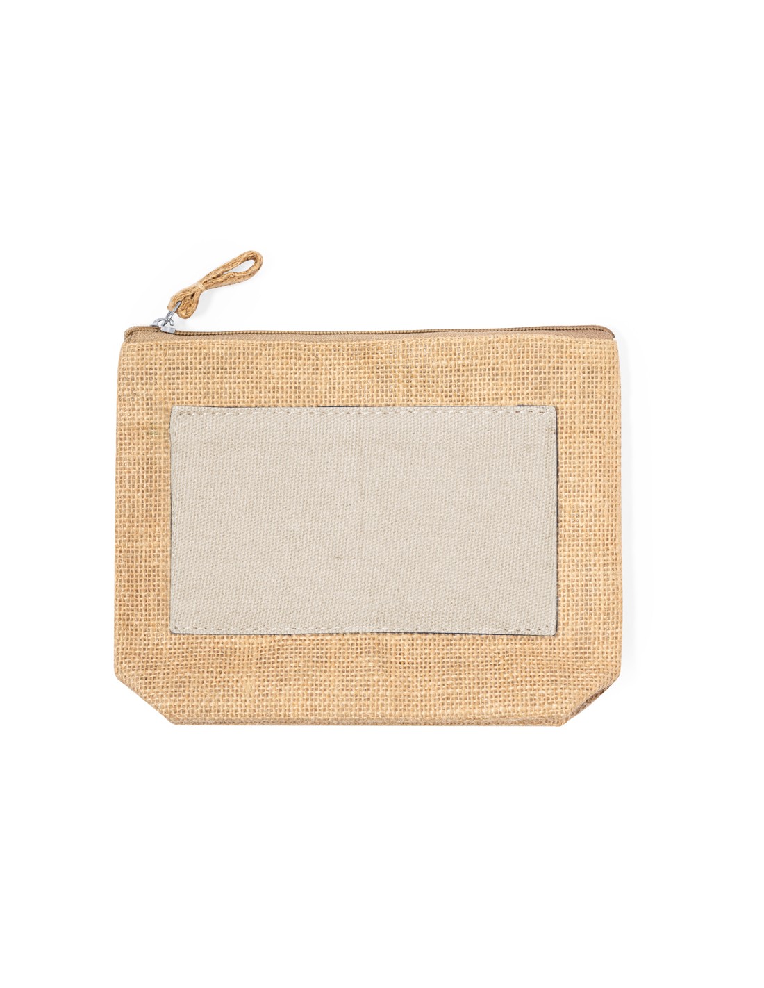 Neceser multiusos en combinación de yute laminado y algodón natural. Con cierre de cremallera y tirador en yute a juego. Parte central de algodón en variados colores.