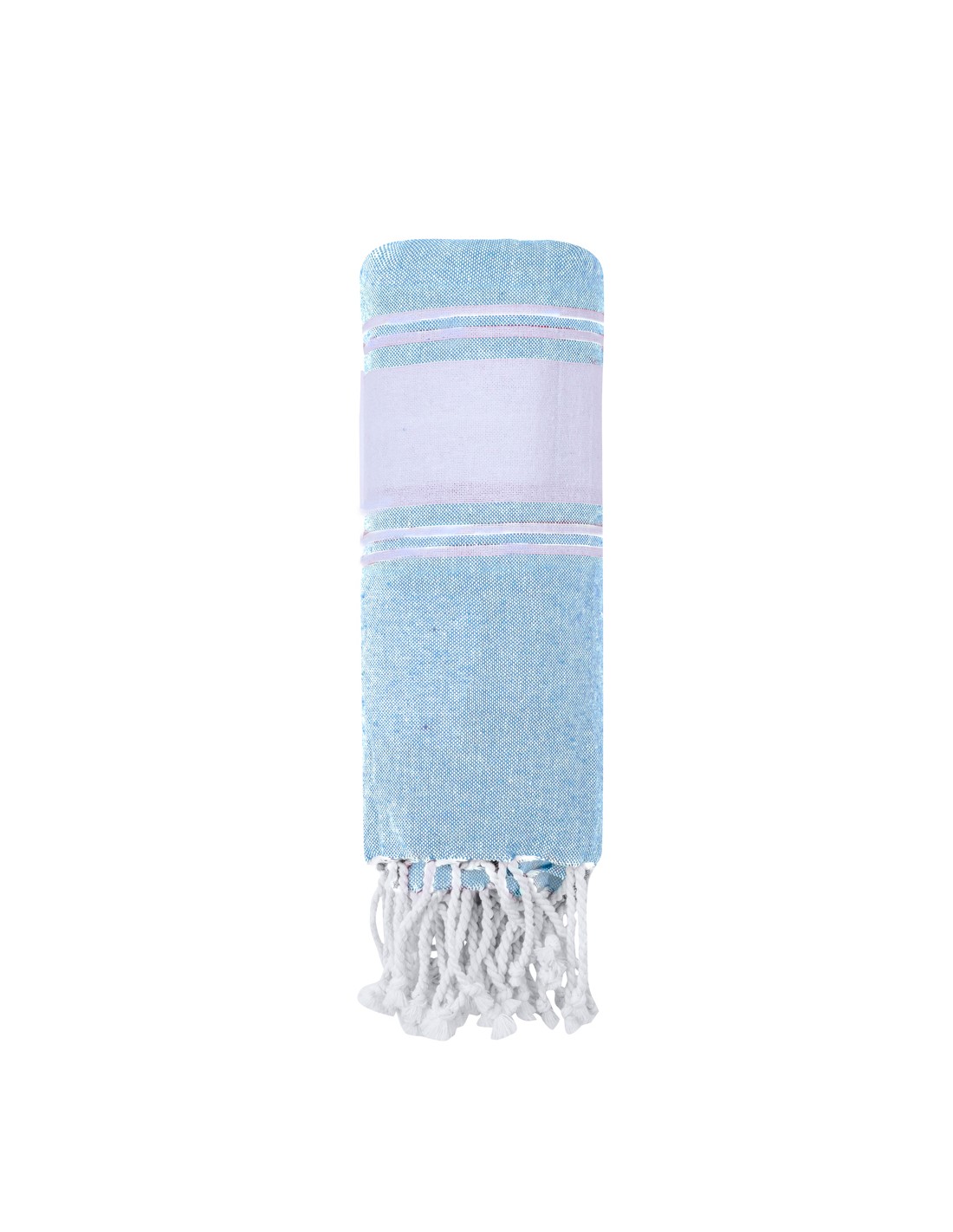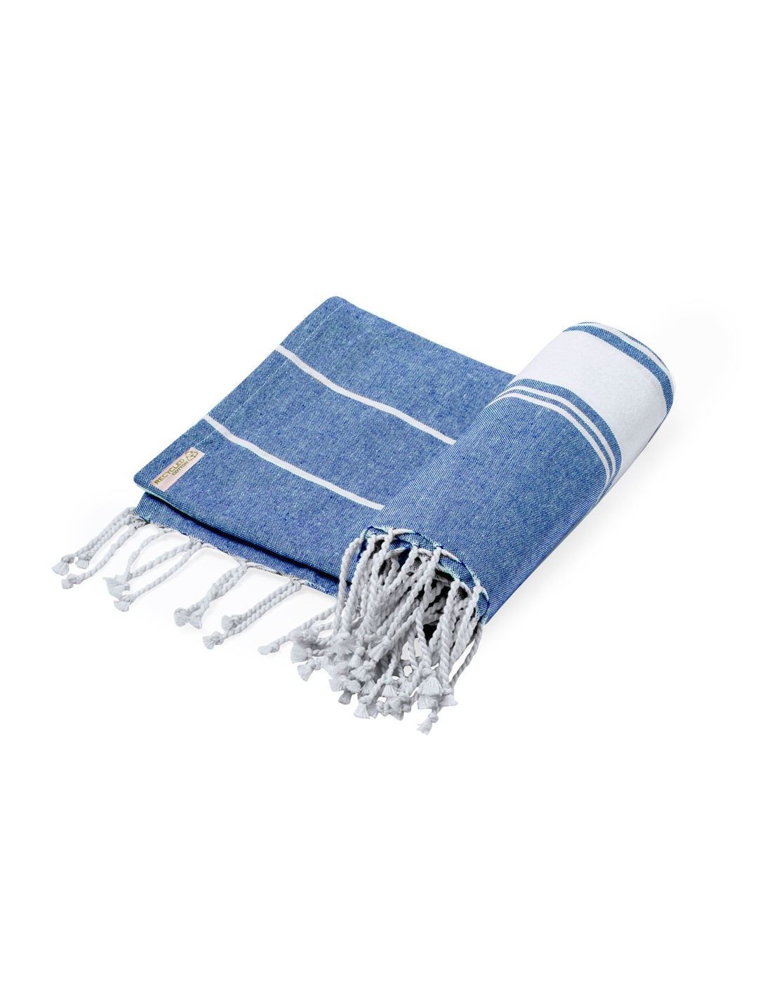 Suave pareo toalla en 100% algodón reciclado de 180g/m2. Disponible en variada gama de colores en tono bicolor. Logotipo en etiqueta lateral. Presentado individualmente en bolsa.