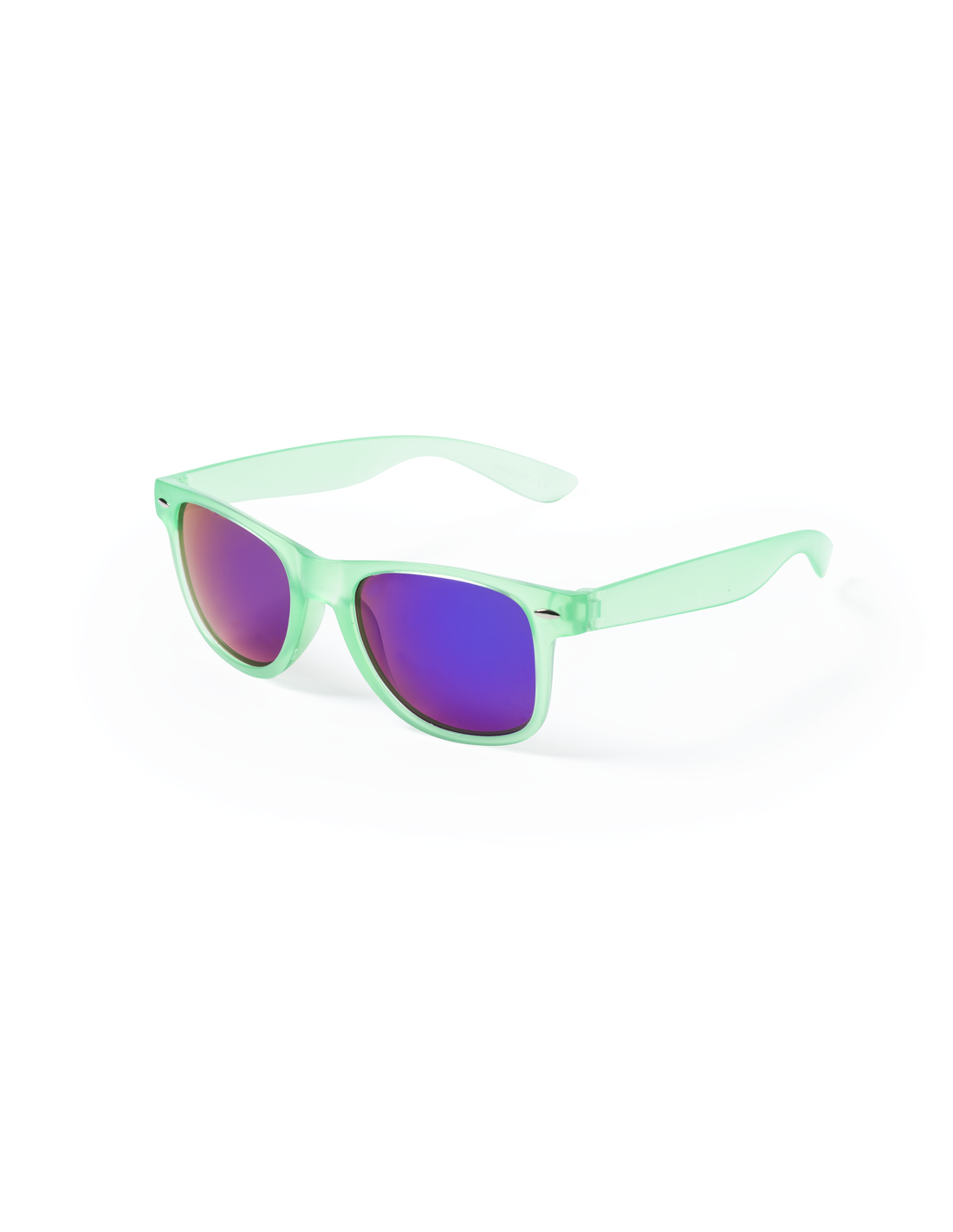 Gafas de sol con protección UV400 de clásico diseño. Con montura de acabado translúcido en divertidos colores y lentes espejados a juego.