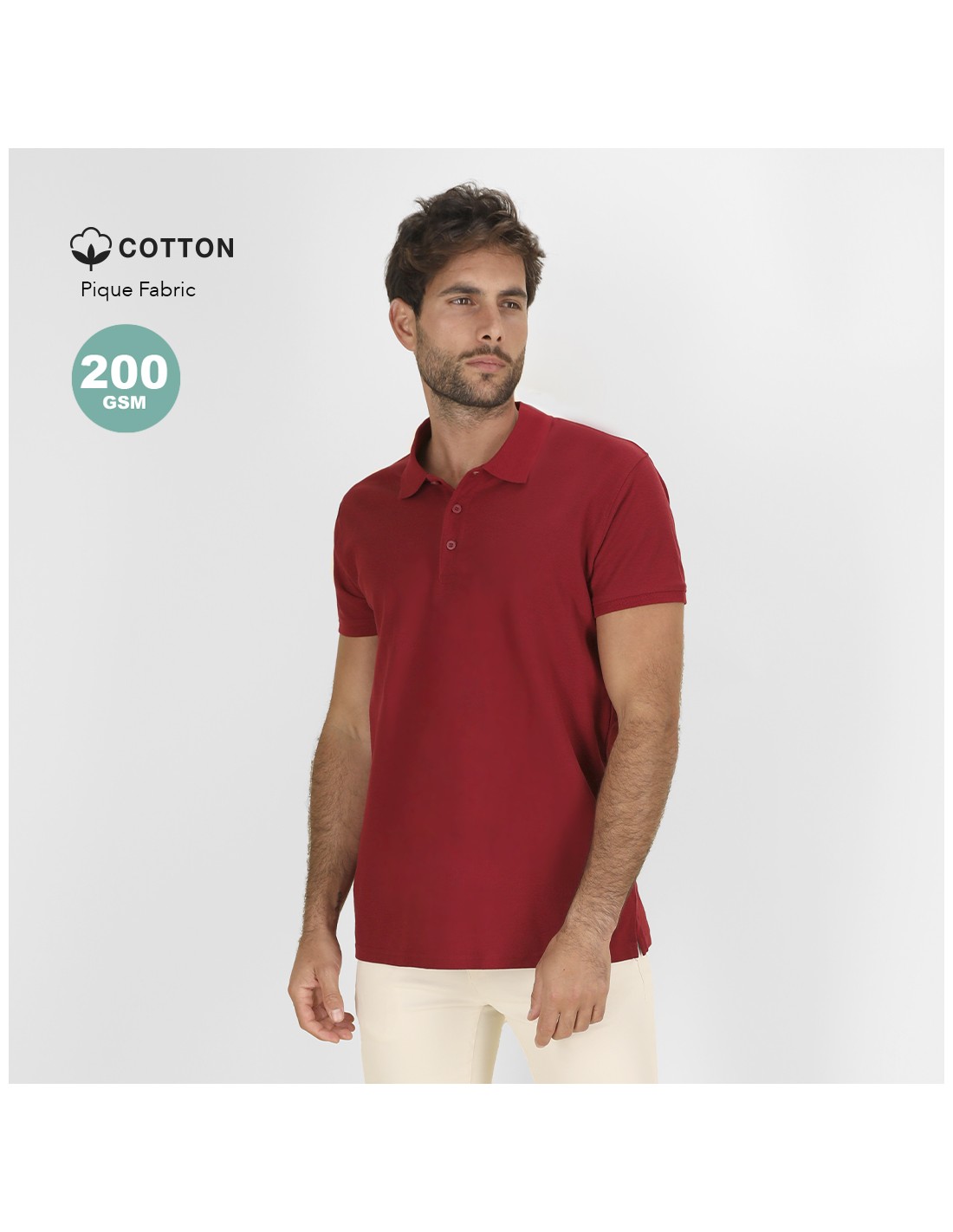 - 100% Algodón Ring Spun, Piqué 200 g/ m2