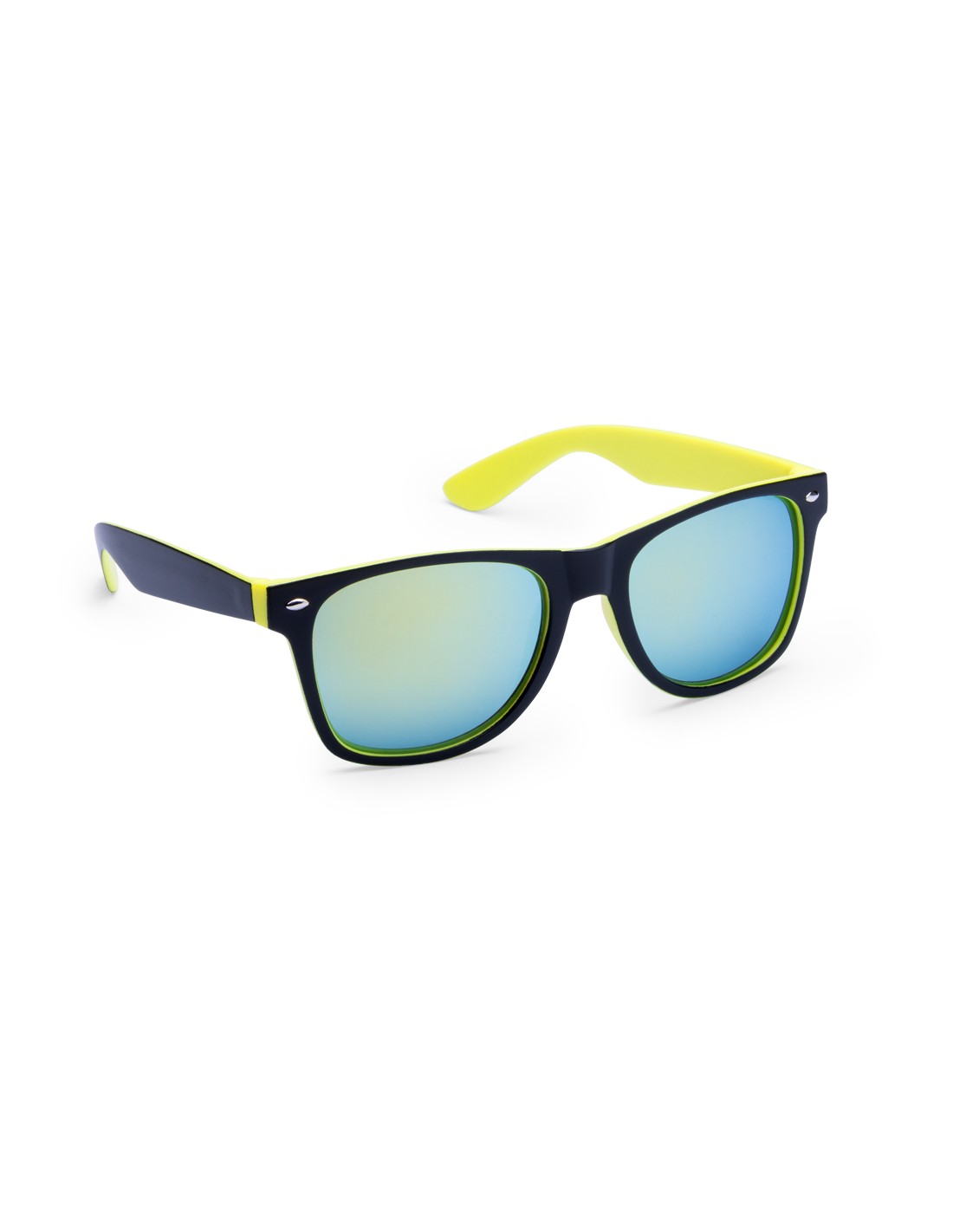 Gafas de sol con protección UV400 de clásico diseño. Con montura de acabado bicolor en divertidos colores y lentes espejados a juego.